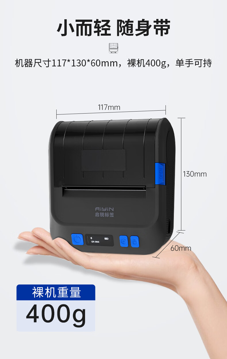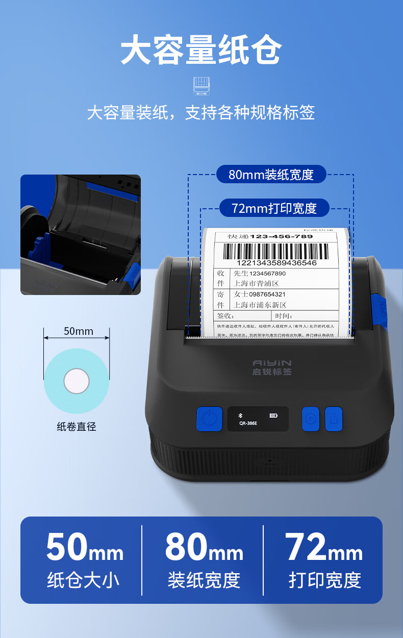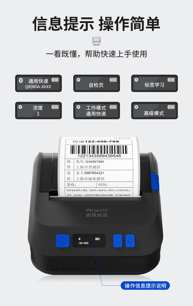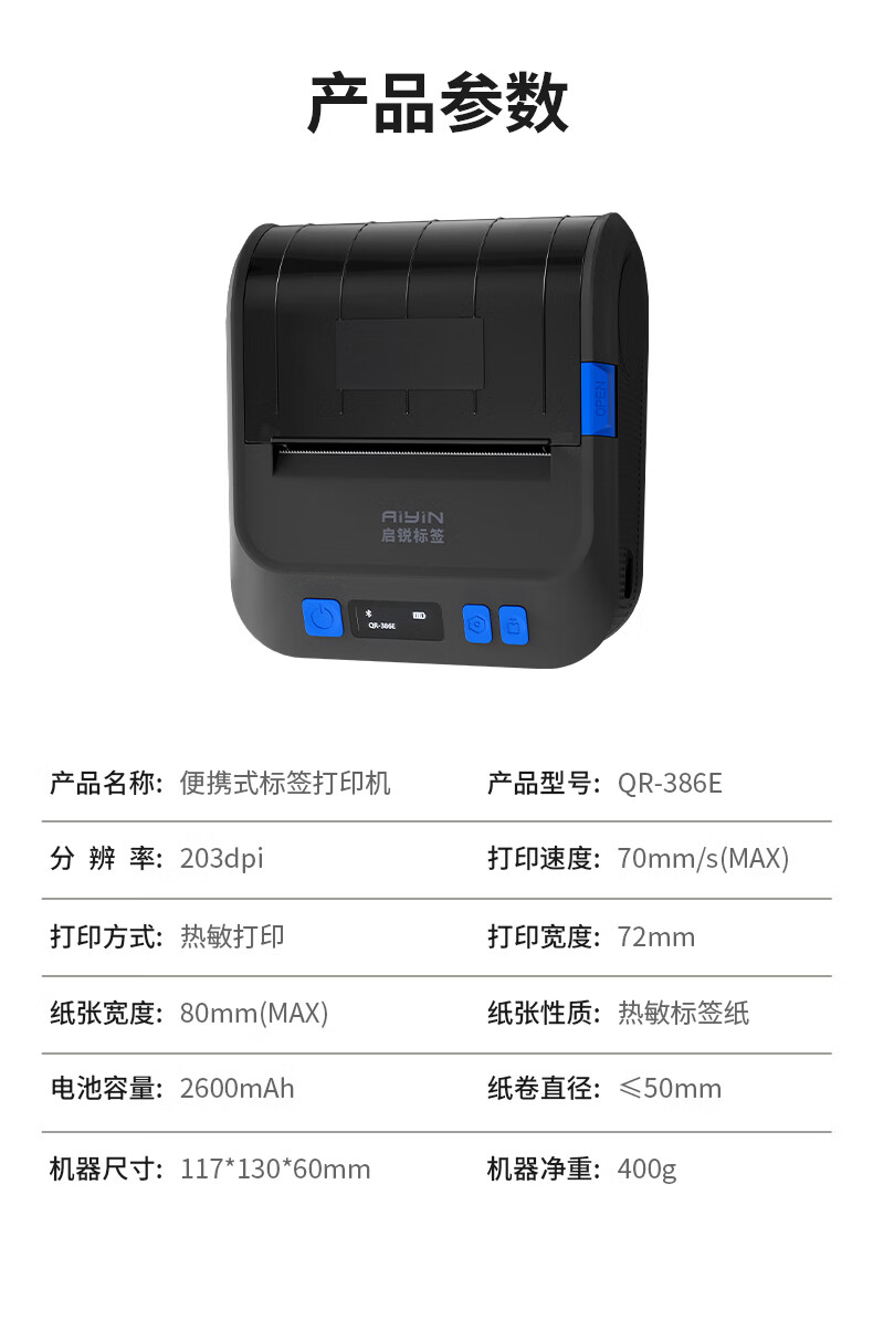启锐(QIRUI)QR-386E蓝牙便携式快递打印机 打单机快递面单 驿站入库取件码热敏标签打印机通用