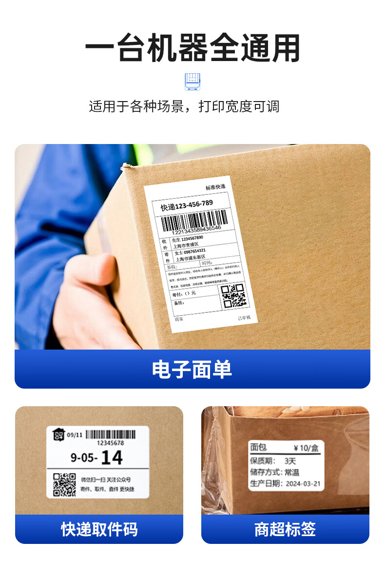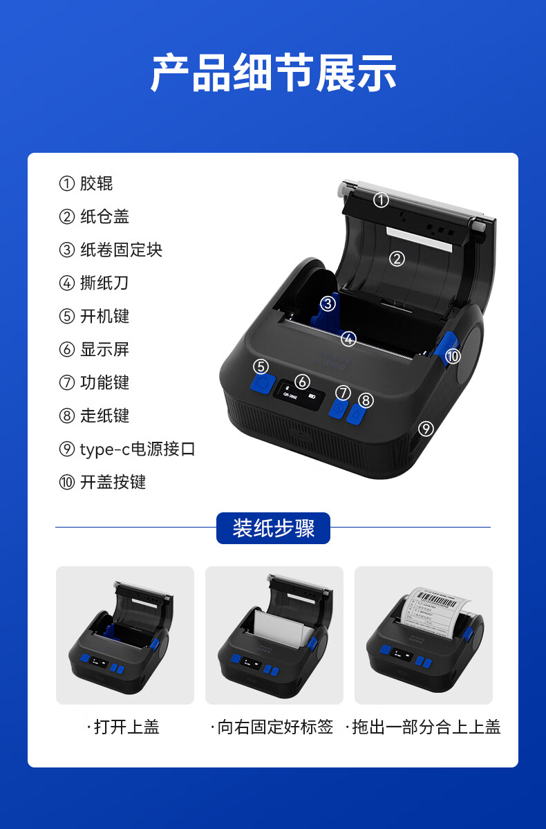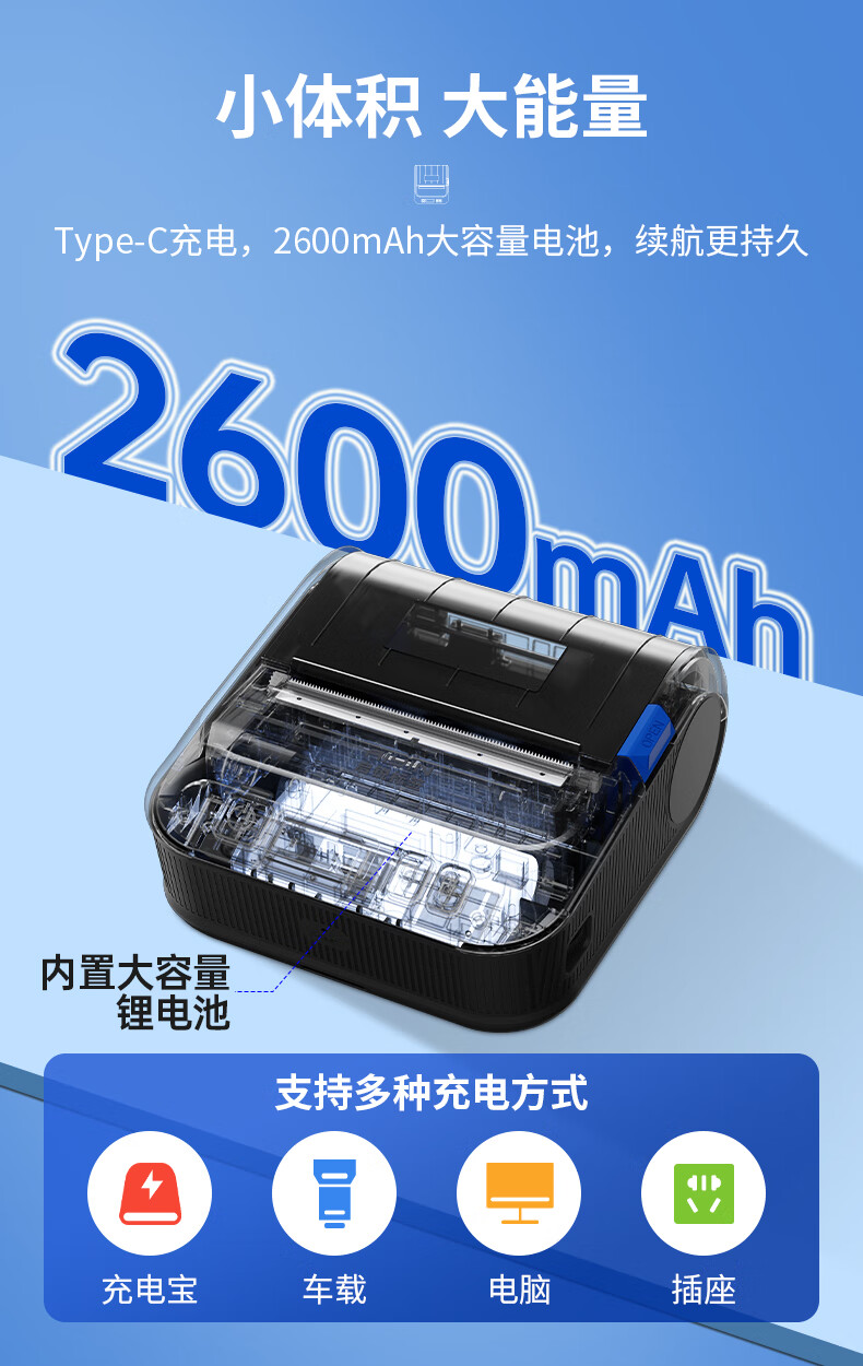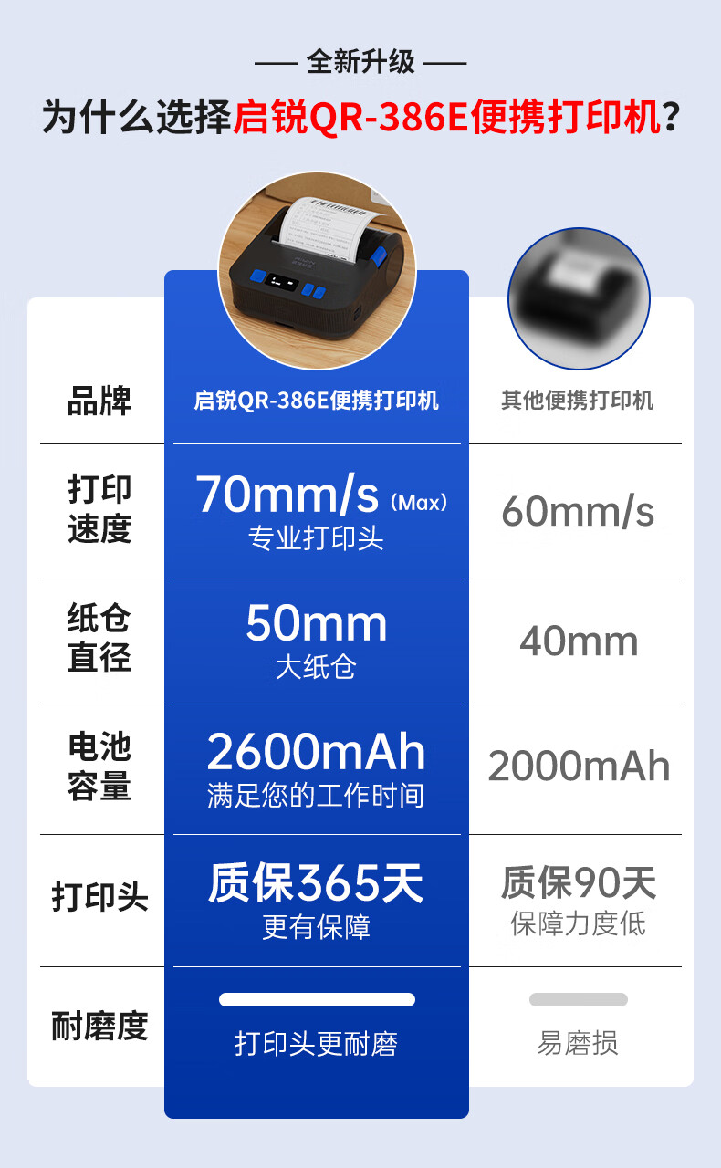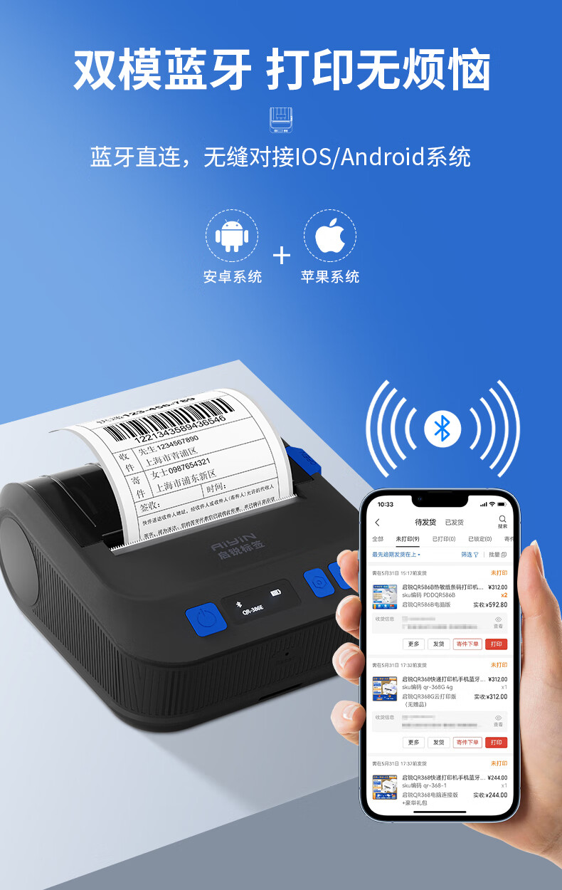 启锐(QIRUI)QR-386E蓝牙便携式快递打印机 打单机快递面单 驿站入库取件码热敏标签打印机通用