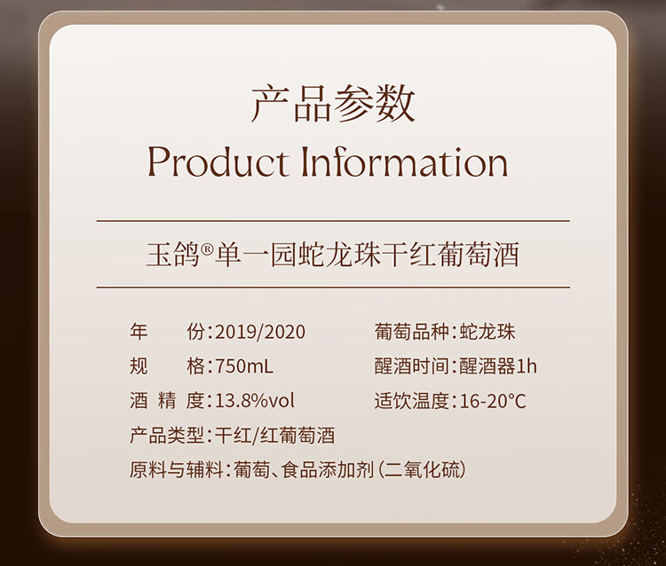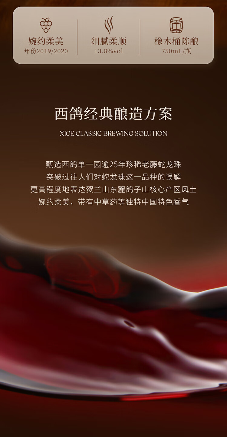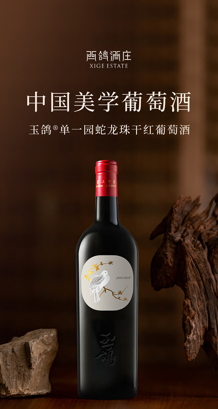 西鸽酒庄玉鸽单一园蛇龙珠干红葡萄酒750ml 宁夏贺兰山国产红酒 中秋送礼