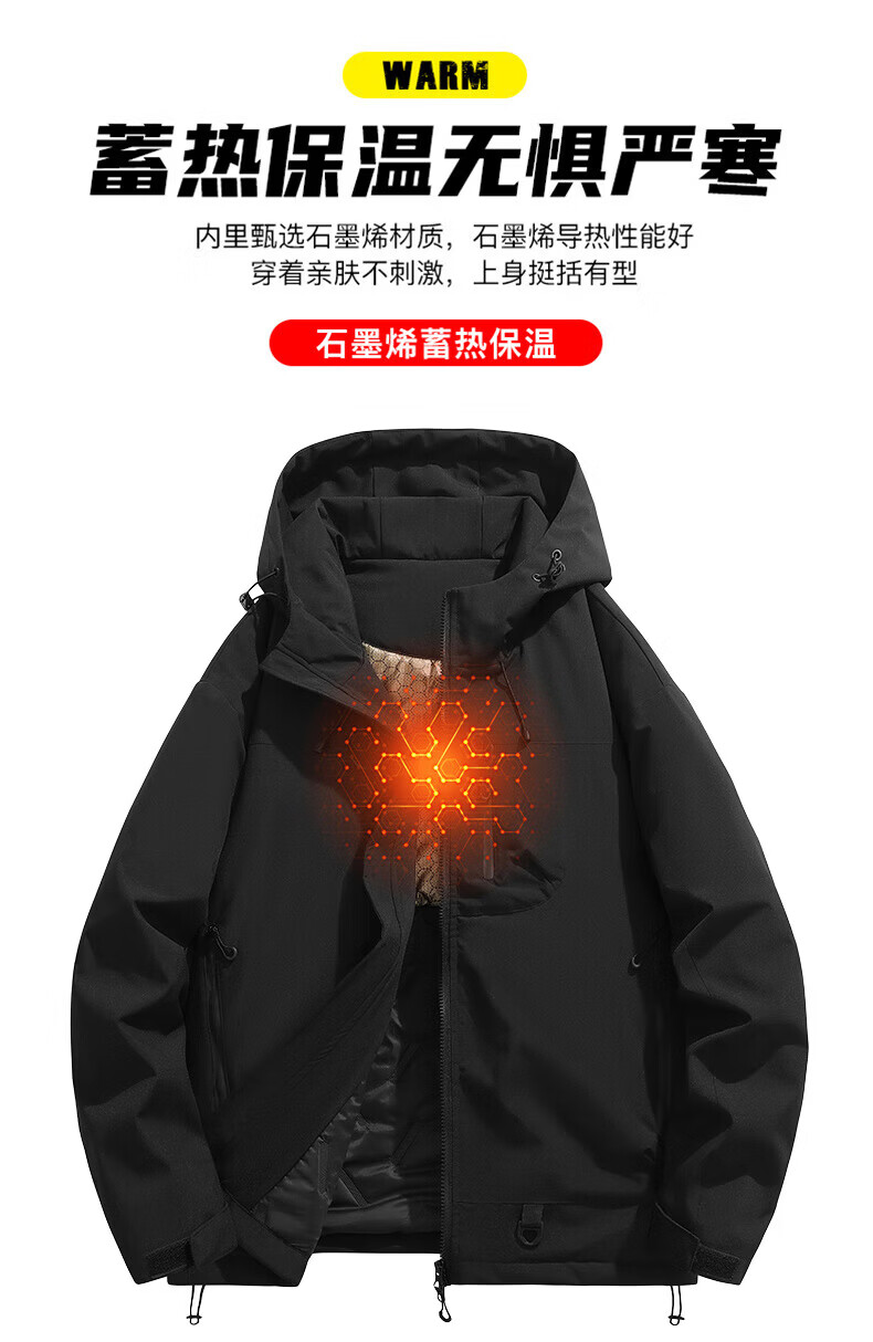 JEEP SPIRIT吉普冲锋棉衣男连帽冬季男士石墨烯羽绒棉服男保暖棉袄登山服 荧光绿 XL (建议145-160斤)