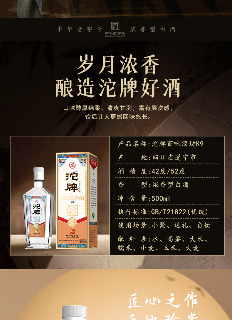 沱牌百味酒坊K9 舍得酒 浓香型白酒 500mL 整箱装 中华老字号 42度 500mL 6瓶 沱牌k9 整箱