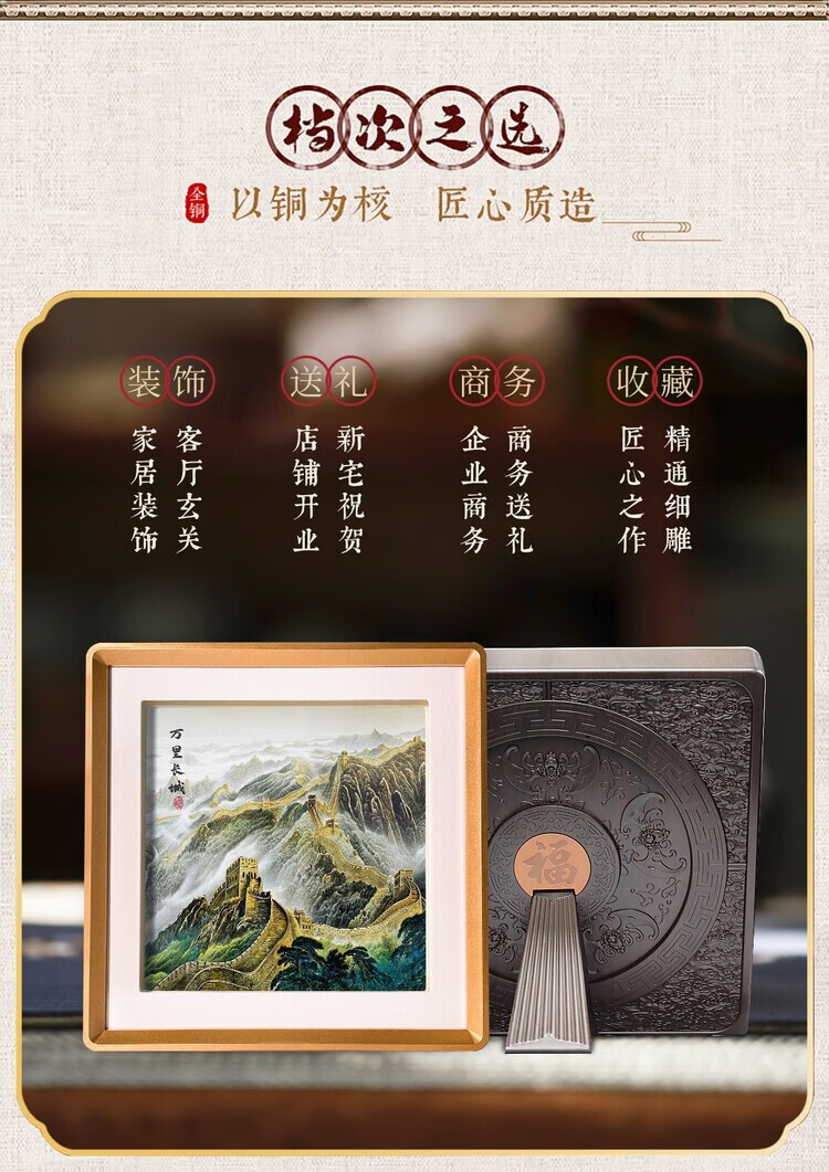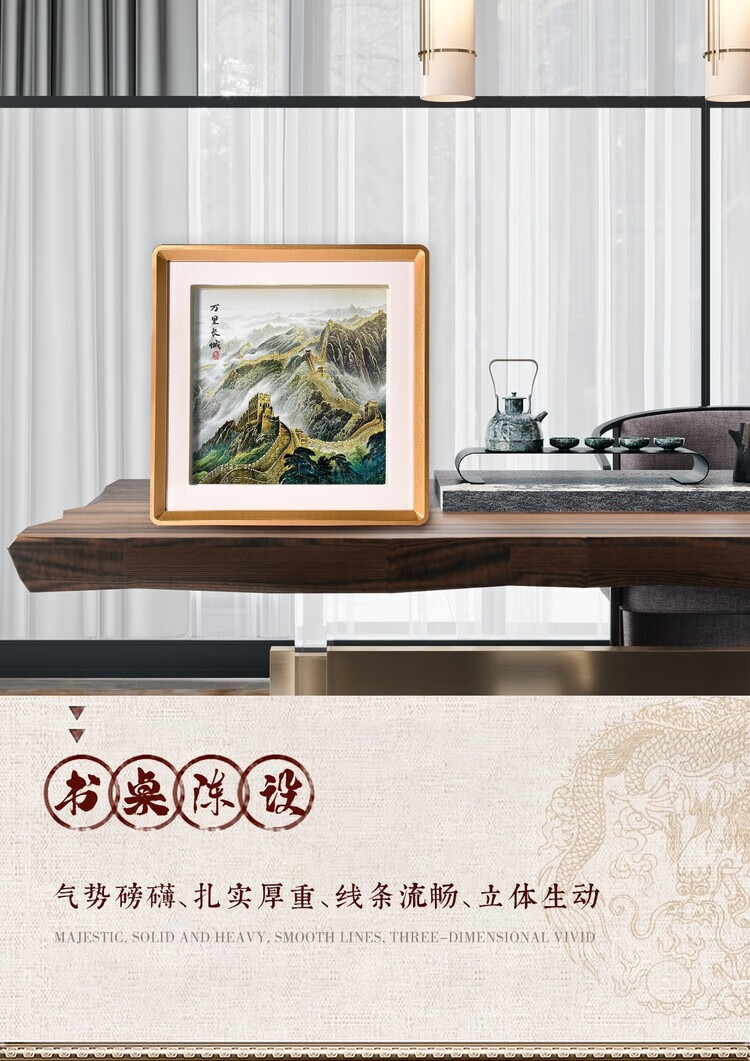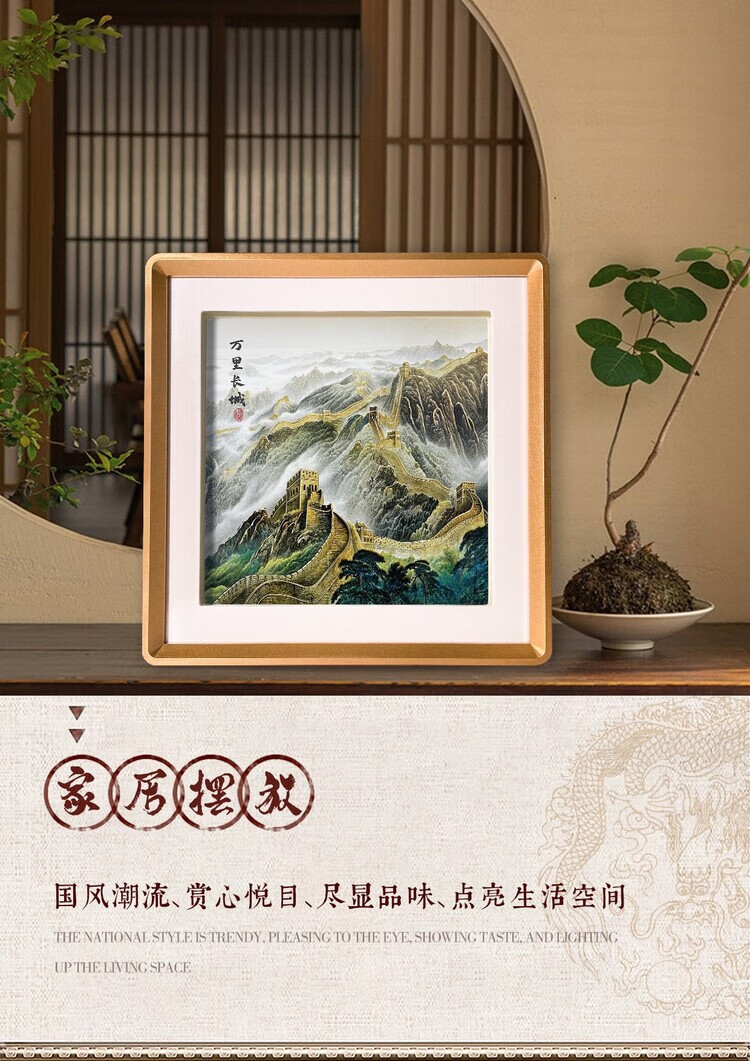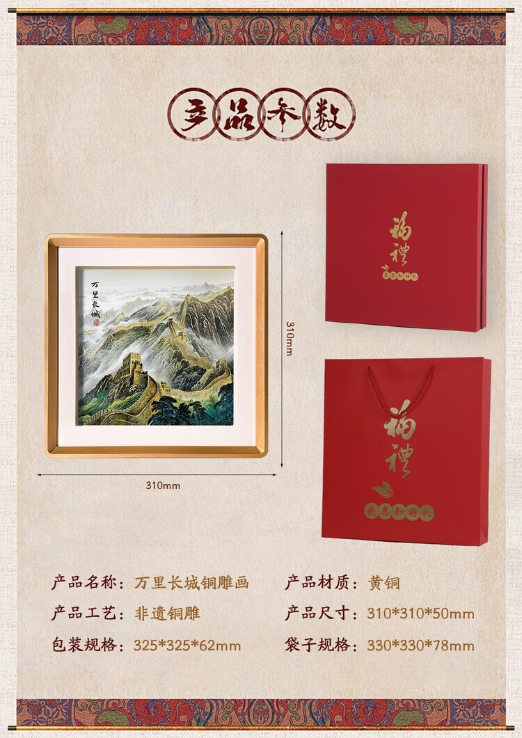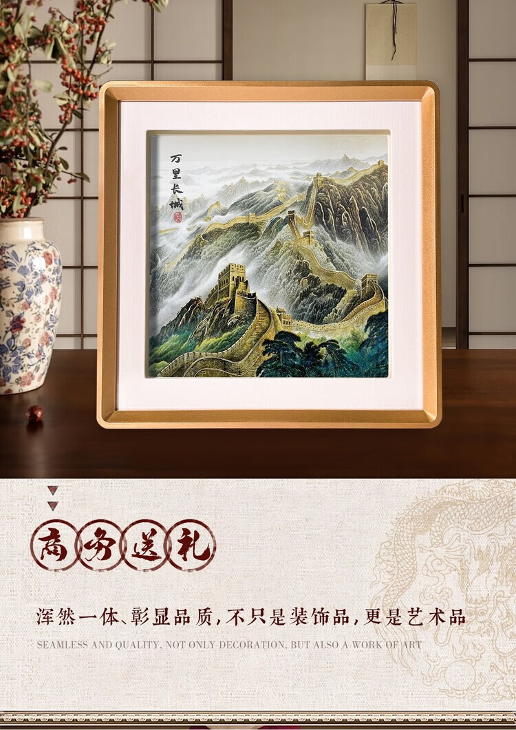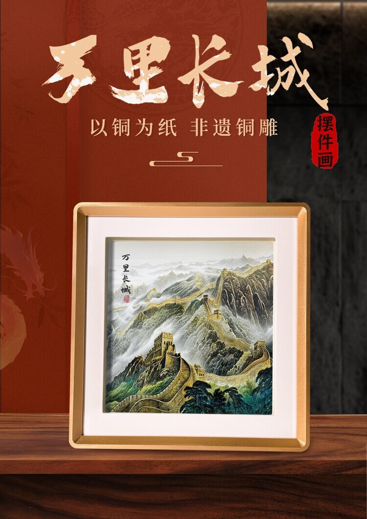 卓誉造物万里长城中国特色礼物金雕画摆件高档国风礼品送老外出国商务礼品 万里长城铜雕画31*31cm 配礼盒手提袋