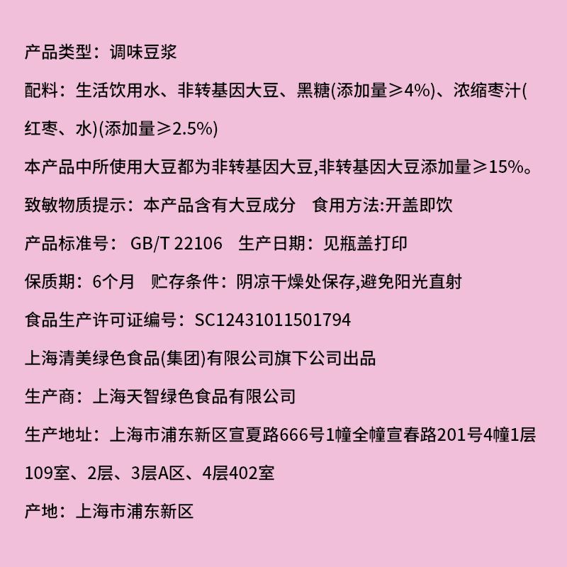 食怀新日期老上海清美醇豆浆健康早餐即饮香浓蜂蜜黑糖红枣奶 清美豆浆280mL【4瓶】 醇豆浆