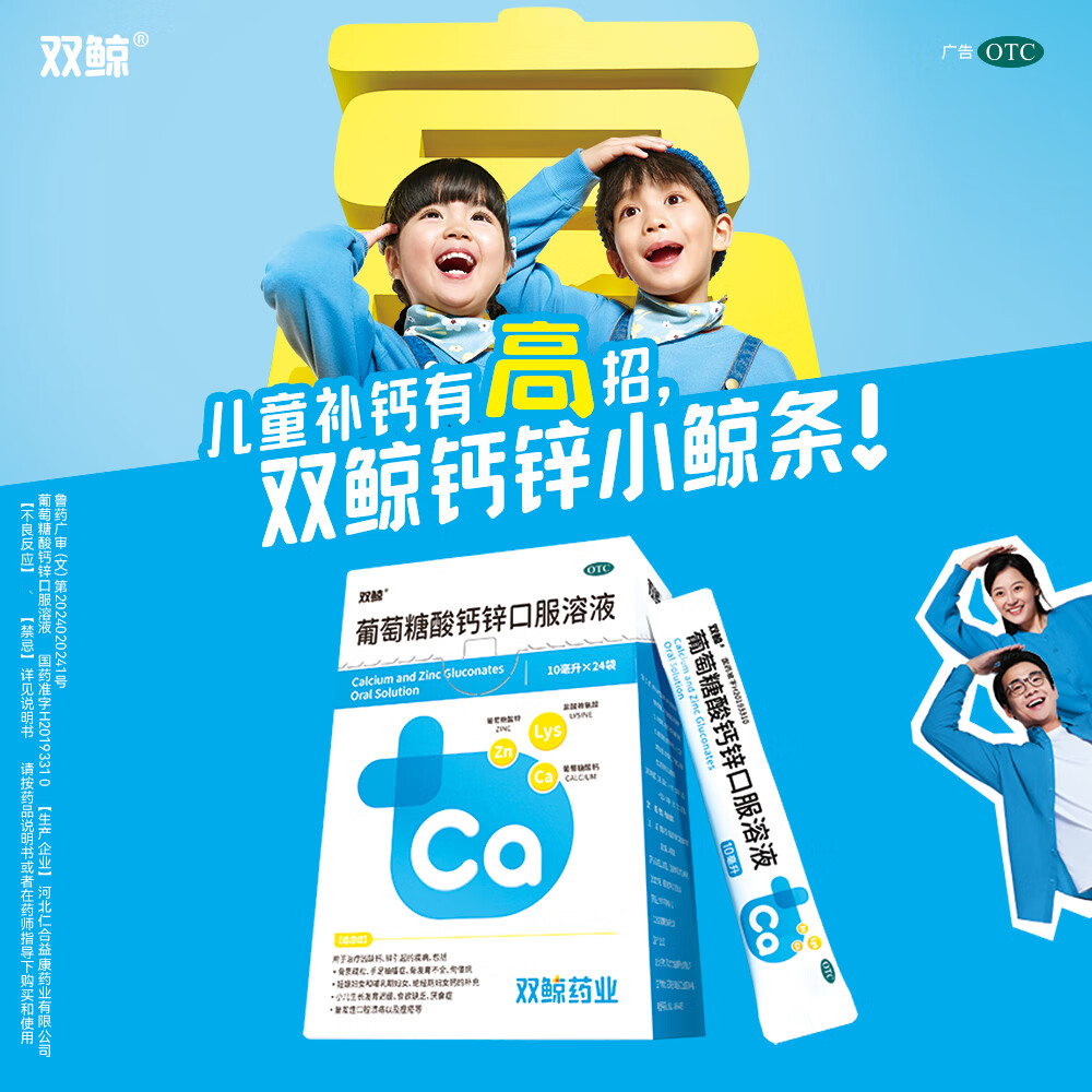 [双鲸]葡萄糖酸钙锌口服溶液 10ml*24袋 3盒装 补充钙锌赖氨酸增加食欲促进生长发育厂区直发效期新10ml/袋 双月体验-改善食欲