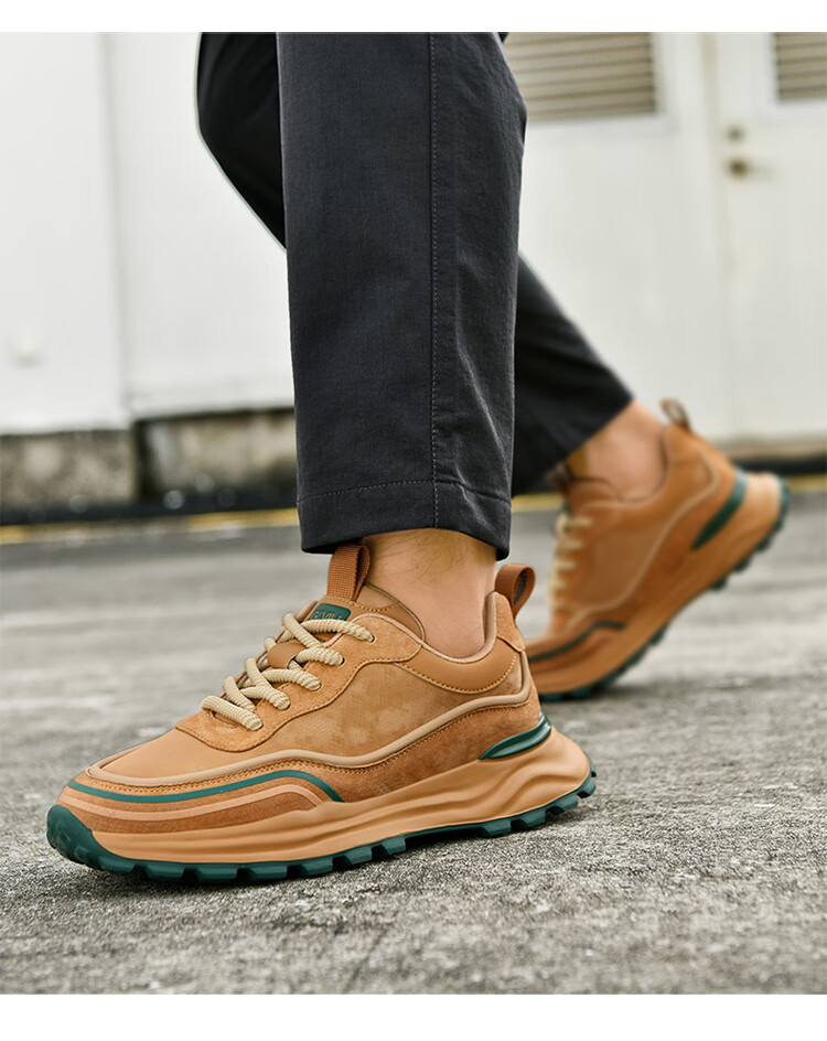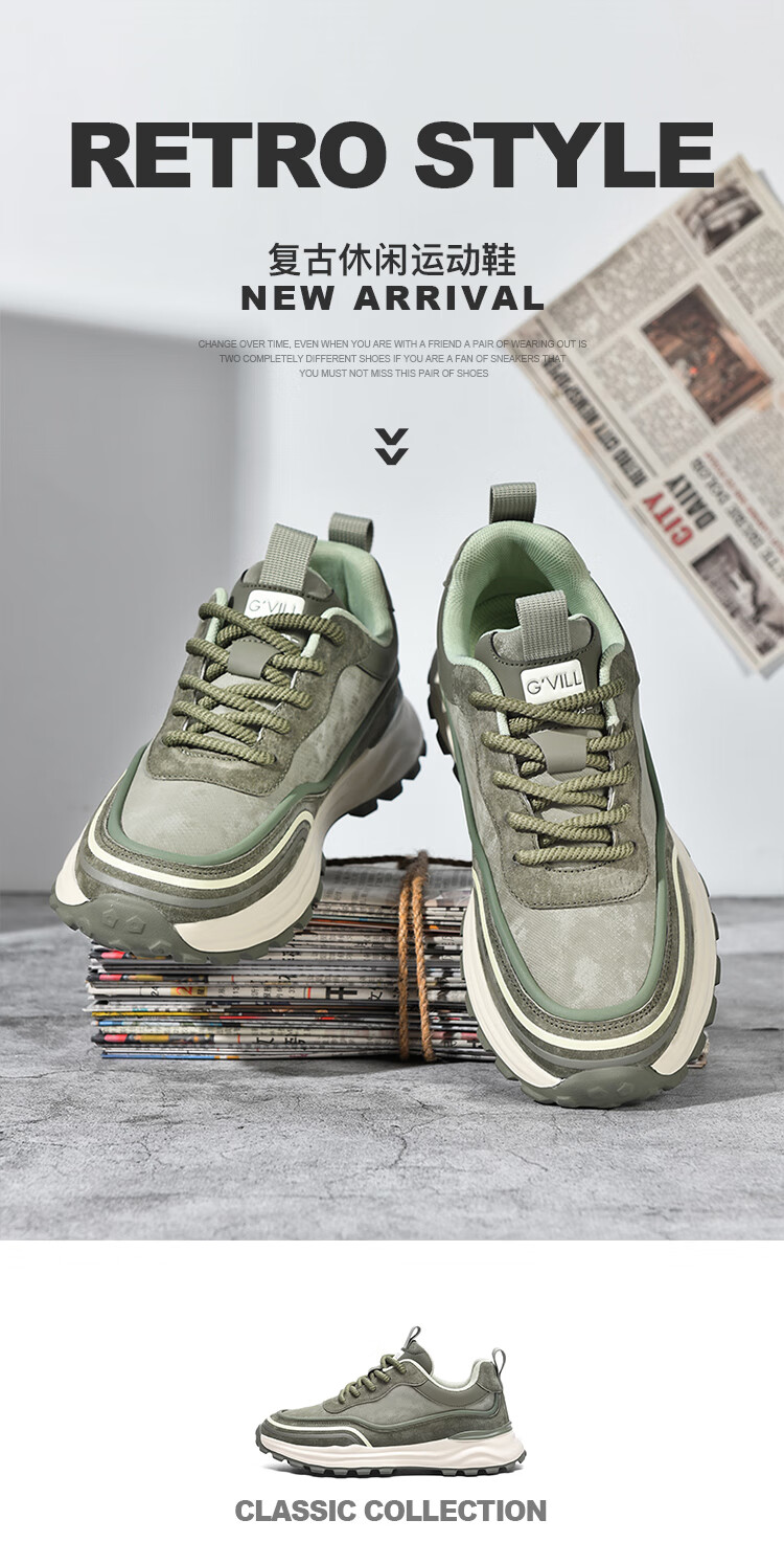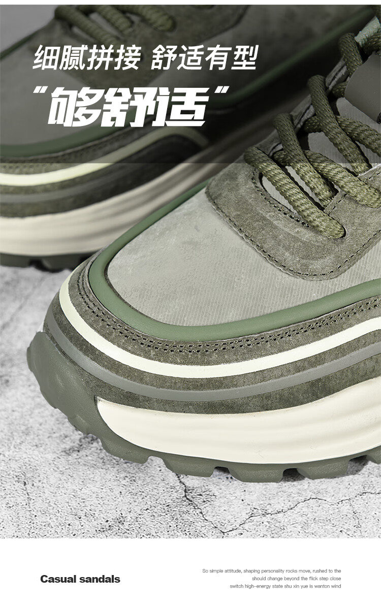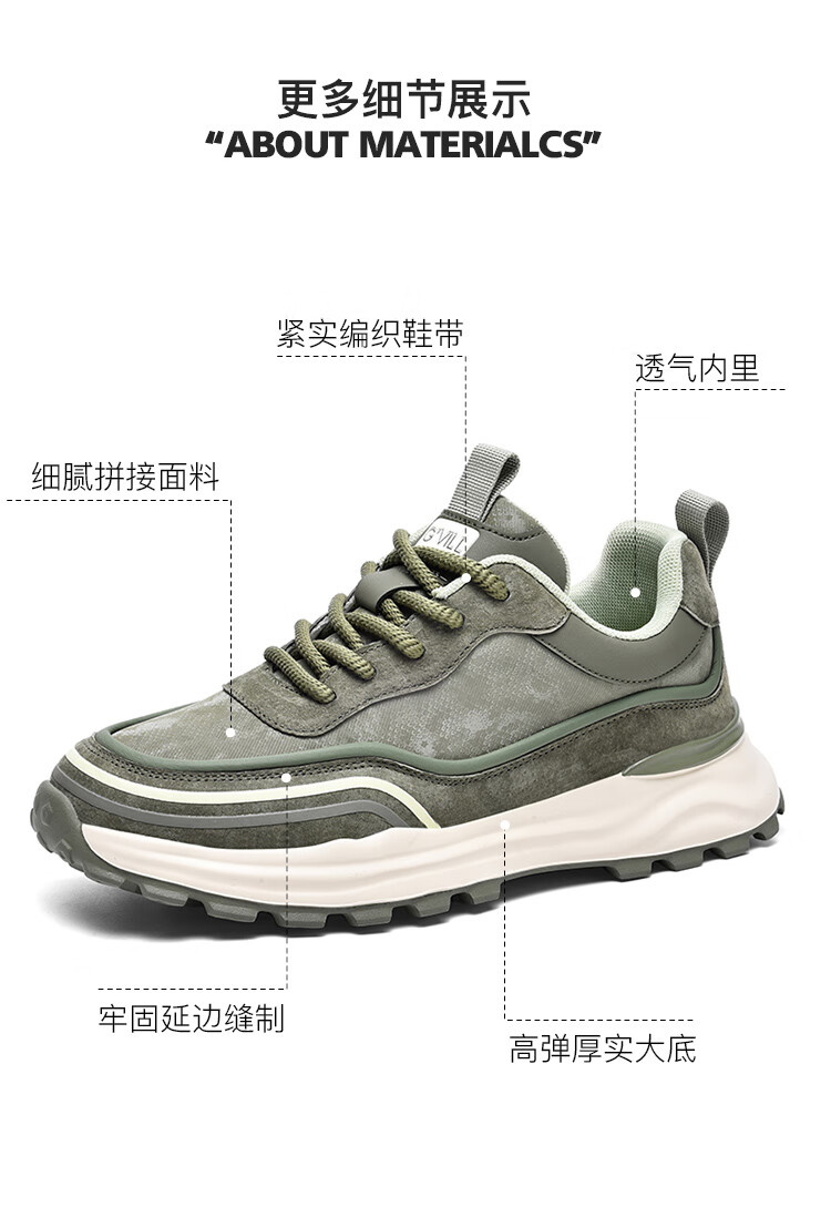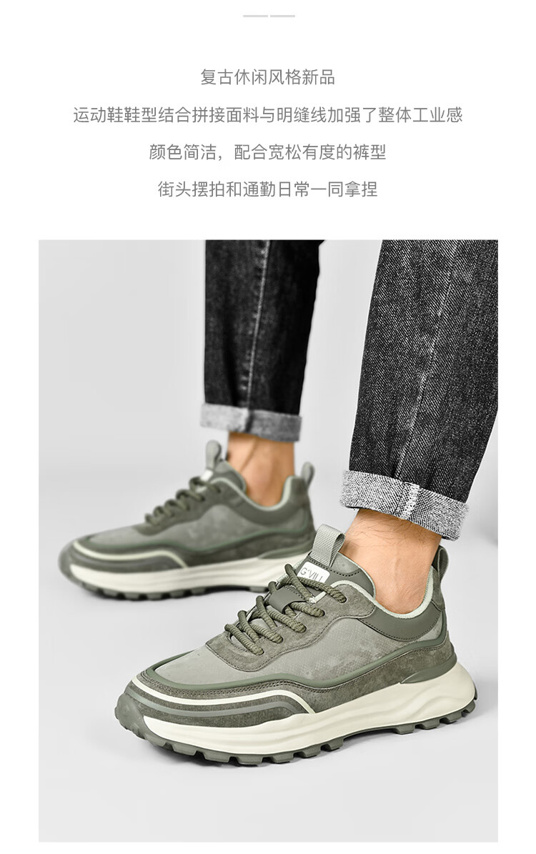 贵之步秋冬季复古男鞋软底新款休闲鞋增高缓震厚底防滑舒适运动鞋男款 豆绿 G005 43 (运动鞋码)