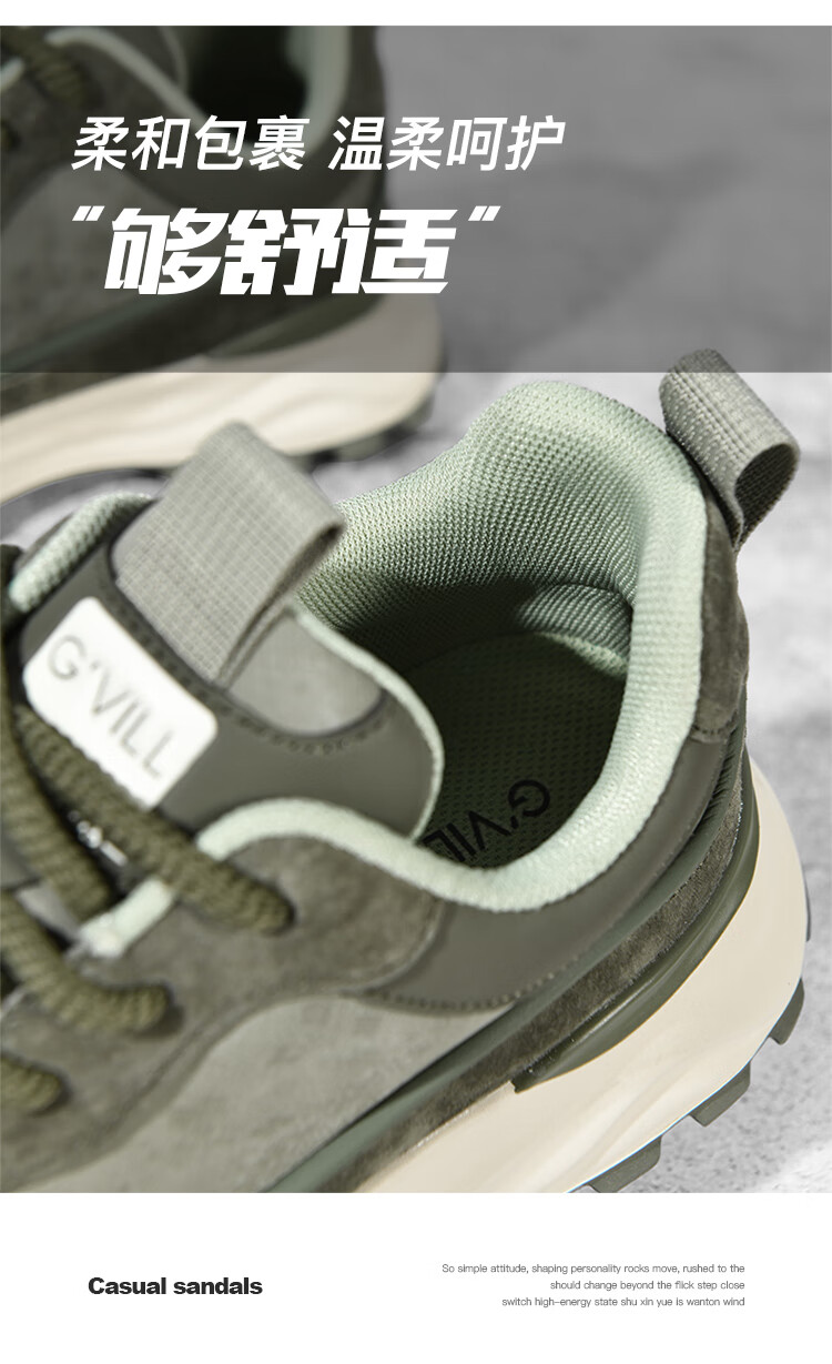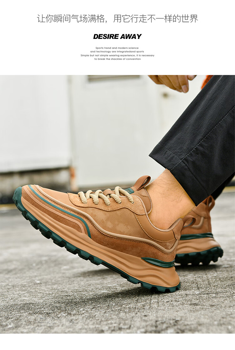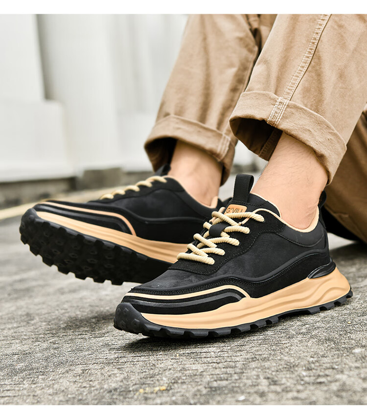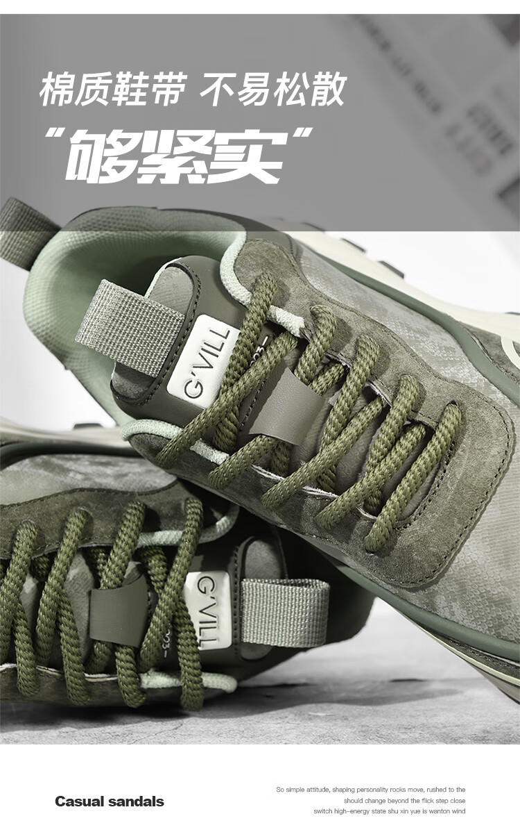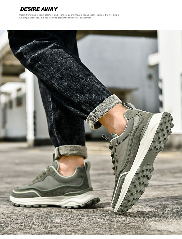 贵之步秋冬季复古男鞋软底新款休闲鞋增高缓震厚底防滑舒适运动鞋男款 豆绿 G005 43 (运动鞋码)