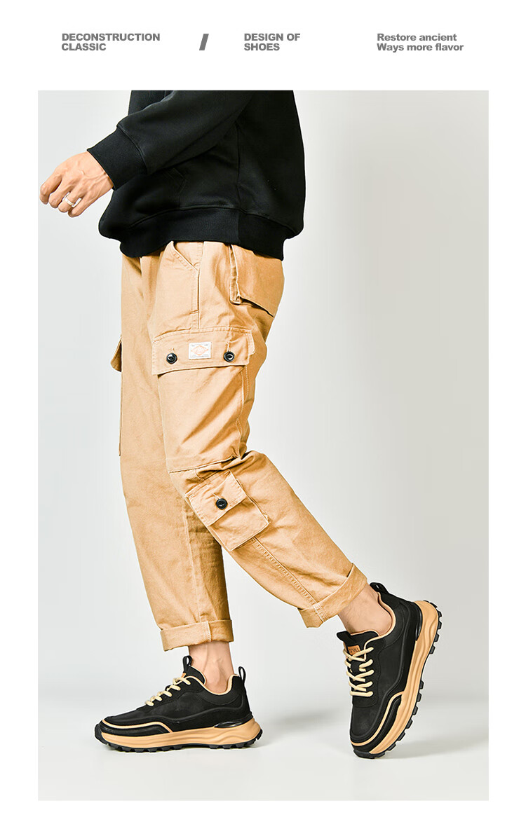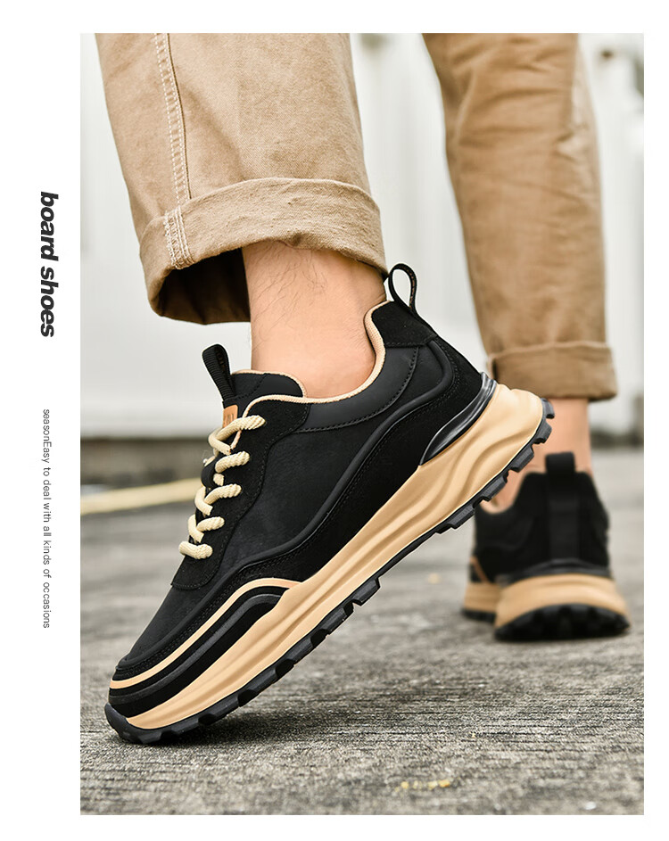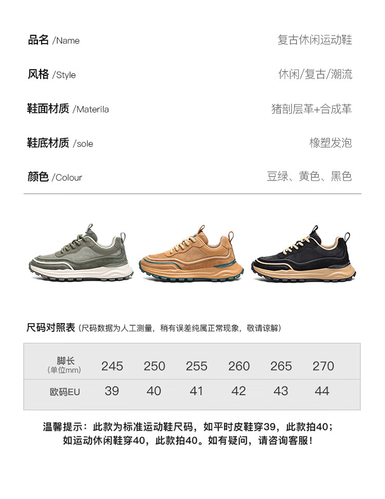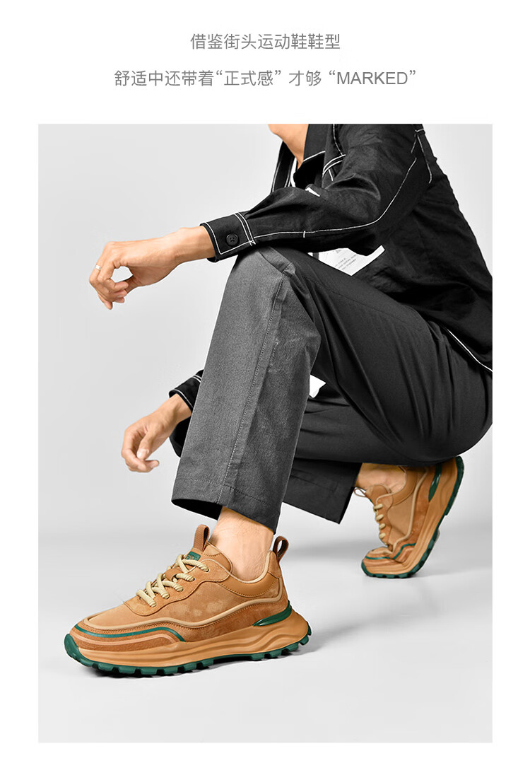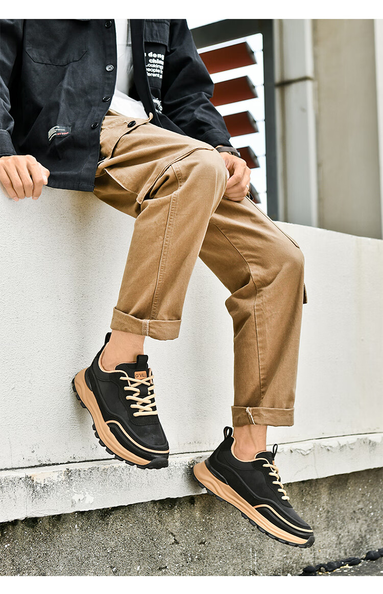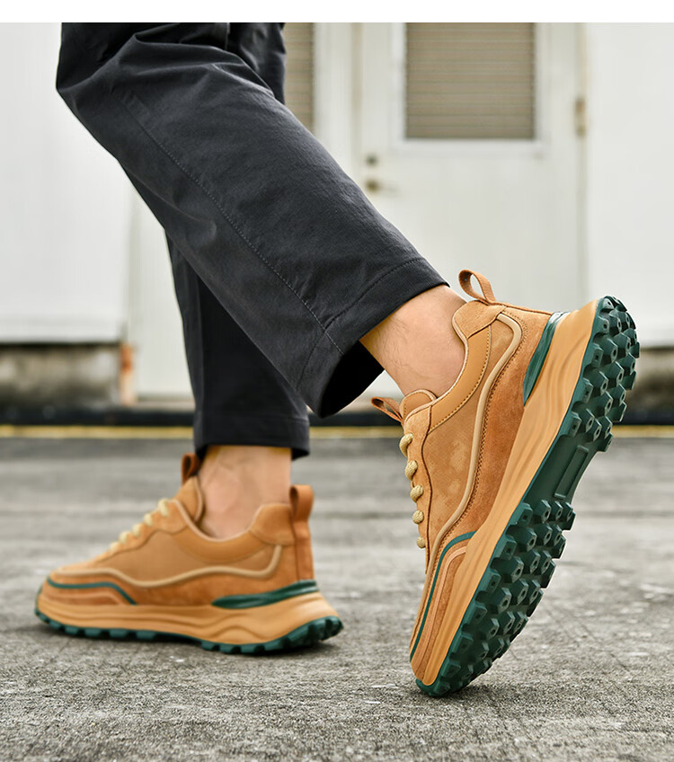 贵之步秋冬季复古男鞋软底新款休闲鞋增高缓震厚底防滑舒适运动鞋男款 豆绿 G005 43 (运动鞋码)