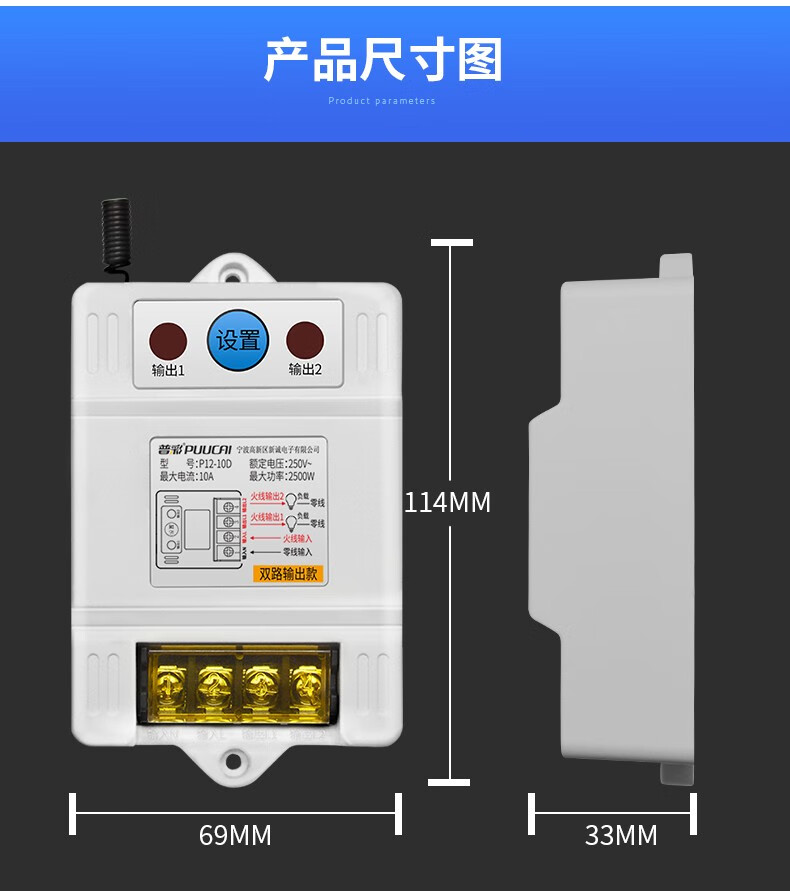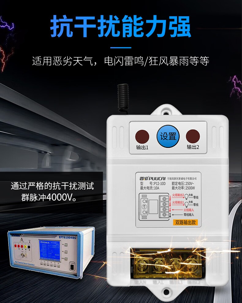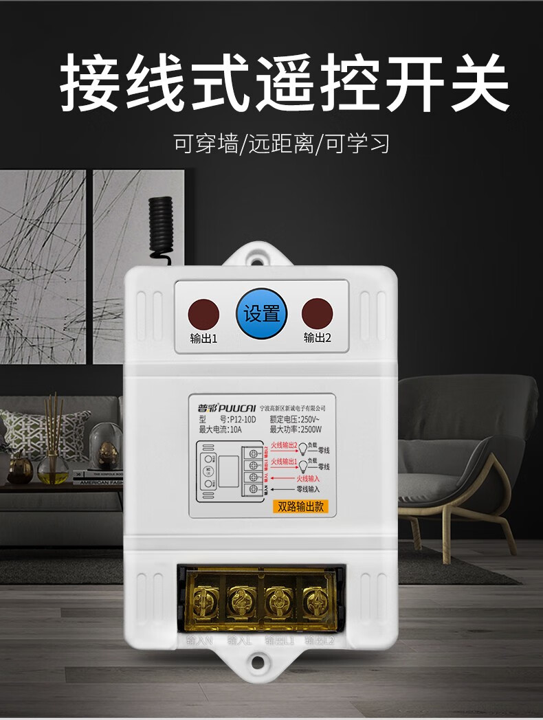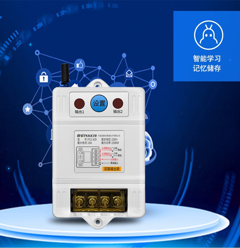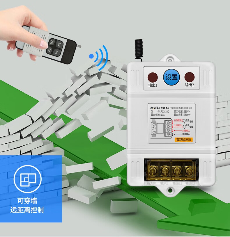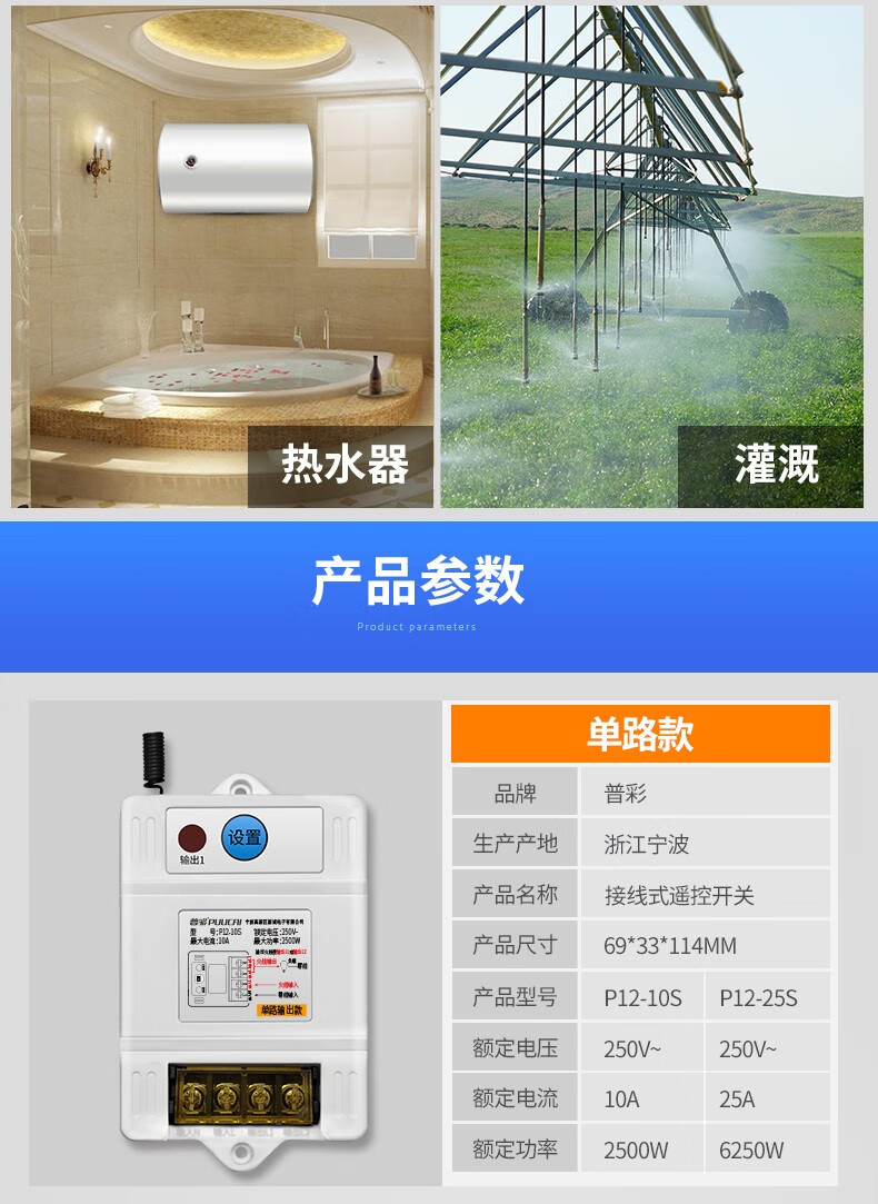 品禾远程水泵电机无线遥控开关智能超大功率单双路接线式抽水机灯具超远距离可穿墙电源开关 单路款-25S 6250W 500米(带遥控器)