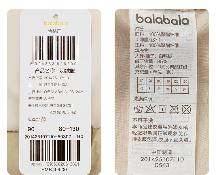 巴拉巴拉(BALABALA)【商场同款】童装男童羽绒服假两件外套恐龙2025新款冬装 浅卡其50307-白鸭绒 80 充绒量45g