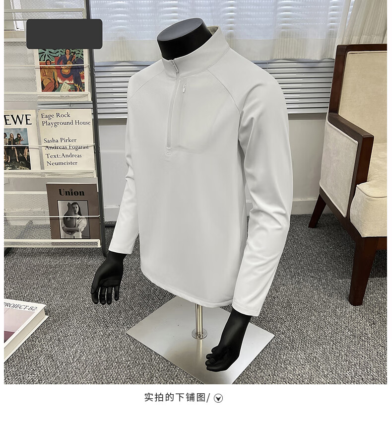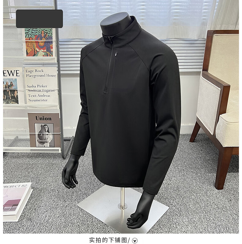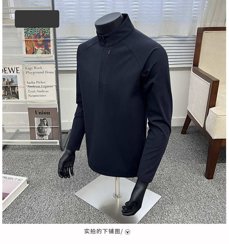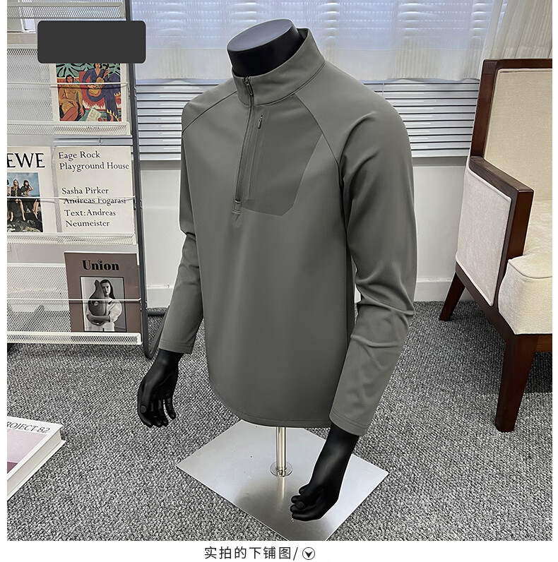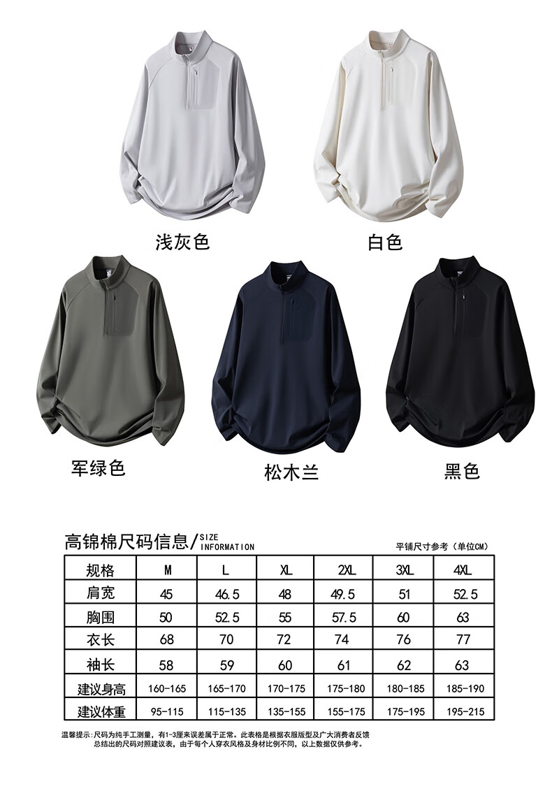 拾福(SHIFU)长袖T恤男装半拉链上衣日常休闲打底衫舒适内搭时尚宽松衣服秋装 军绿色 4XL (195-215斤)