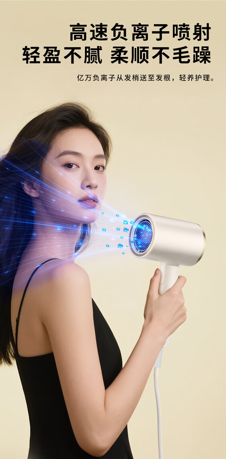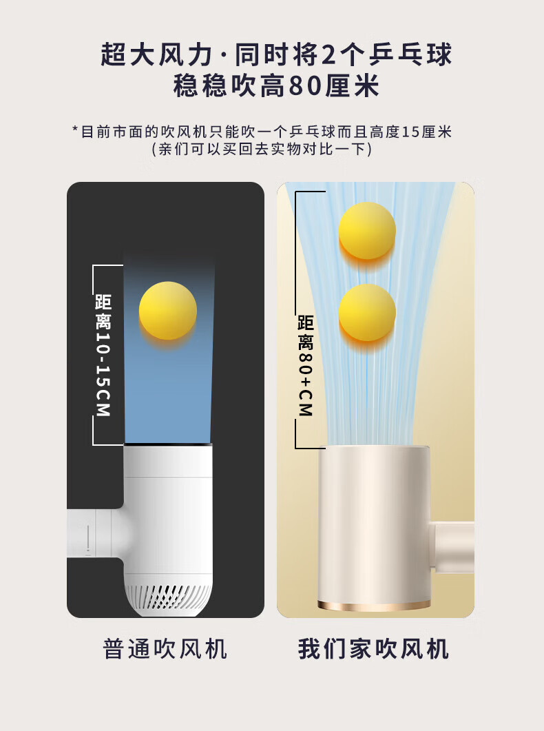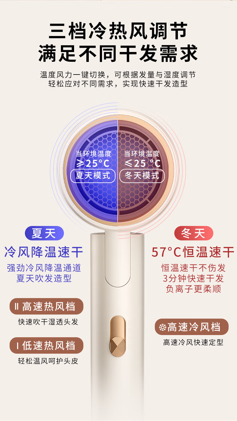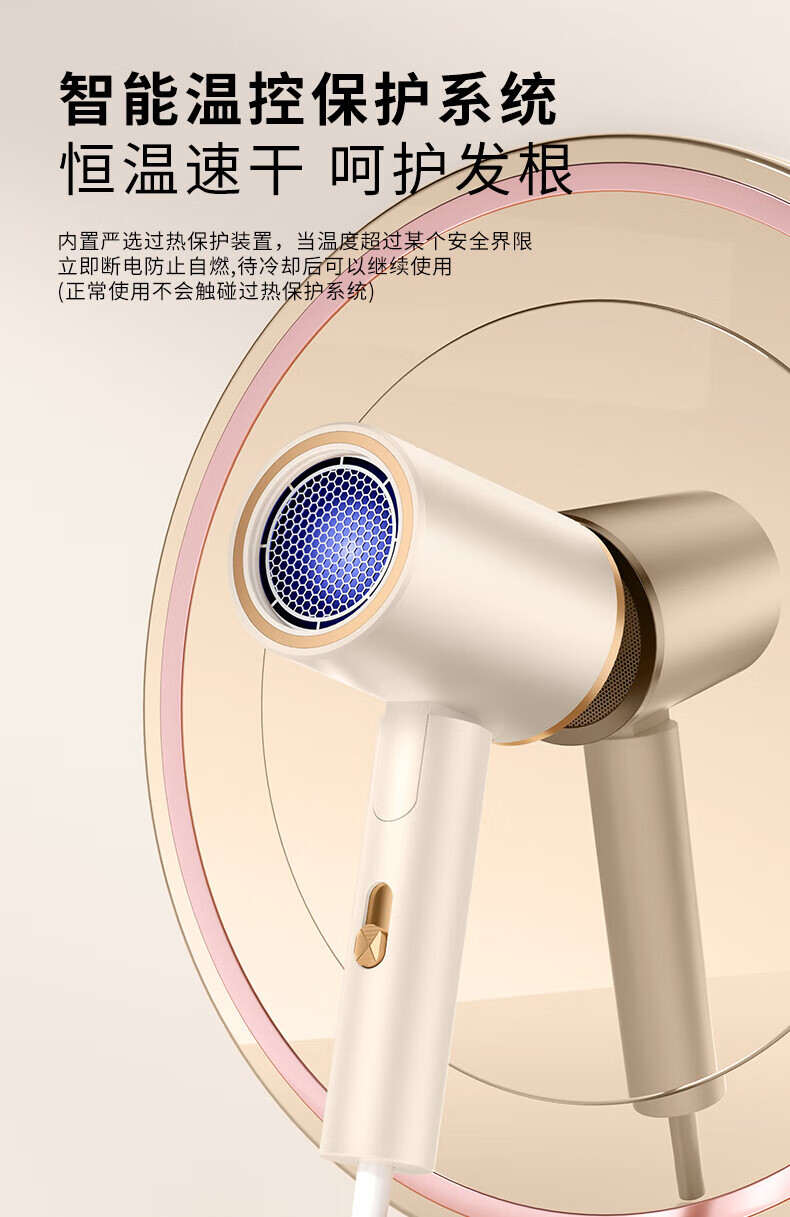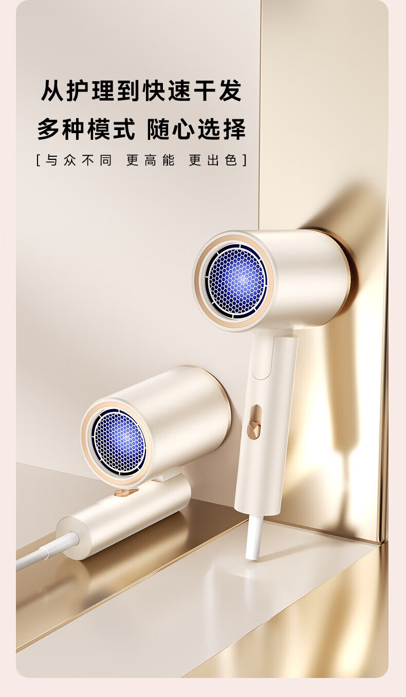 【严选】吹风机蓝光负离子家用发廊宿舍吹风筒电吹风 T1-珍珠白【带蓝光】 (1个装) 中规-220V【国内使用】