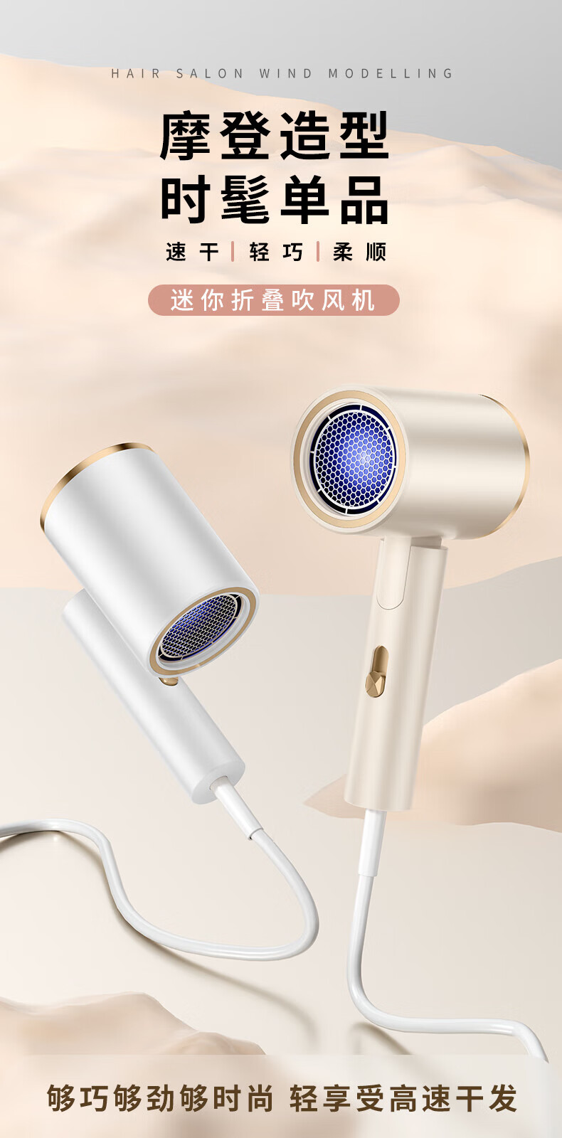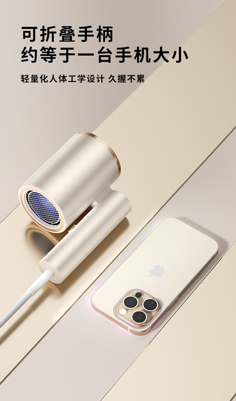 智能生态链系列同款可折叠宿舍吹风机家用负离子大功率恒温吹风机 渐变粉 【2000W】强力速干+蓝光负离子