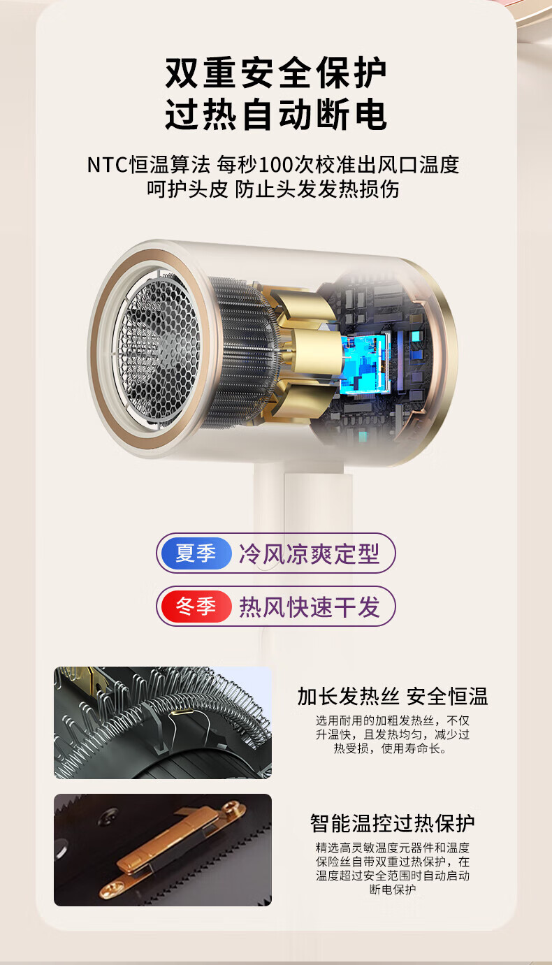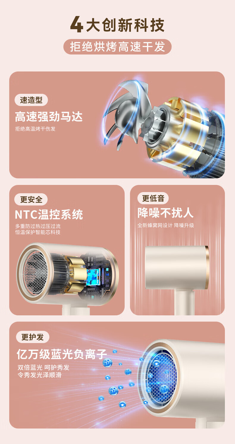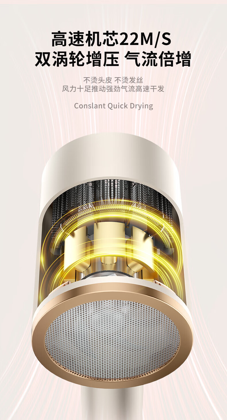 小米宝宝系列吹风机静音发廊负离子家用大功率不伤发宿舍 渐变粉【1800W】大风力+双层隔热