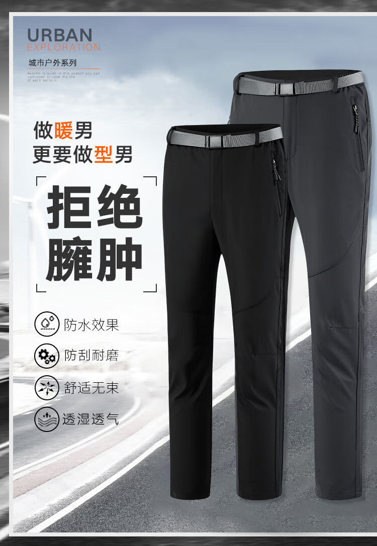 JACK WOKEKNSN狼爪云加绒冲锋裤秋冬弹力宽松大码男士登山裤徒步运动软壳休闲裤 黑色加绒 W18006 XXL 145-165斤