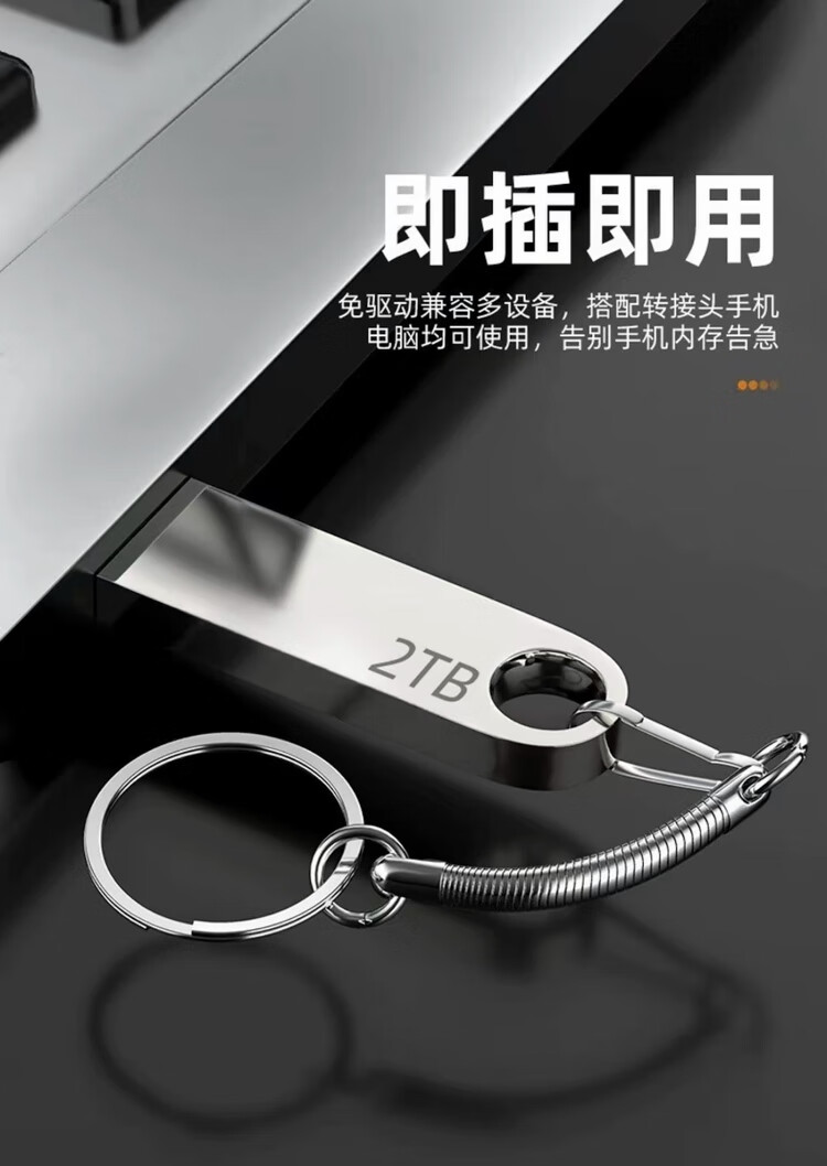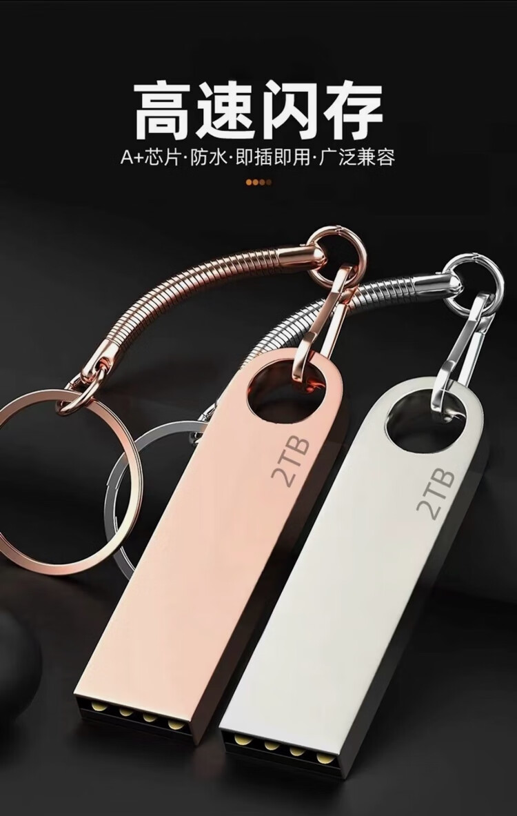 高速U盘2000GB学生大容量1TB手机电脑两用优盘512gb金属 刻字 2000GB
