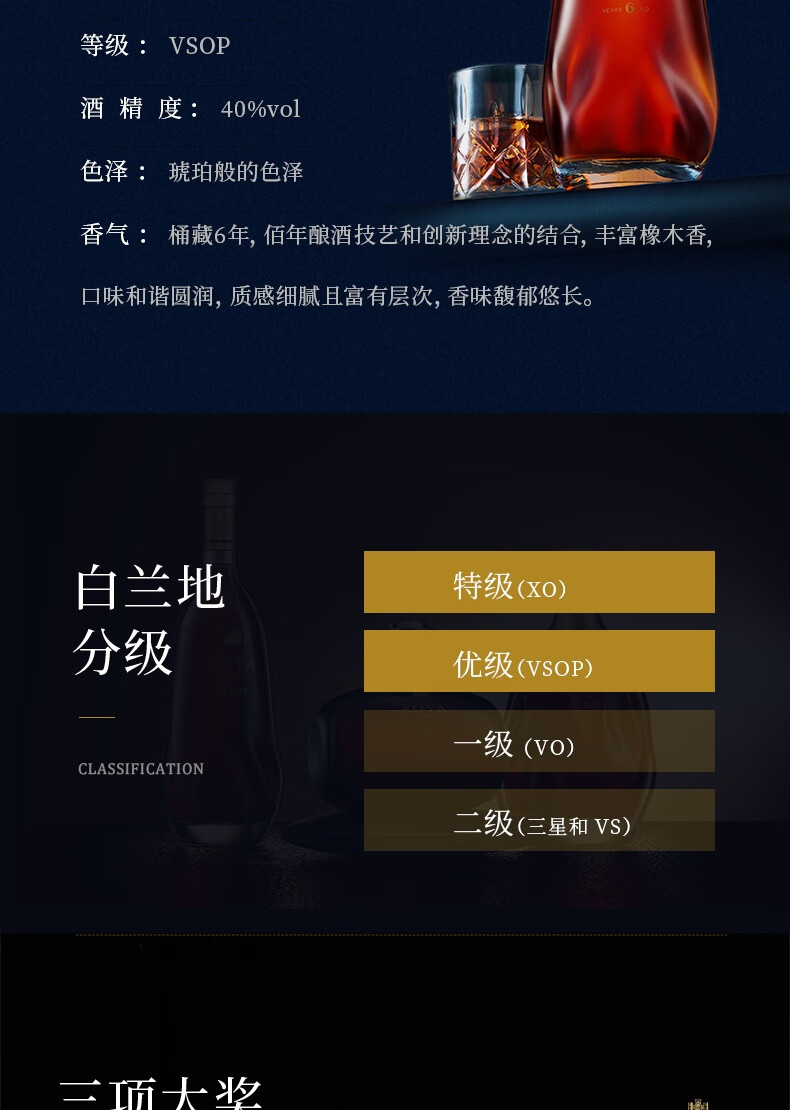 张裕可雅白兰地 全家福套装 三支礼盒装 洋酒酒庄酒送礼聚会宴会酒 2050mL 3瓶 组合装共三支 700ml*1 700ml*1 650ml*1