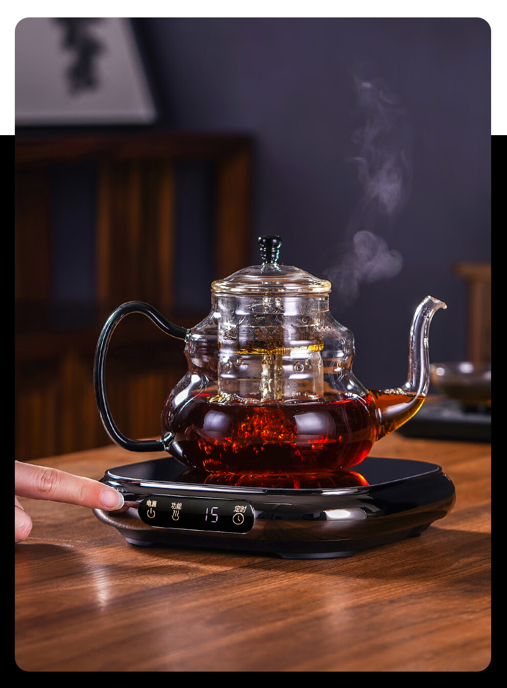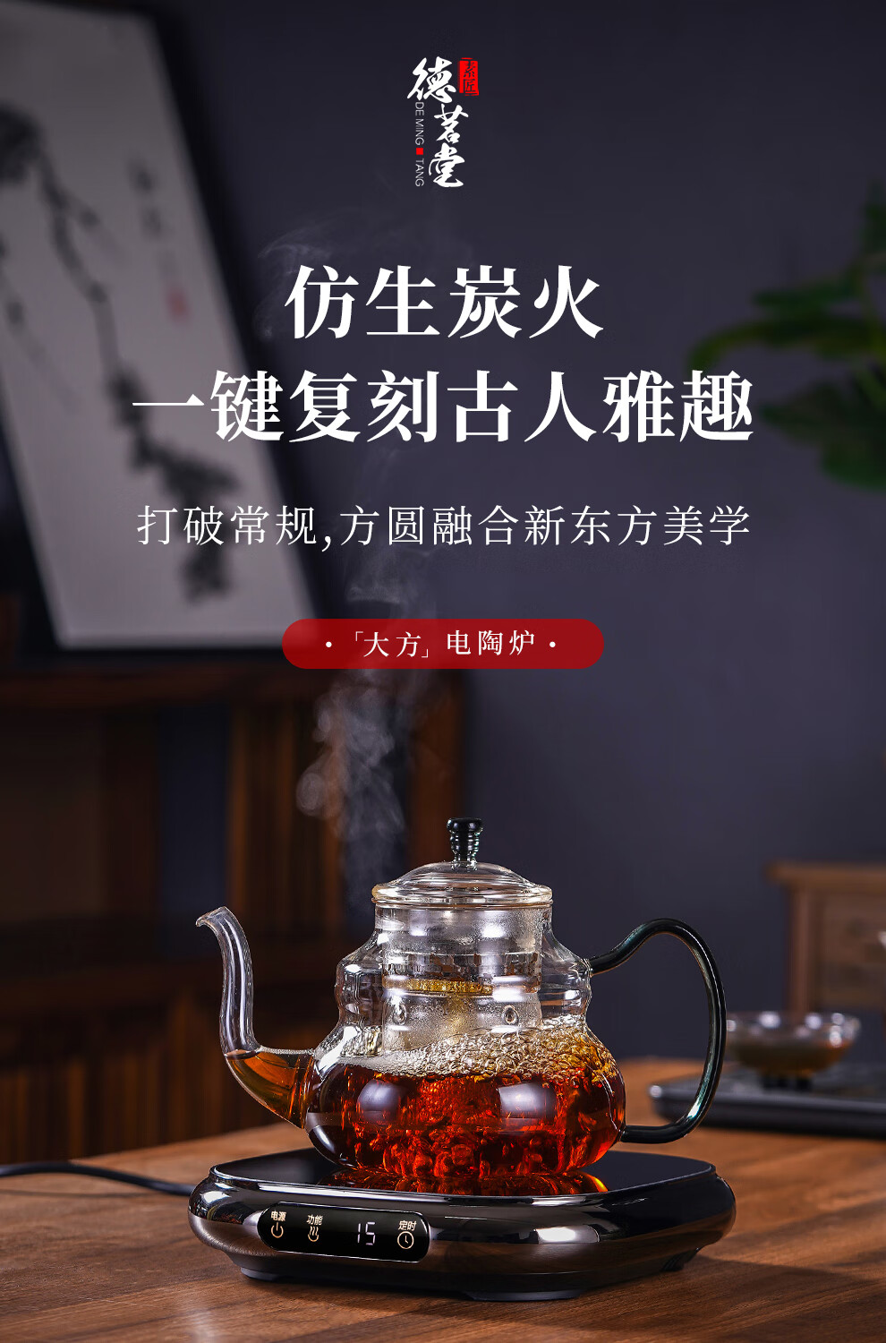德茗堂2025新品大方电陶炉 电陶炉煮茶套装 蒸煮一体玻璃茶壶 小型煮茶器室内煮茶炉 烧水煮茶围炉煮茶 【热销】大方+蒸煮一体茶壶 1000ml