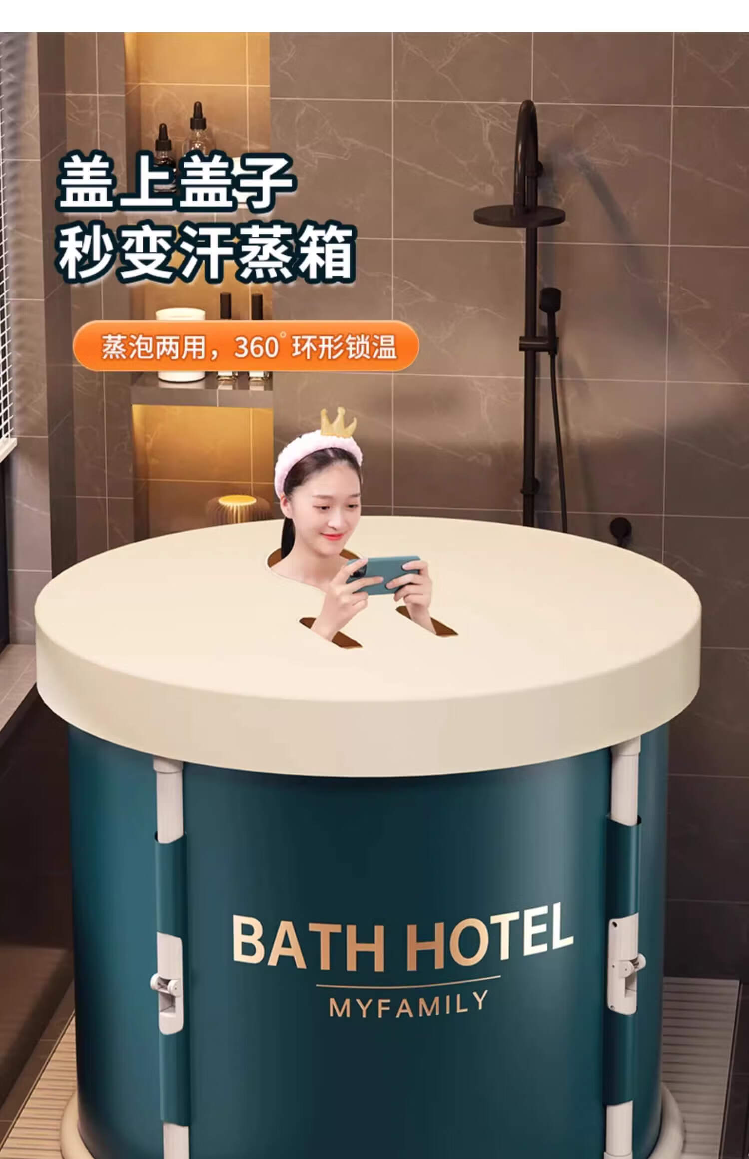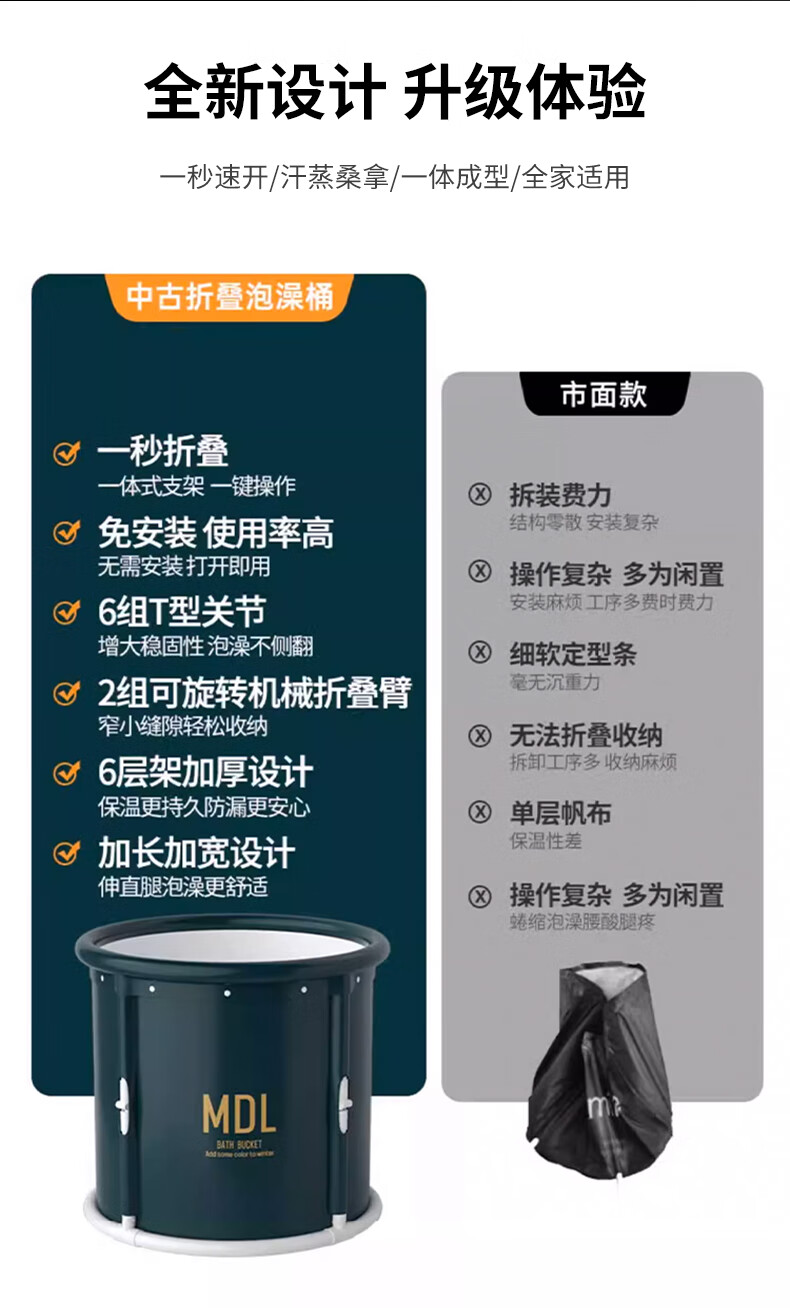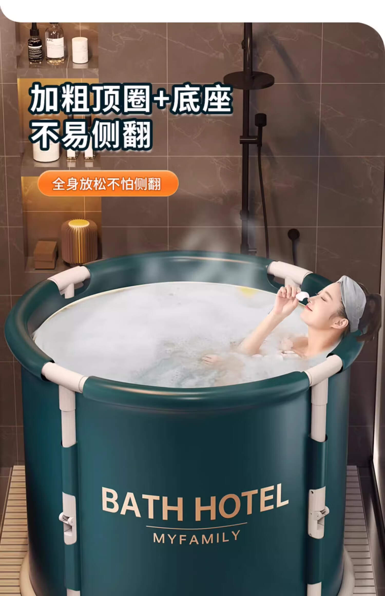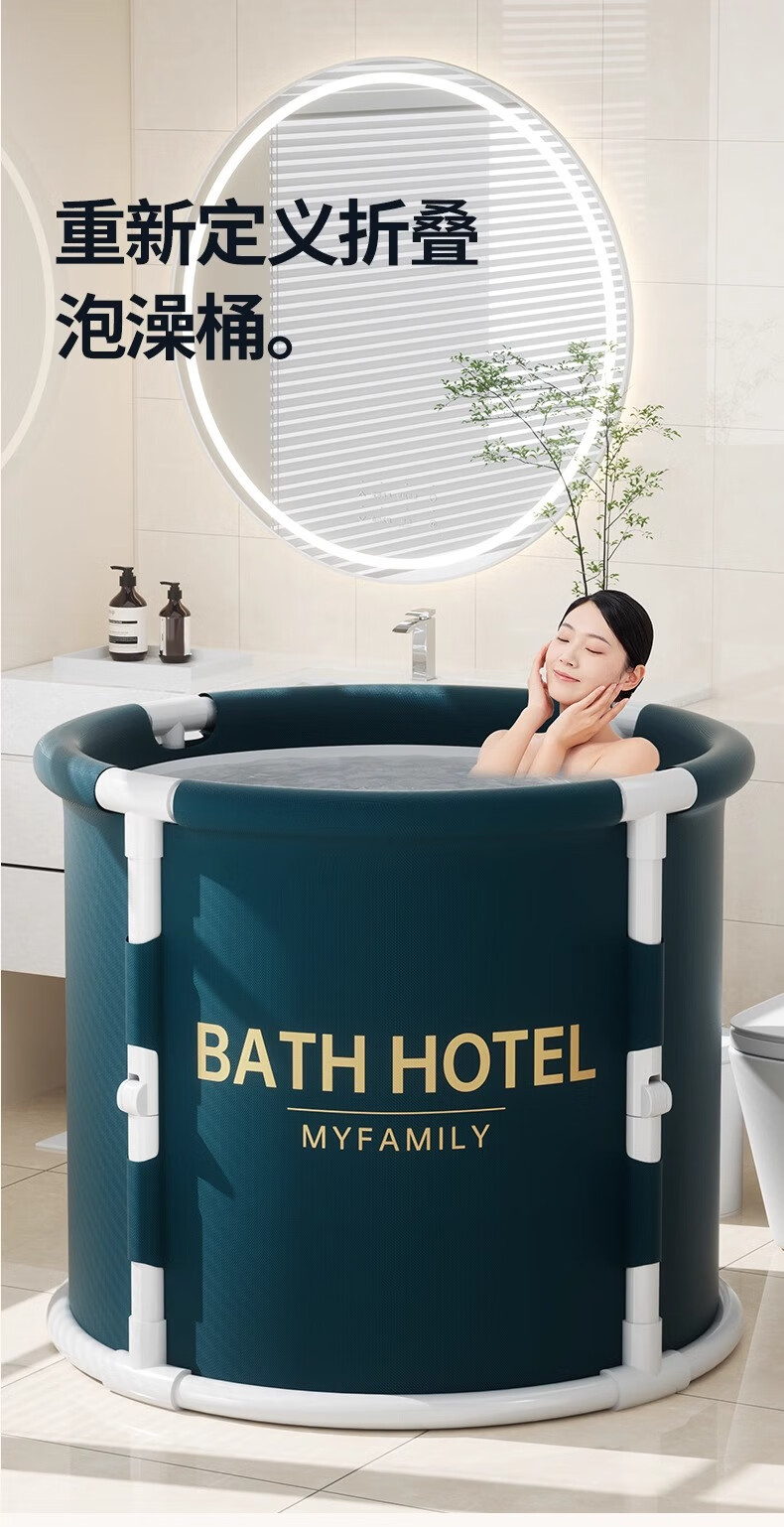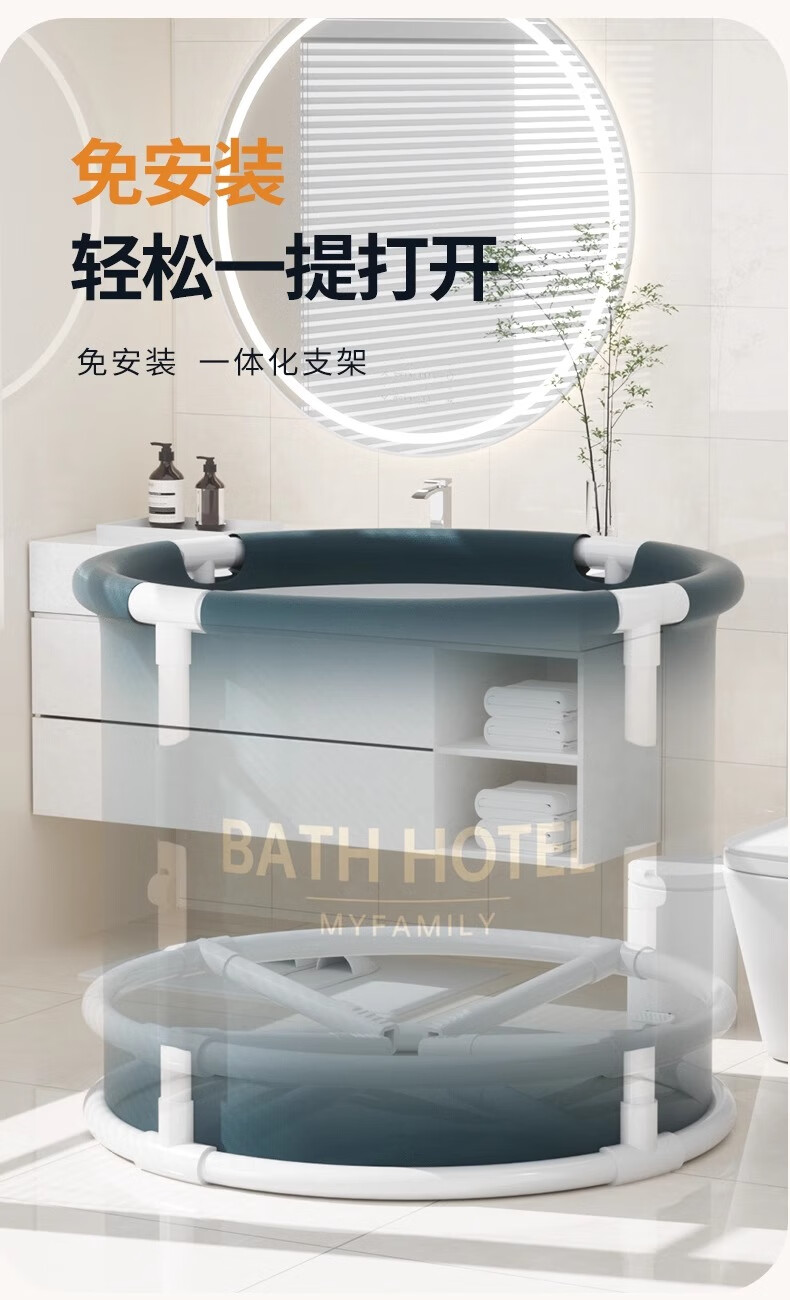 妙馨思泡澡桶成人实用浴桶浴缸洗澡桶大人可折叠沐浴神器洗澡泳桶坐浴盆 免安装可折叠泡澡桶圆形