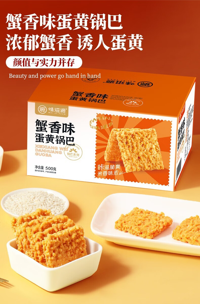味滋源 纯糯米锅巴 蟹黄味牛肉味咸香味香辣味 独立包装休闲零食小零食 香辣味500g+蟹黄味500g 1份