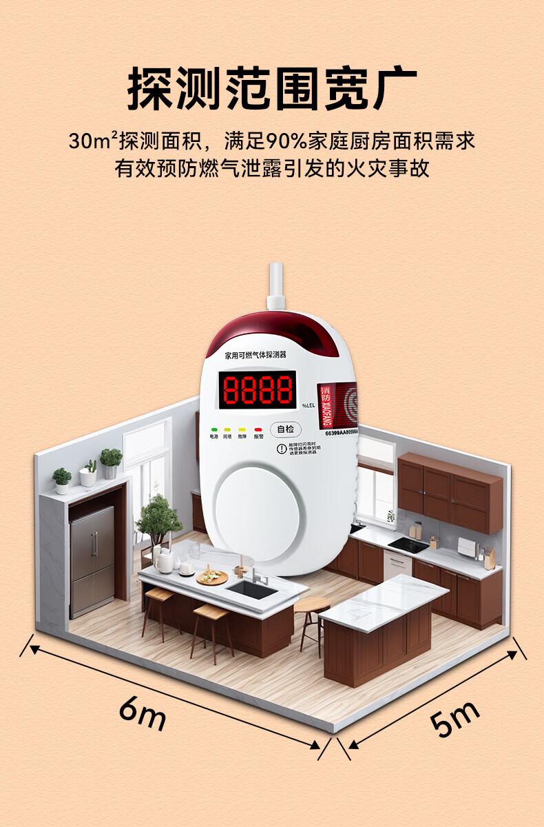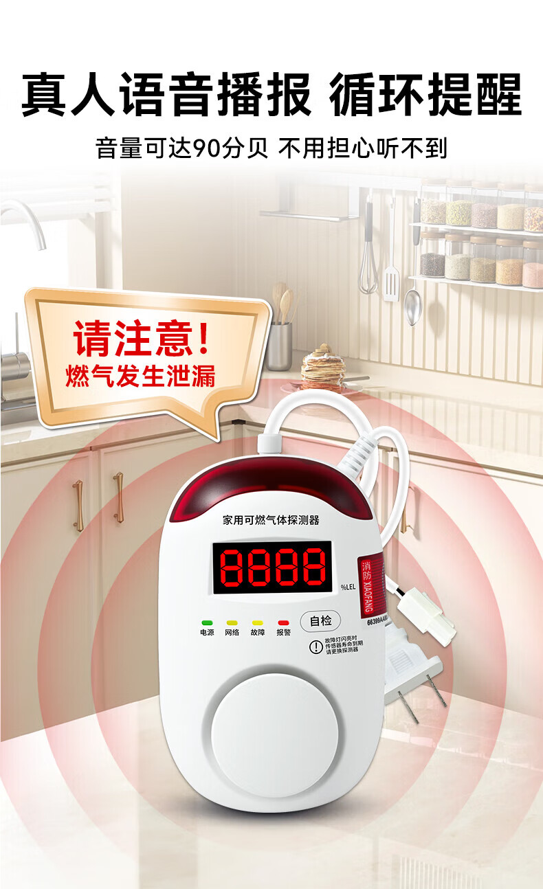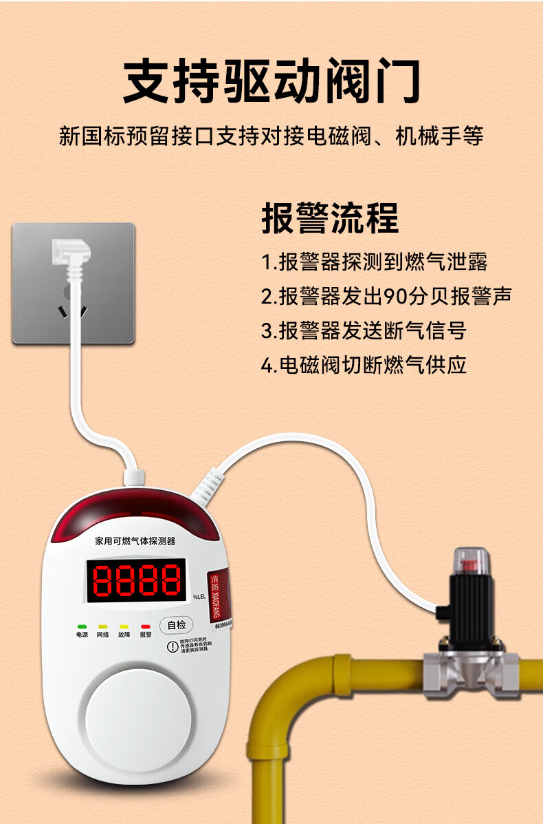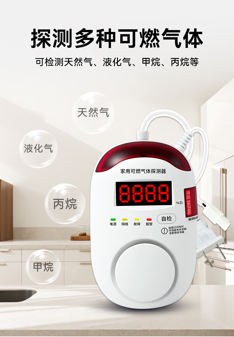立可安 燃气报警器天然气报警器家用厨房甲烷天然气泄漏自动切断阀 【独立款】天然气报警器