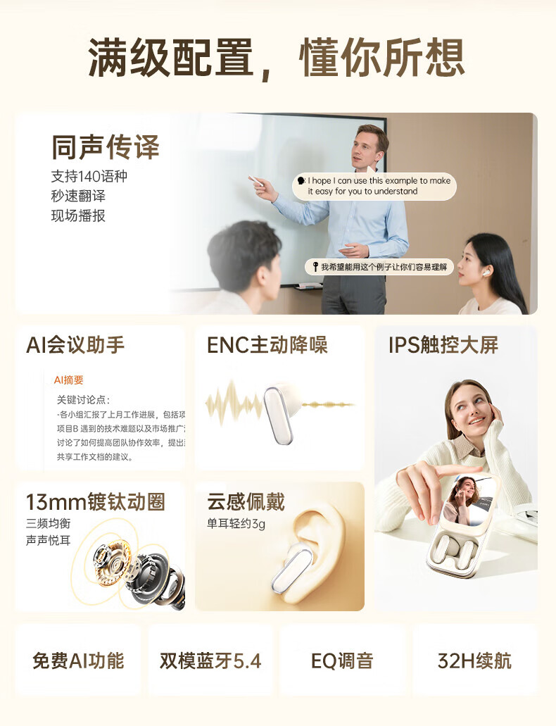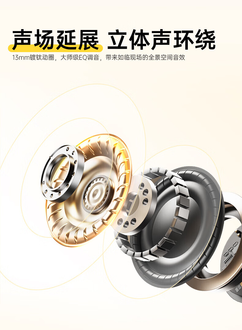 FEINADE【柏林之声丨顶配新款】蓝牙耳机挂耳式无线耳机骨传导概念开放式不入耳降噪运动超长续航适用华为 月光白|ENC降噪|超强音质|不漏音