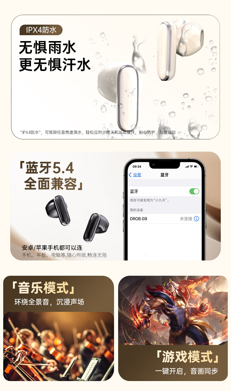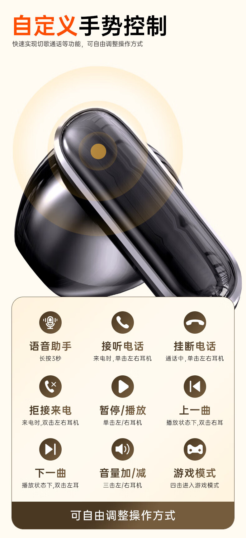 爱国者(aigo)[1年质保送运费险]蓝牙耳机真无线 ENC降噪蓝牙耳机半入耳式 运动跑步触控游戏高清音质安卓学生 【听歌/游戏两不误】白色