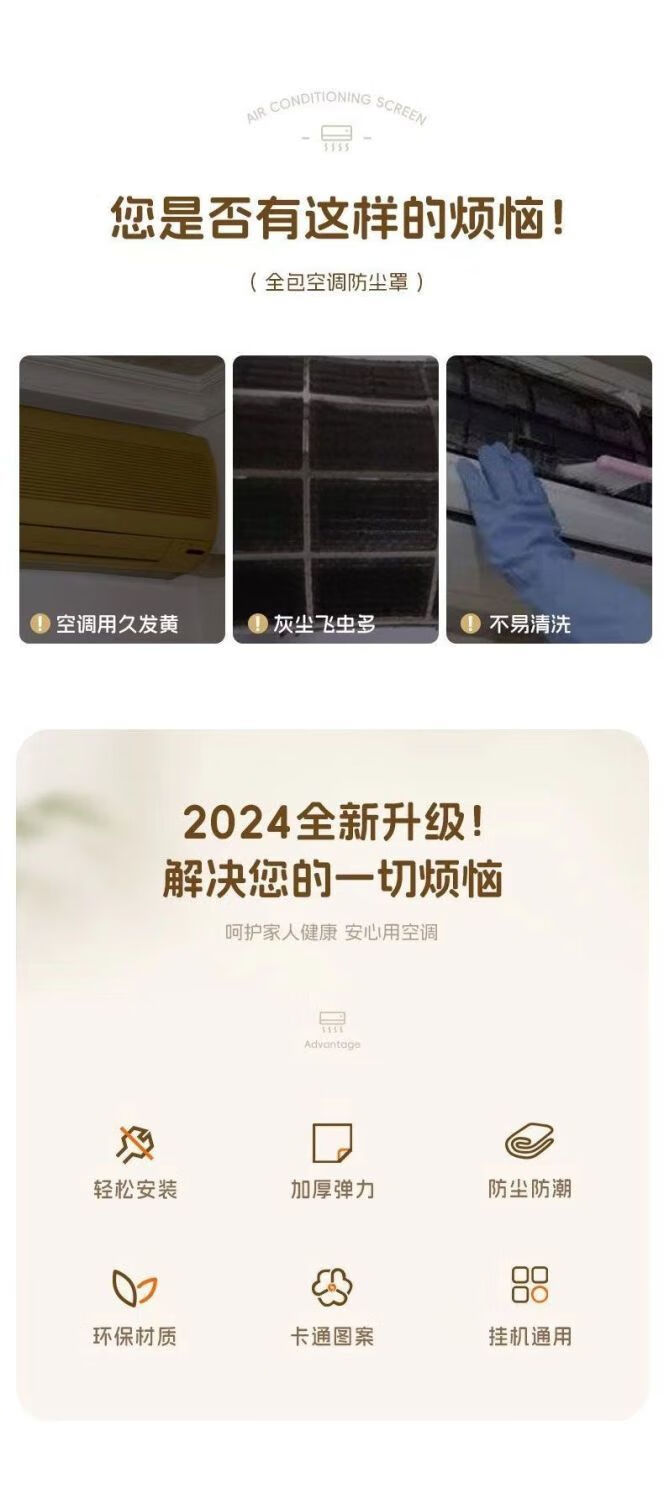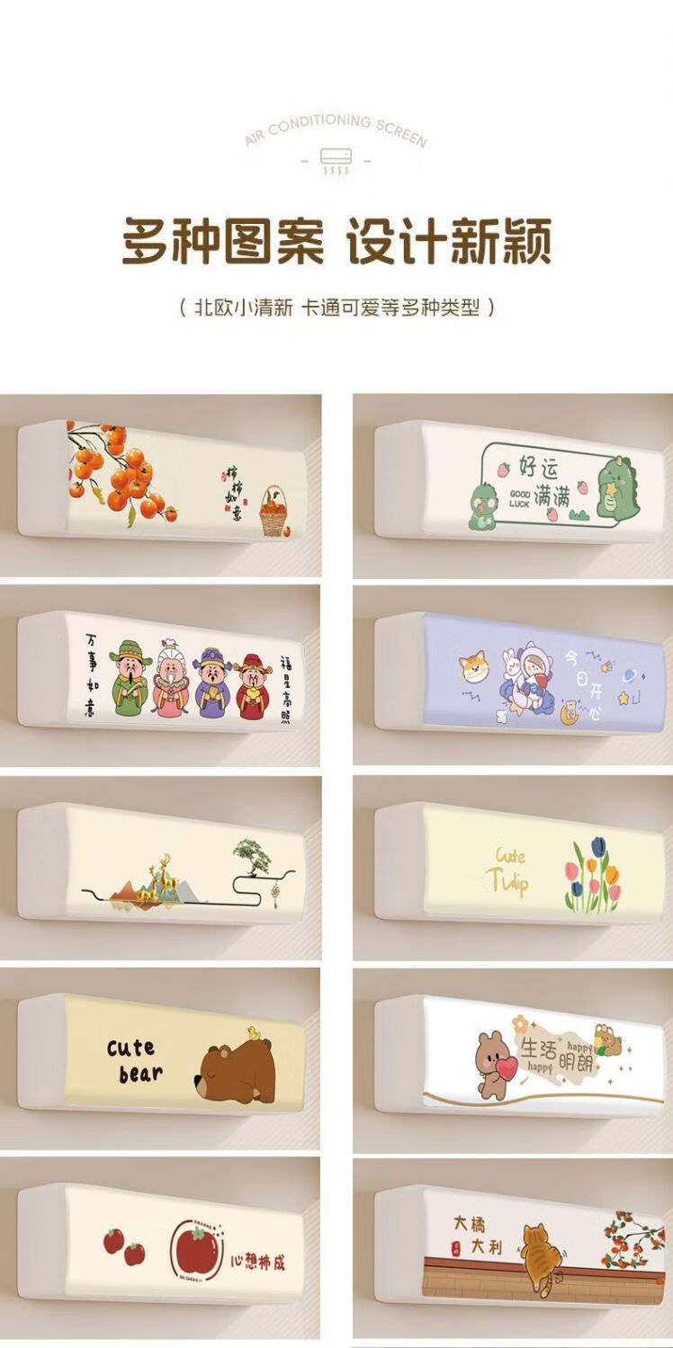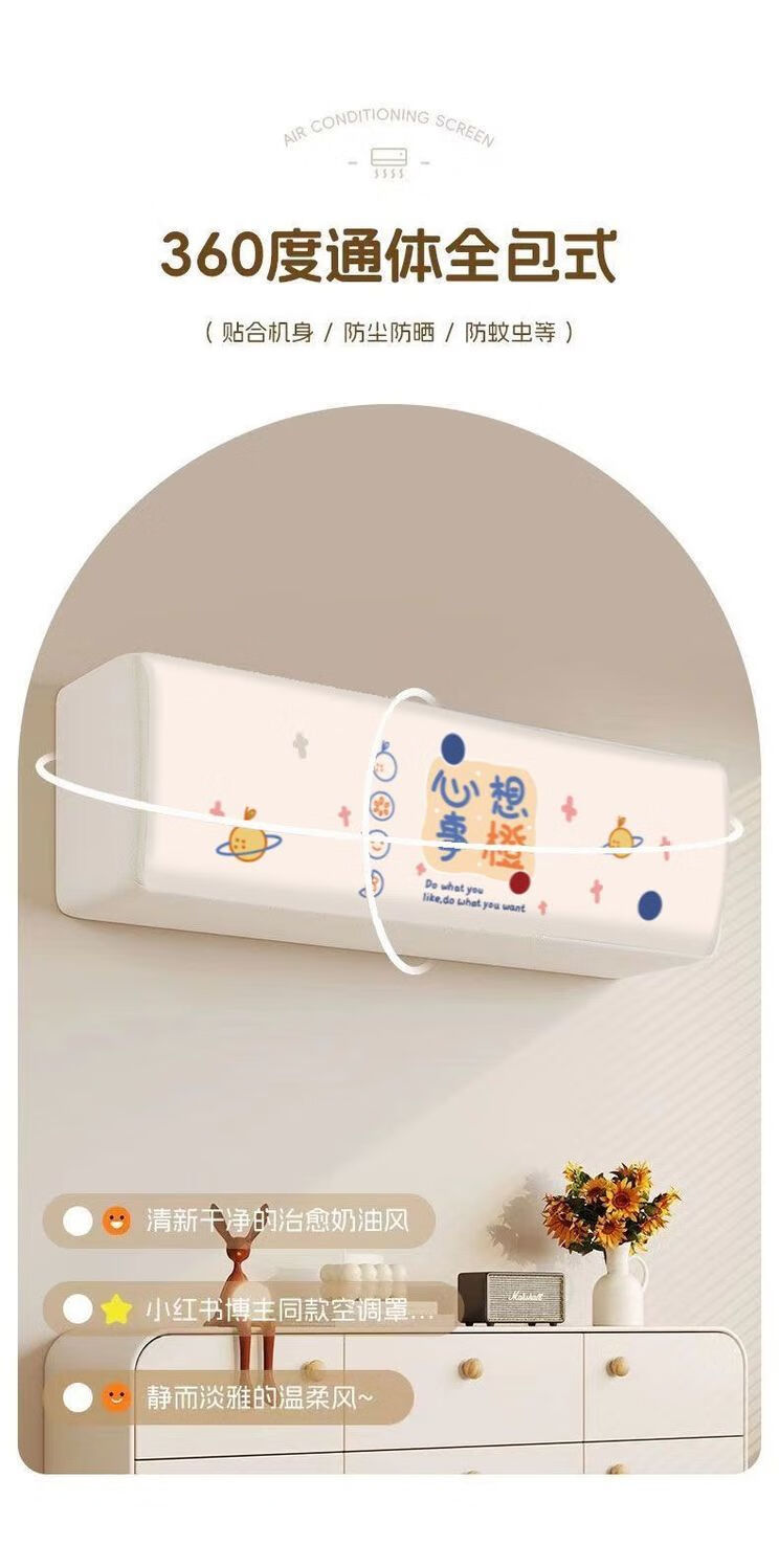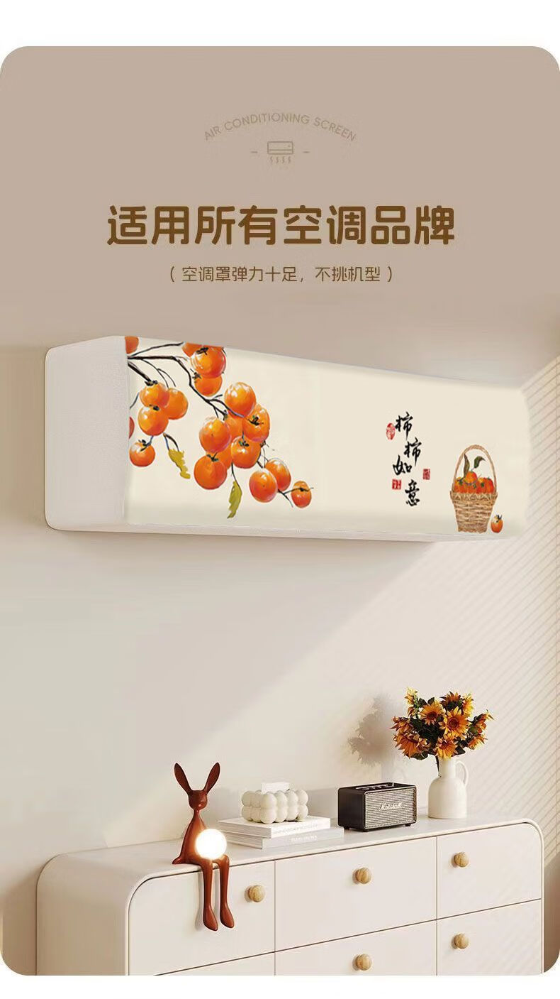 沐凡【精选直发】空调防尘罩通用罩挂式挂机卧室格力美的奥克斯全包布 柿柿如意 全包款(80cm内)1p