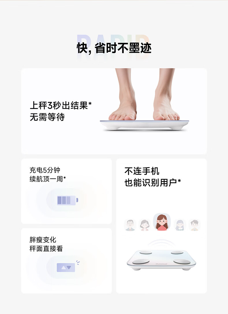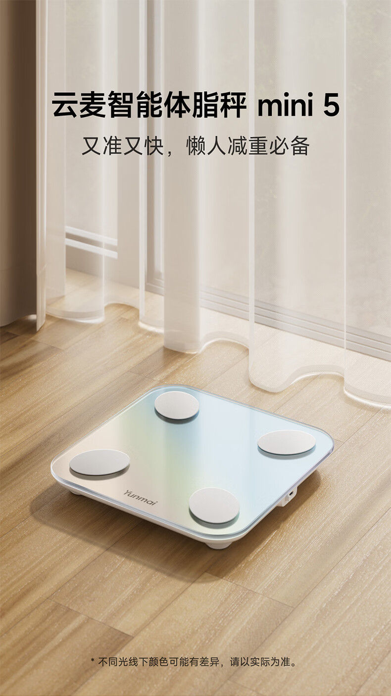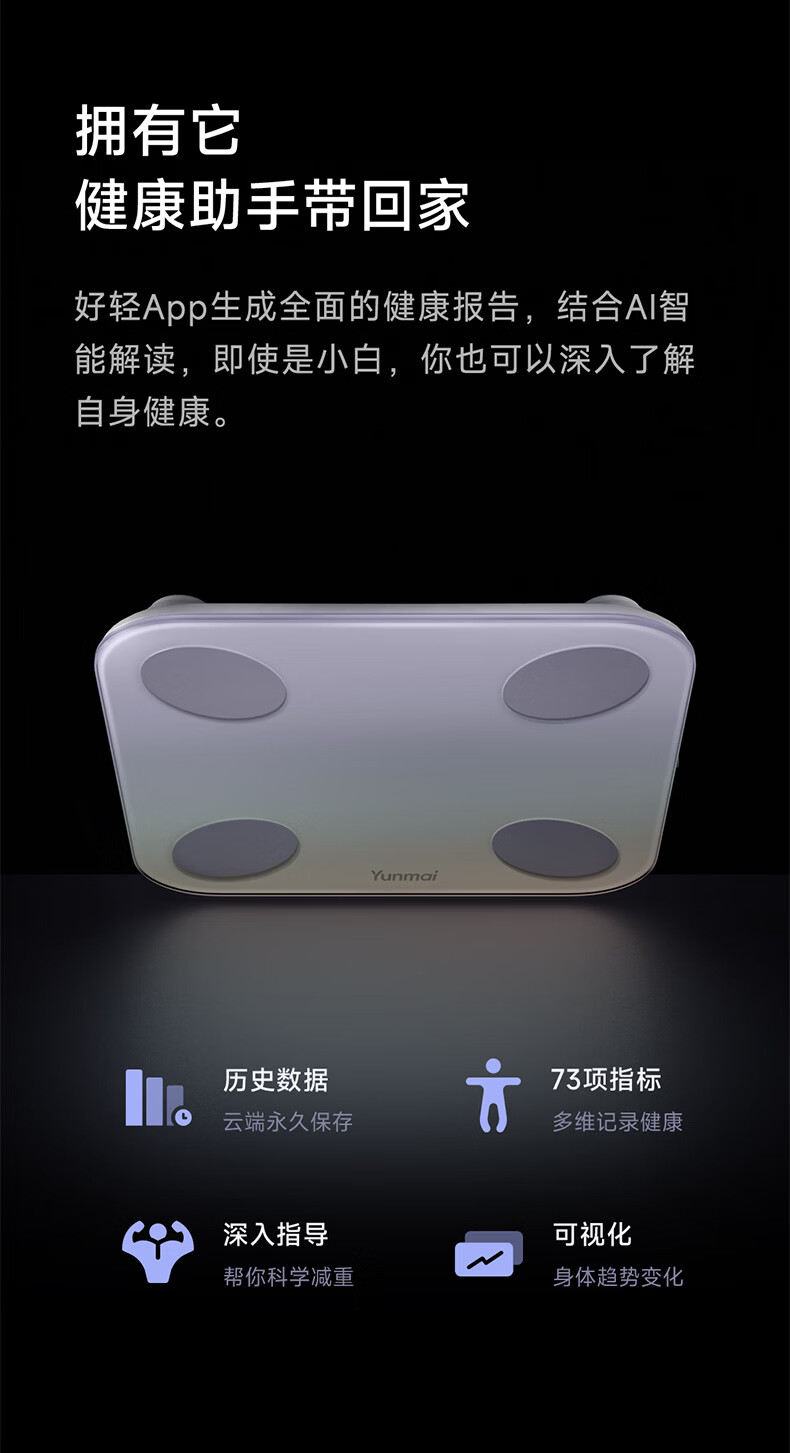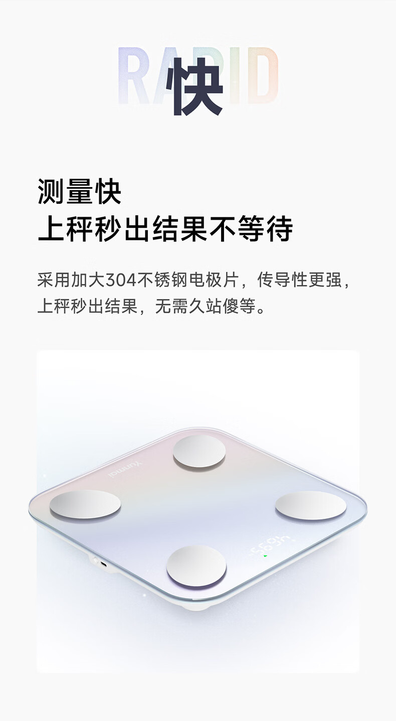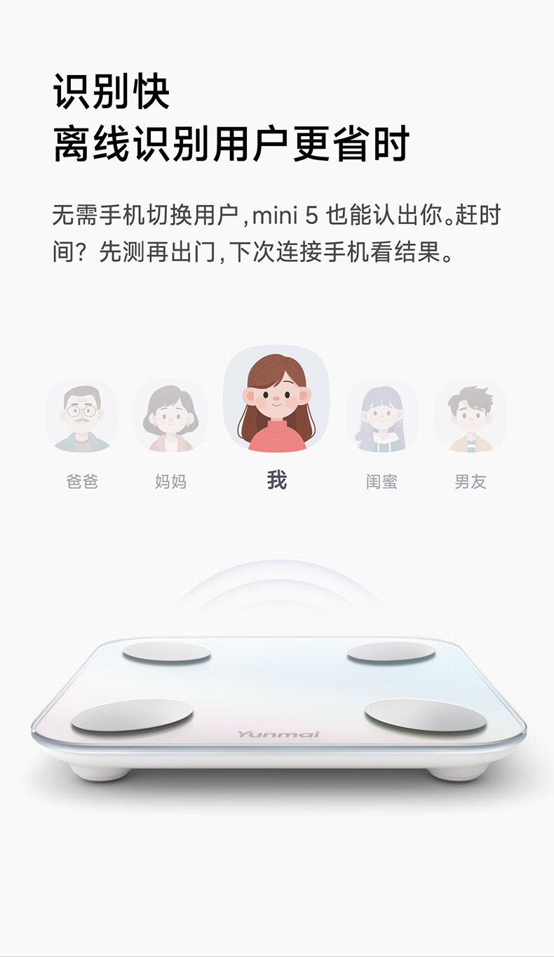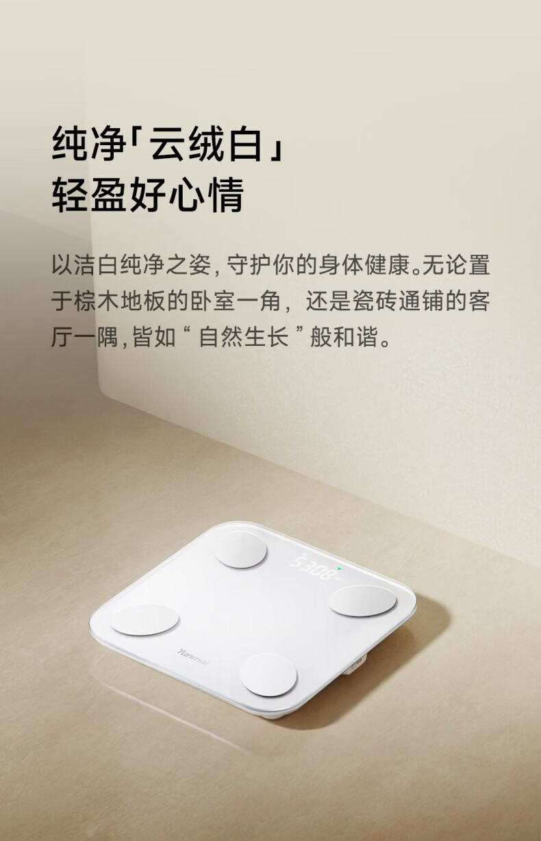 云麦智能心率体脂秤mini5 家用电子秤体重秤高精准73项身体数据监测 人体塑形减脂称重减肥管理专用 智能体脂秤mini5云绒白