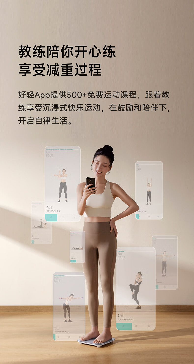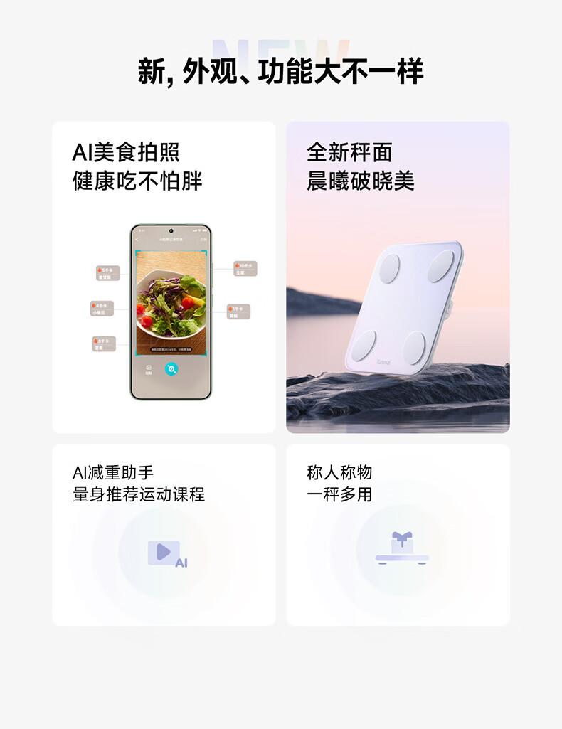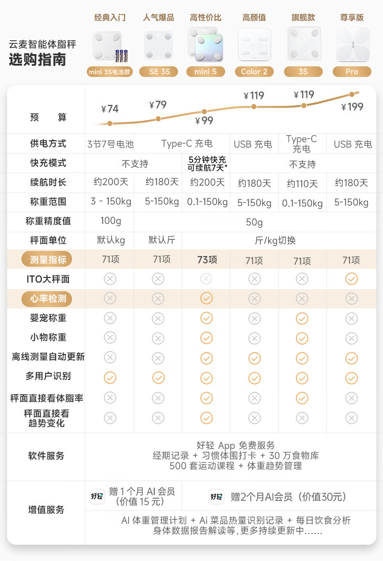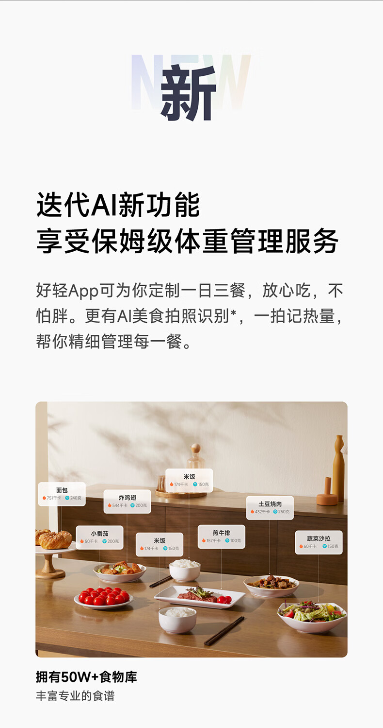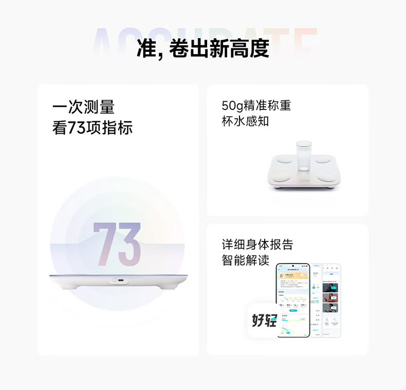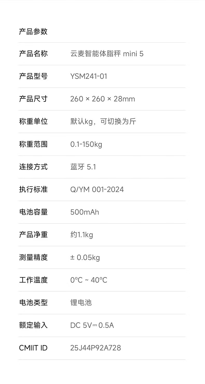 云麦智能心率体脂秤mini5 家用电子秤体重秤高精准73项身体数据监测 人体塑形减脂称重减肥管理专用 智能体脂秤mini5云绒白