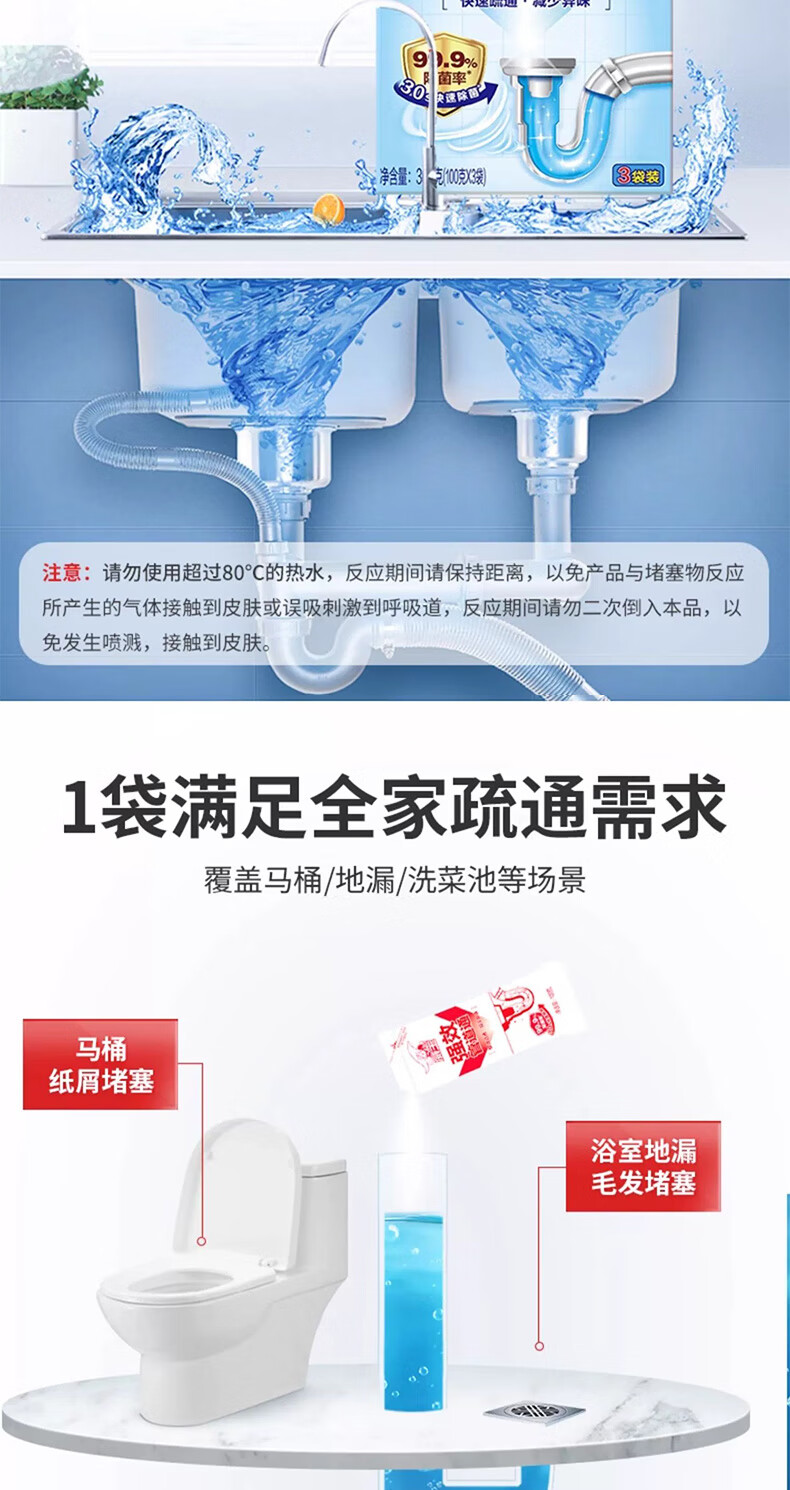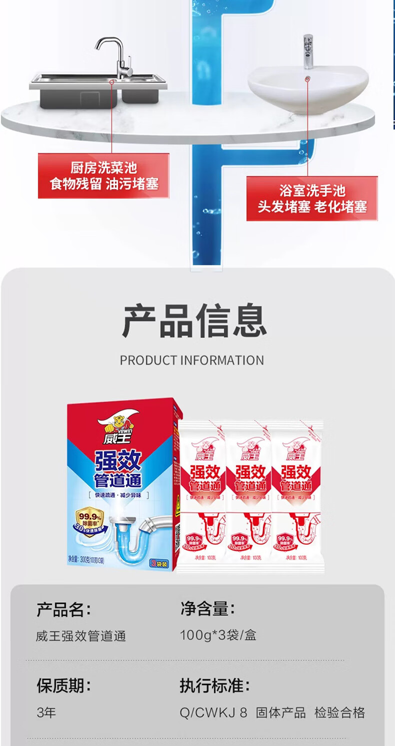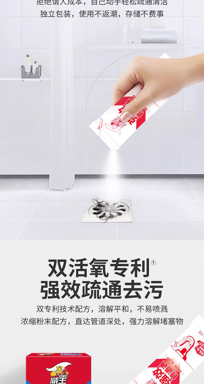 威王管道疏通剂 强力溶解剂通下水道马桶厕所堵塞 消臭除菌抑虫除臭 【爆款推荐】升级强效疏通300g*2