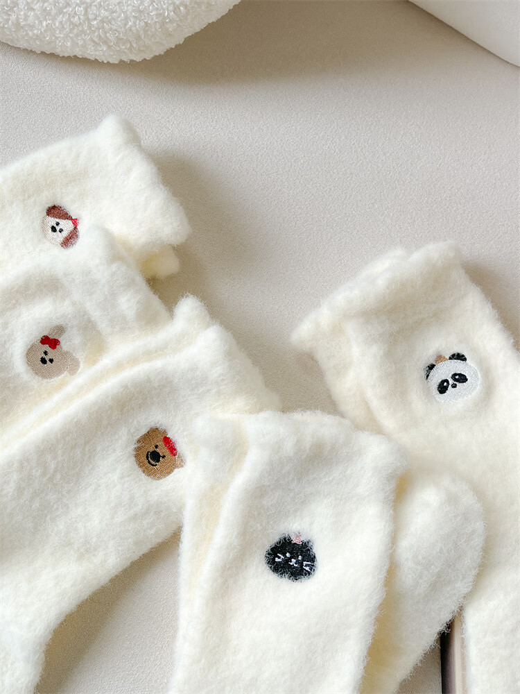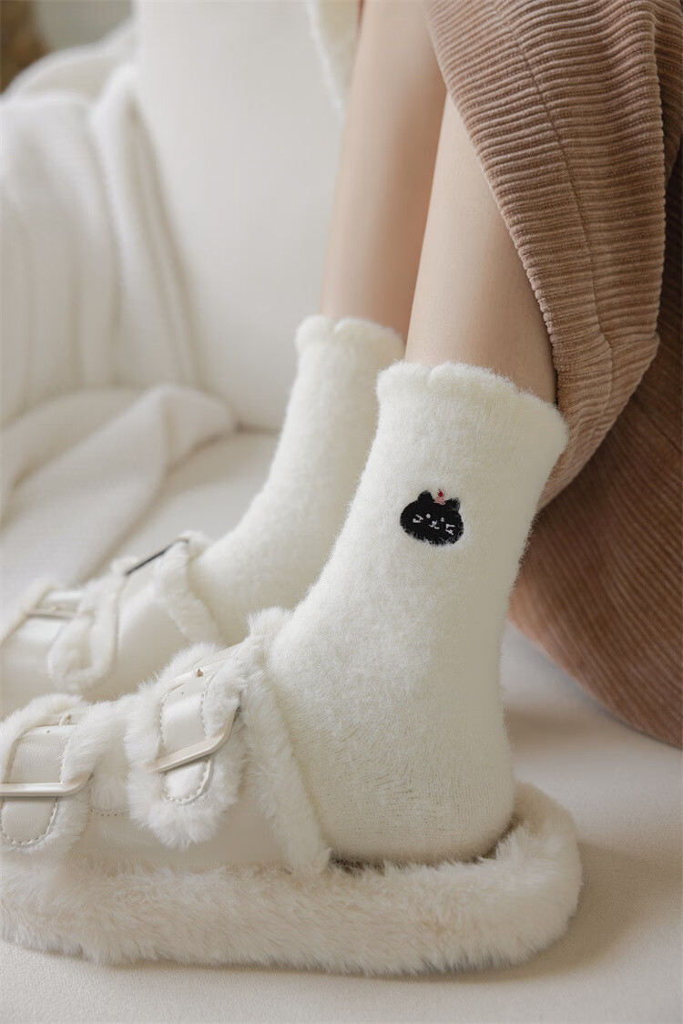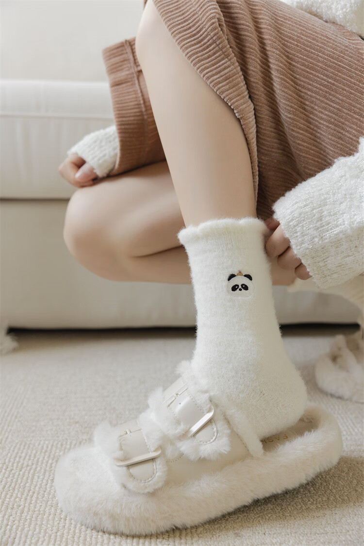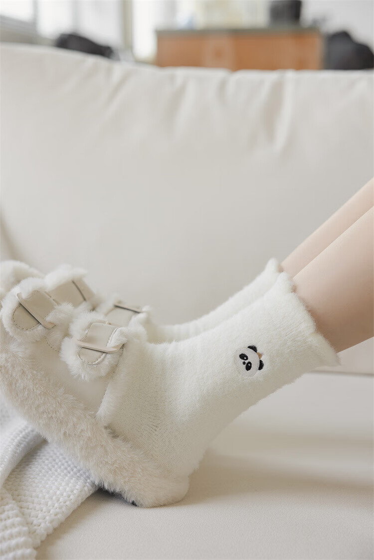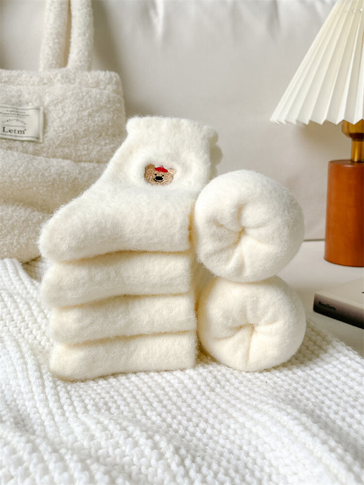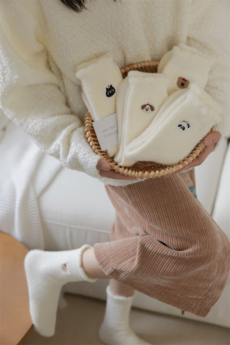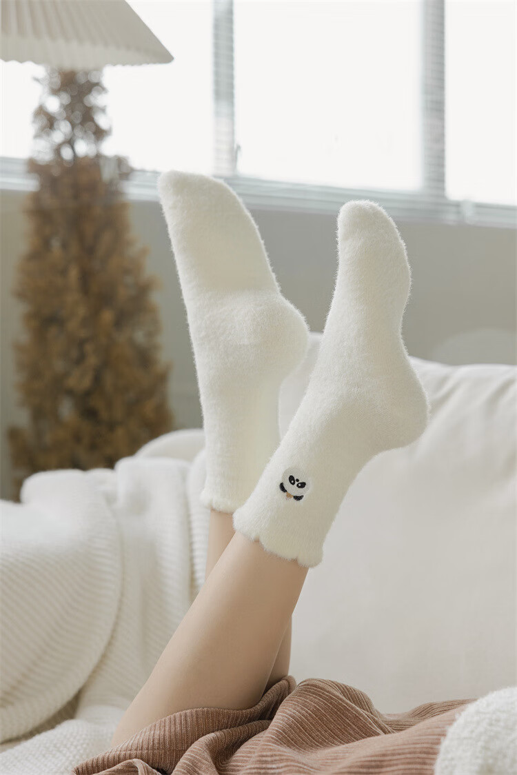 欧蓝薇雅秋冬款加厚袜子中筒冬季纯白睡眠月子地板可爱加绒保暖毛绒袜子女 颜色混搭 10双 均码