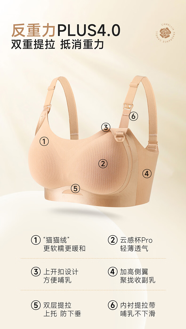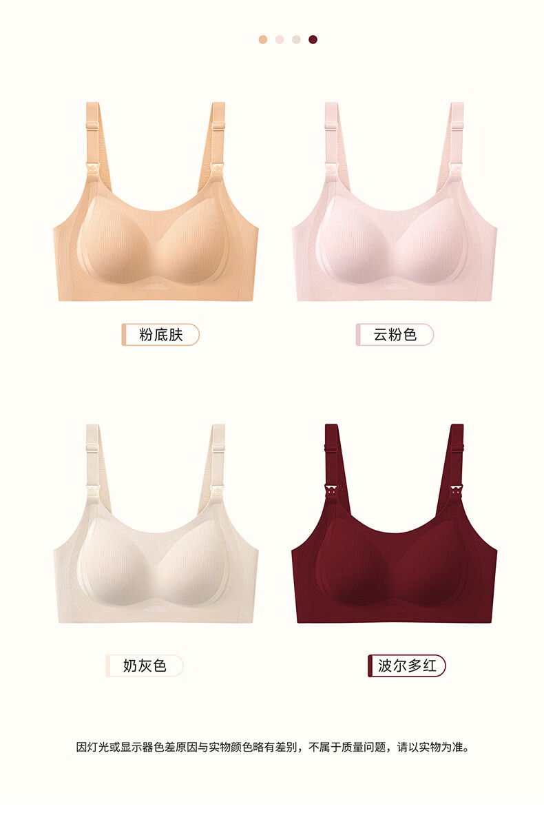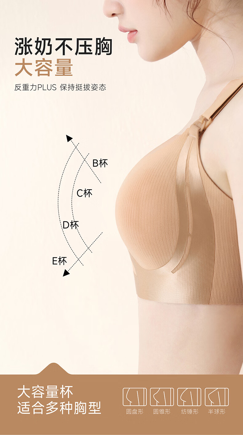 ROVO反重力哺乳内衣山茶花精油聚拢提拉抗菌怀孕产后喂奶专用孕妇文胸 粉底肤+奶灰色 M【建议80-100斤】