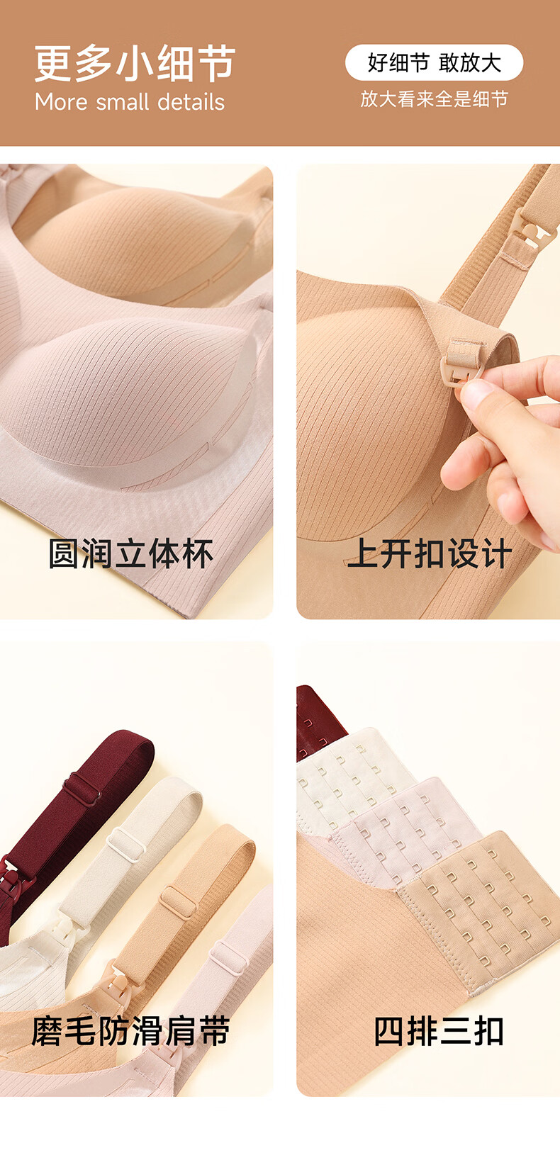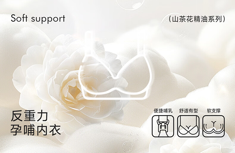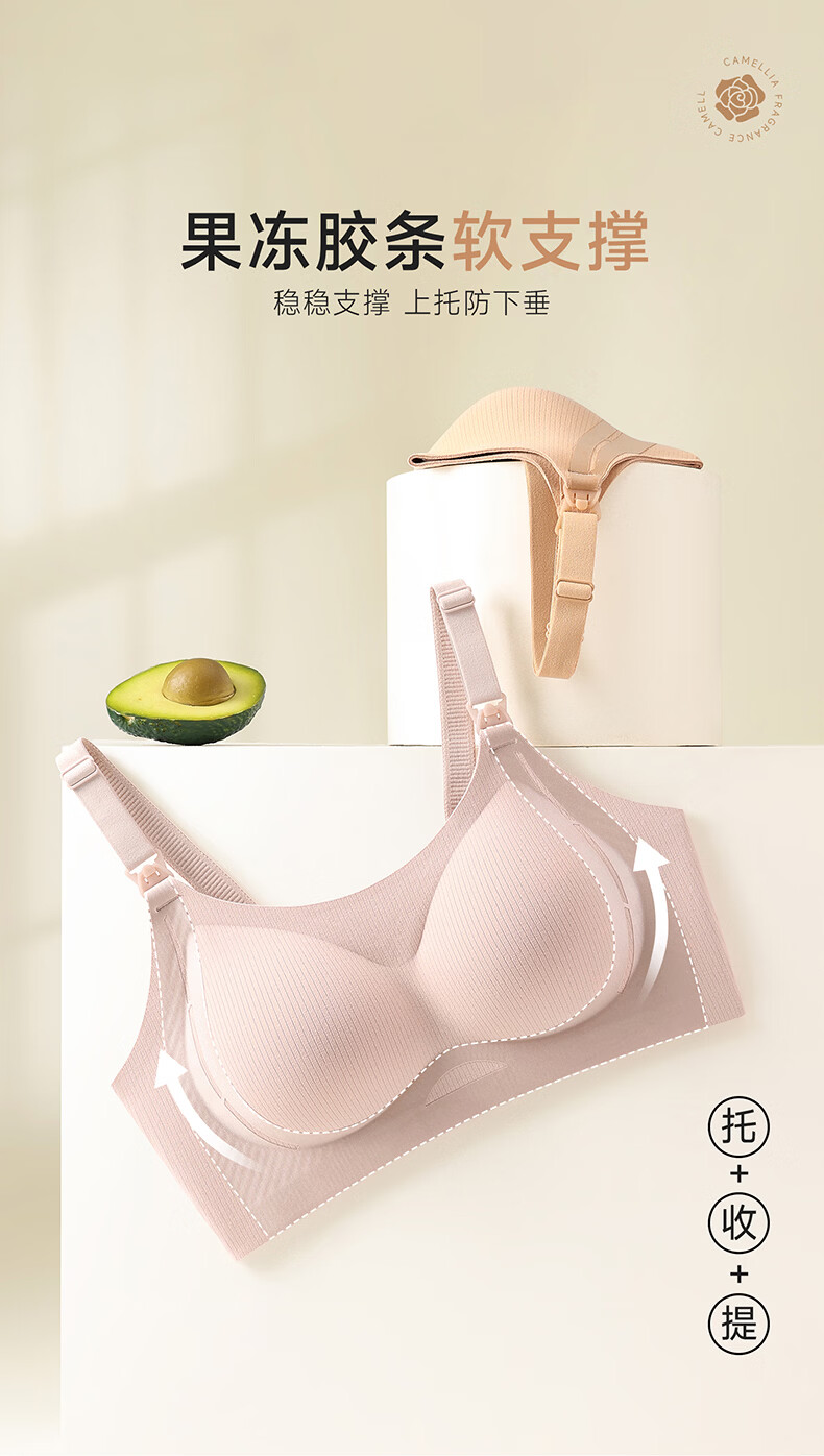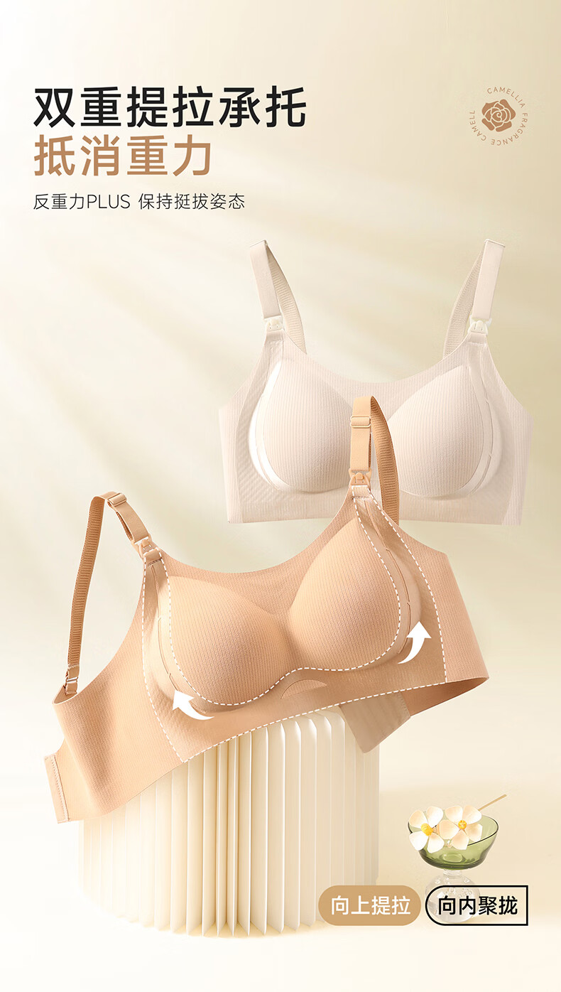 ROVO反重力哺乳内衣山茶花精油聚拢提拉抗菌怀孕产后喂奶专用孕妇文胸 粉底肤+奶灰色 M【建议80-100斤】