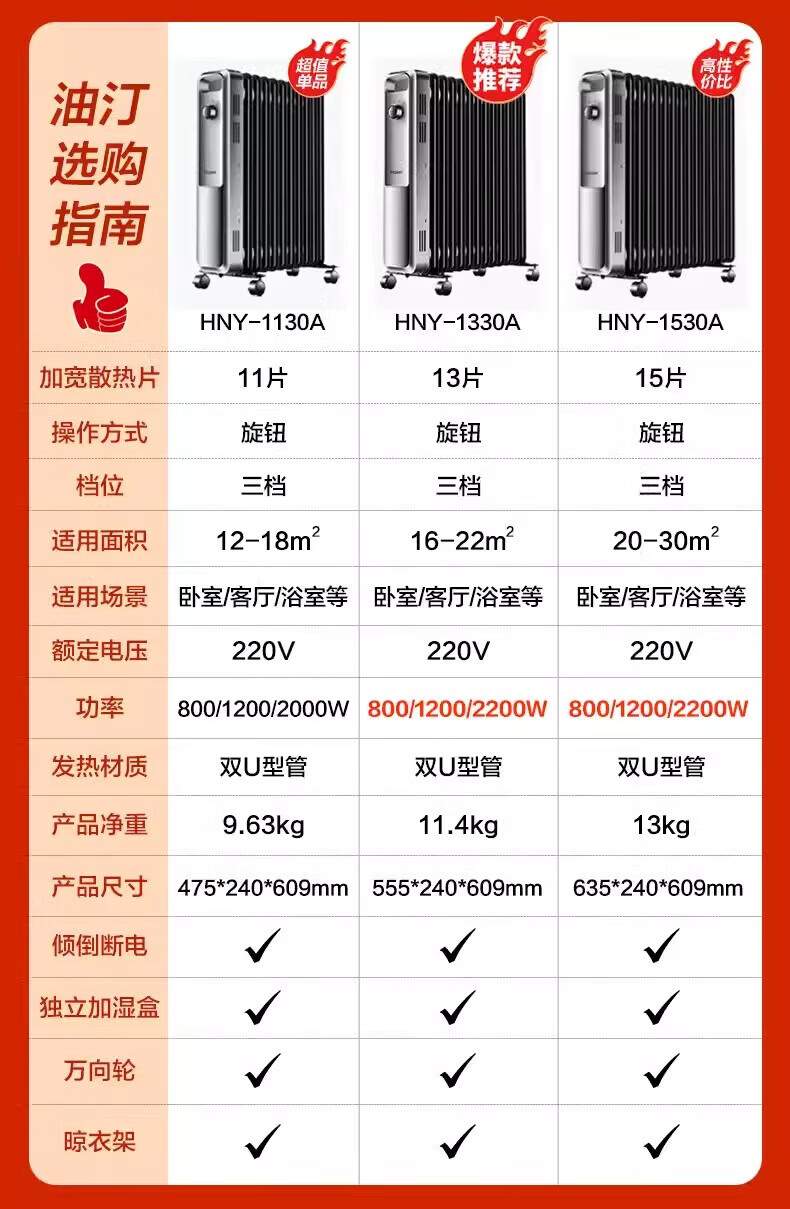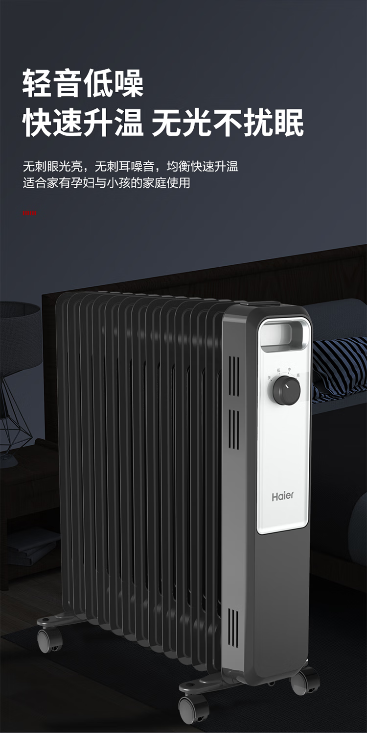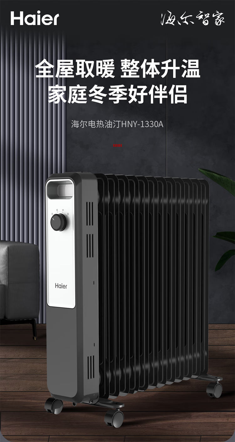 海尔(Haier)家用电热油汀取暖器油加热电暖气片加热器全屋大面积 室内取暖神器全屋升温加热器 13片 机械式 22m³速热取暖