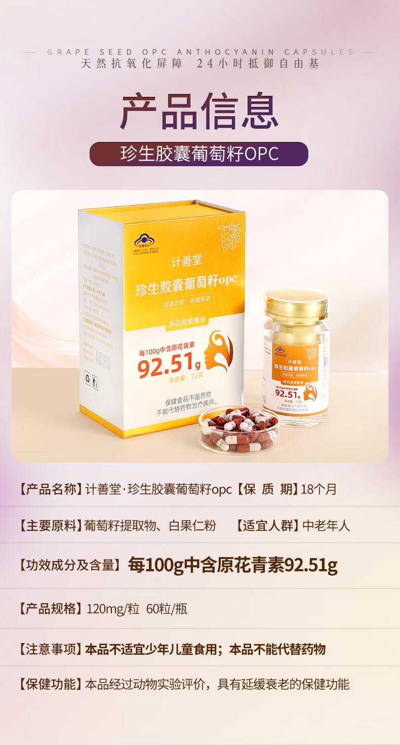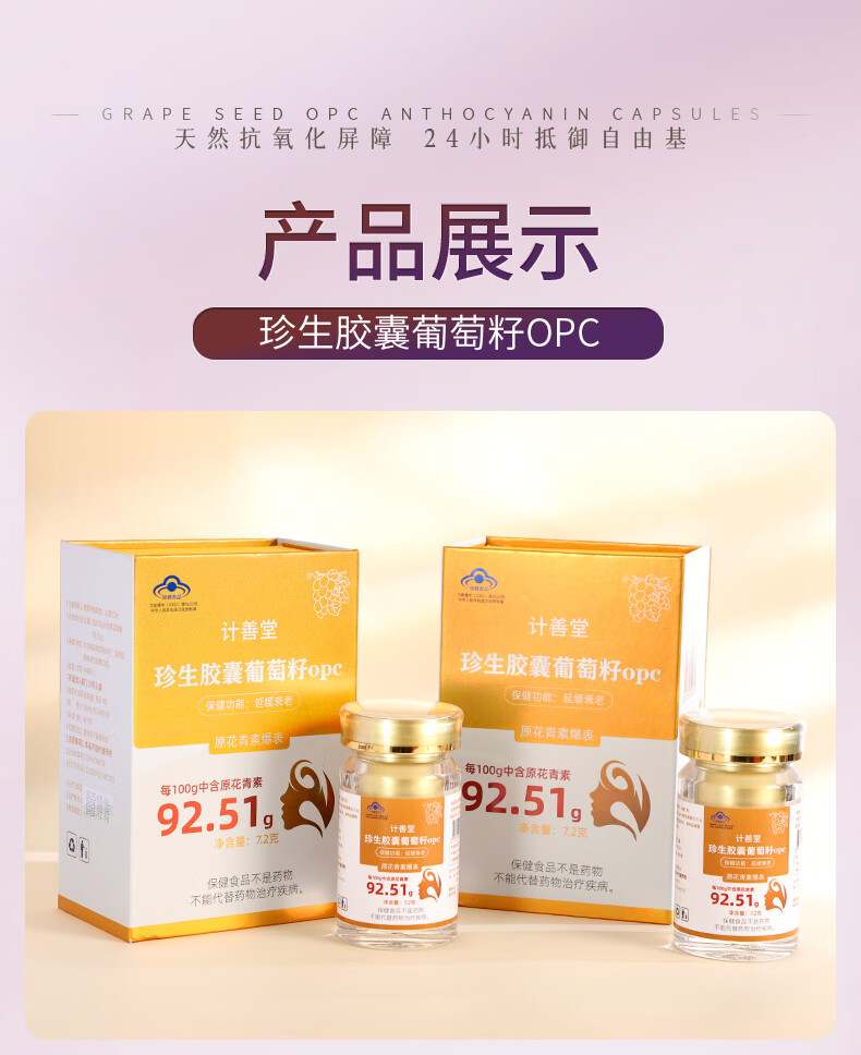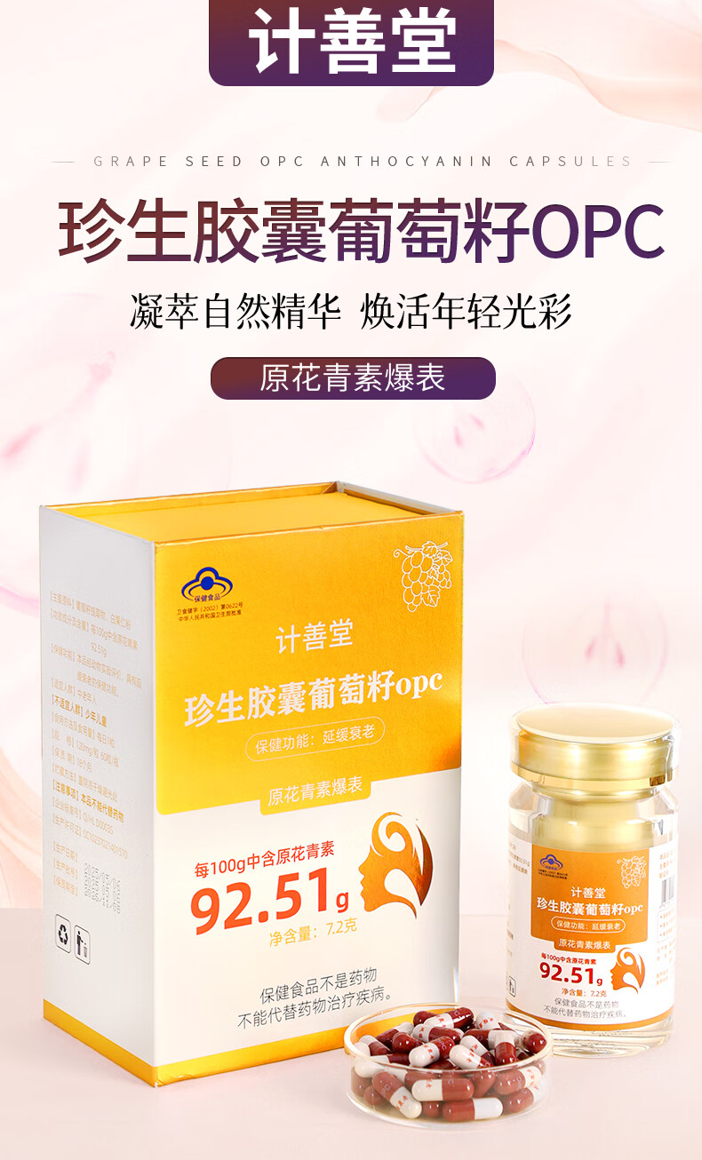 计善堂葡萄籽珍生胶囊opc高含量原花青素抗氧化抗衰老正品保障 8盒装