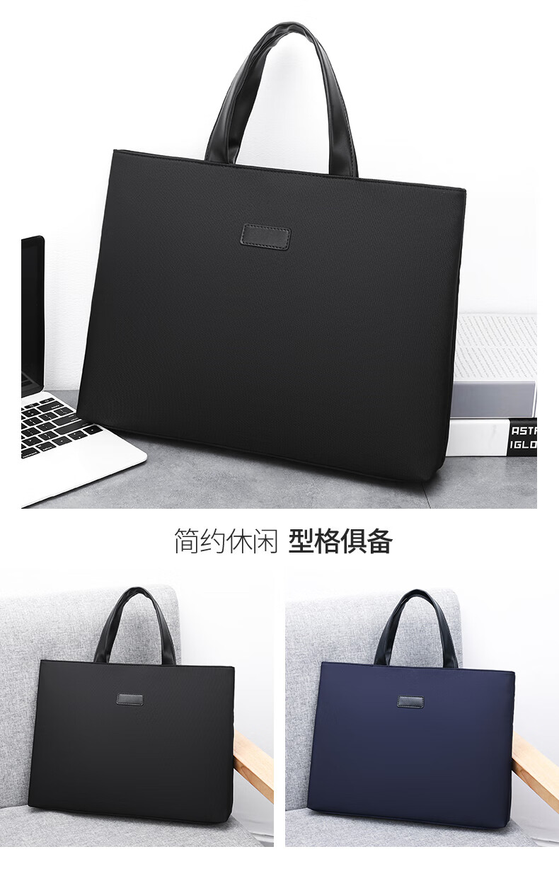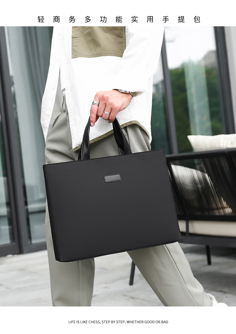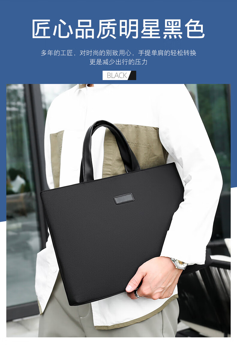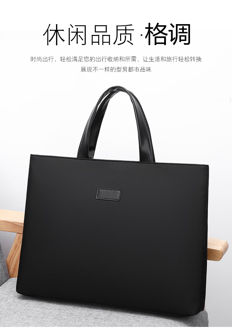 牛津布公文包潮流商务电脑包办公会议文件袋男士大容量简休闲百搭 黑色 均码