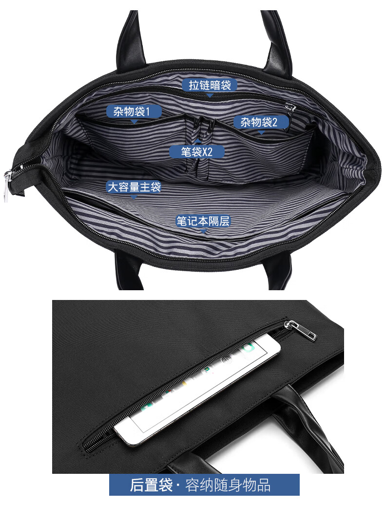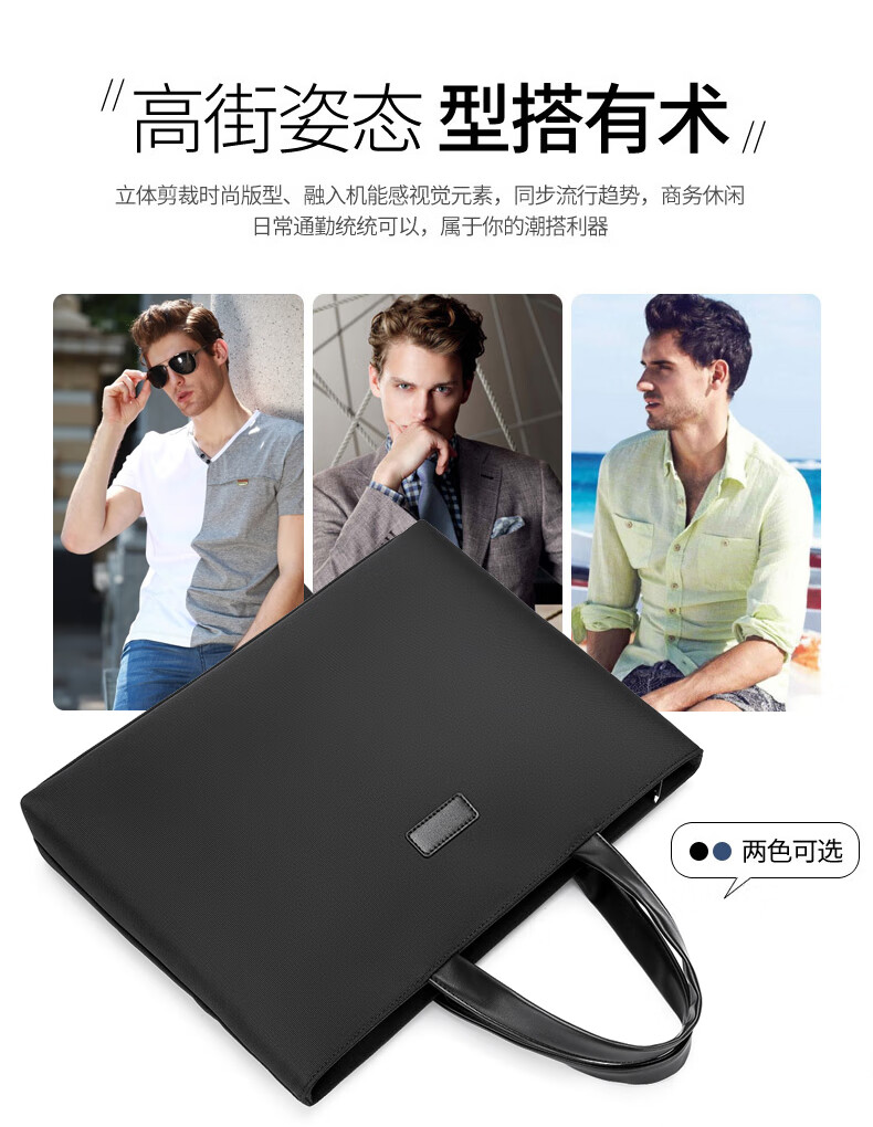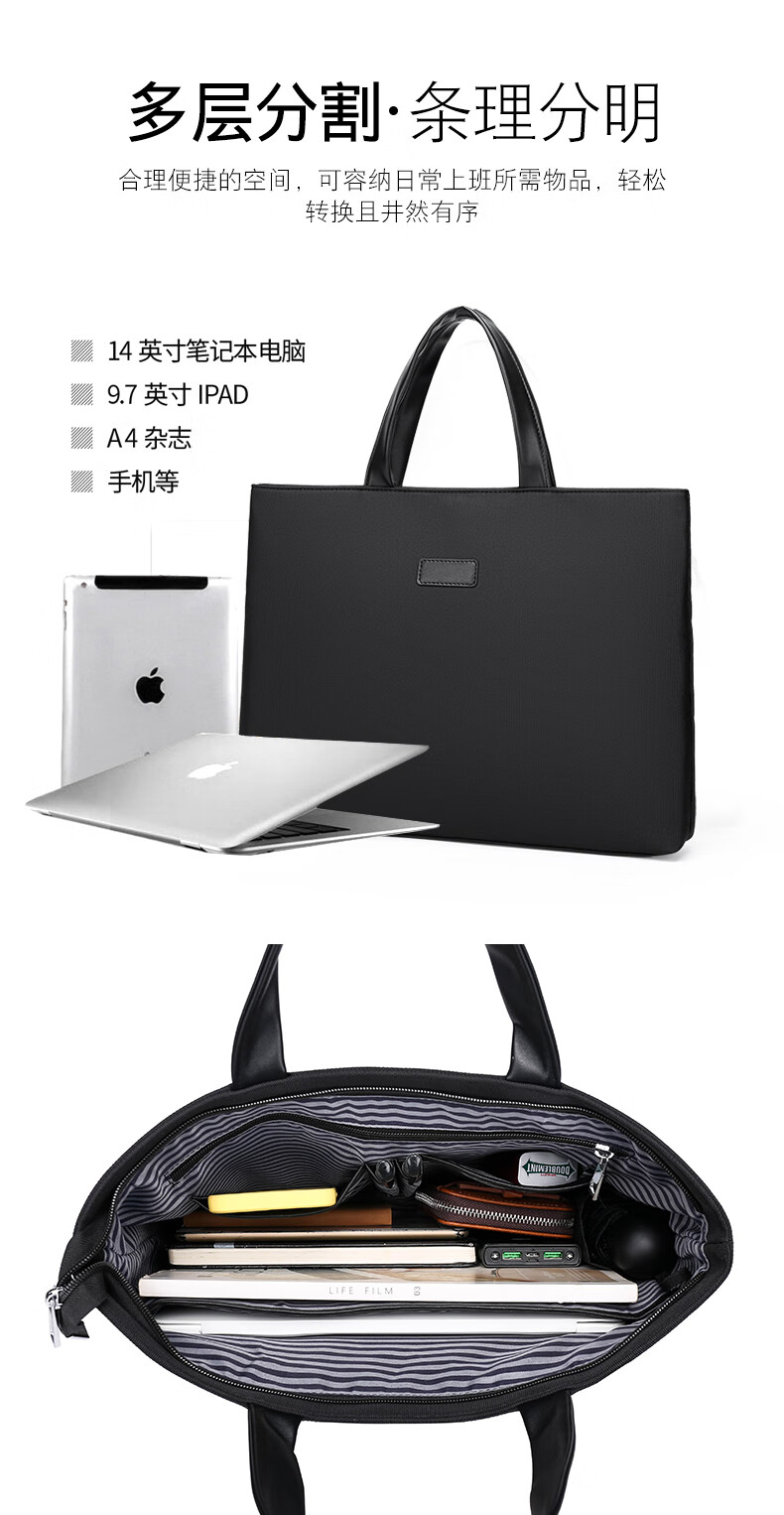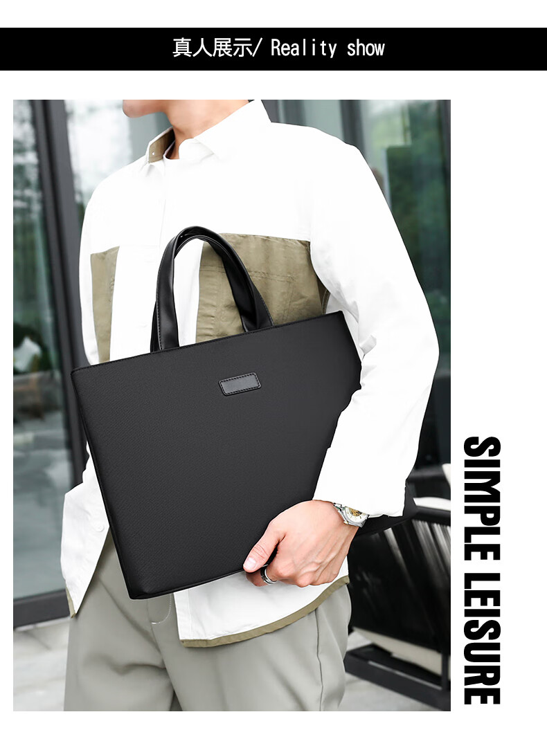 牛津布公文包潮流商务电脑包办公会议文件袋男士大容量简休闲百搭 黑色 均码