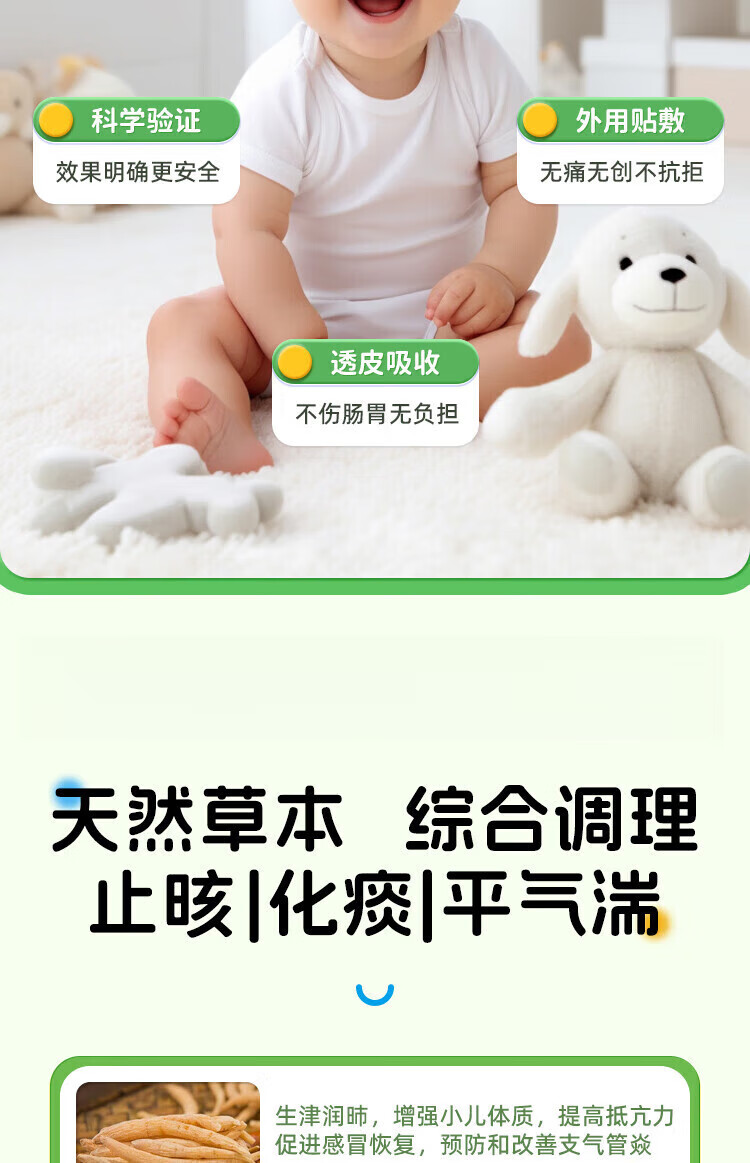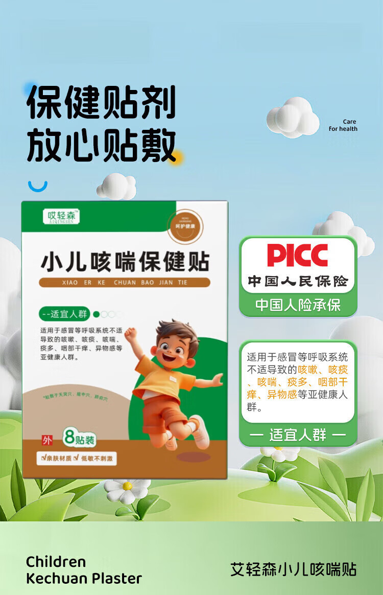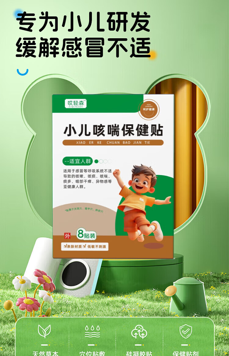 哎轻森小儿艾咳喘化痰贴改善咳嗽痰多气喘喘息夜咳天然草本综合调 一盒