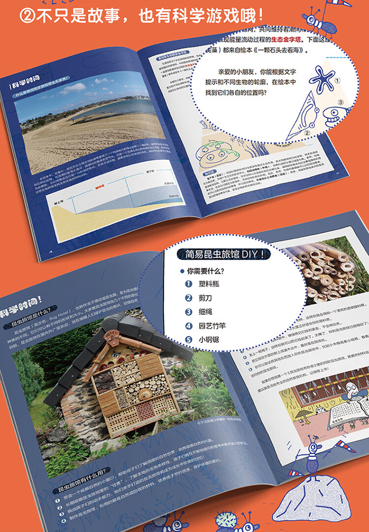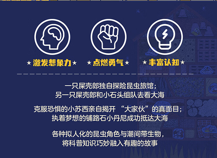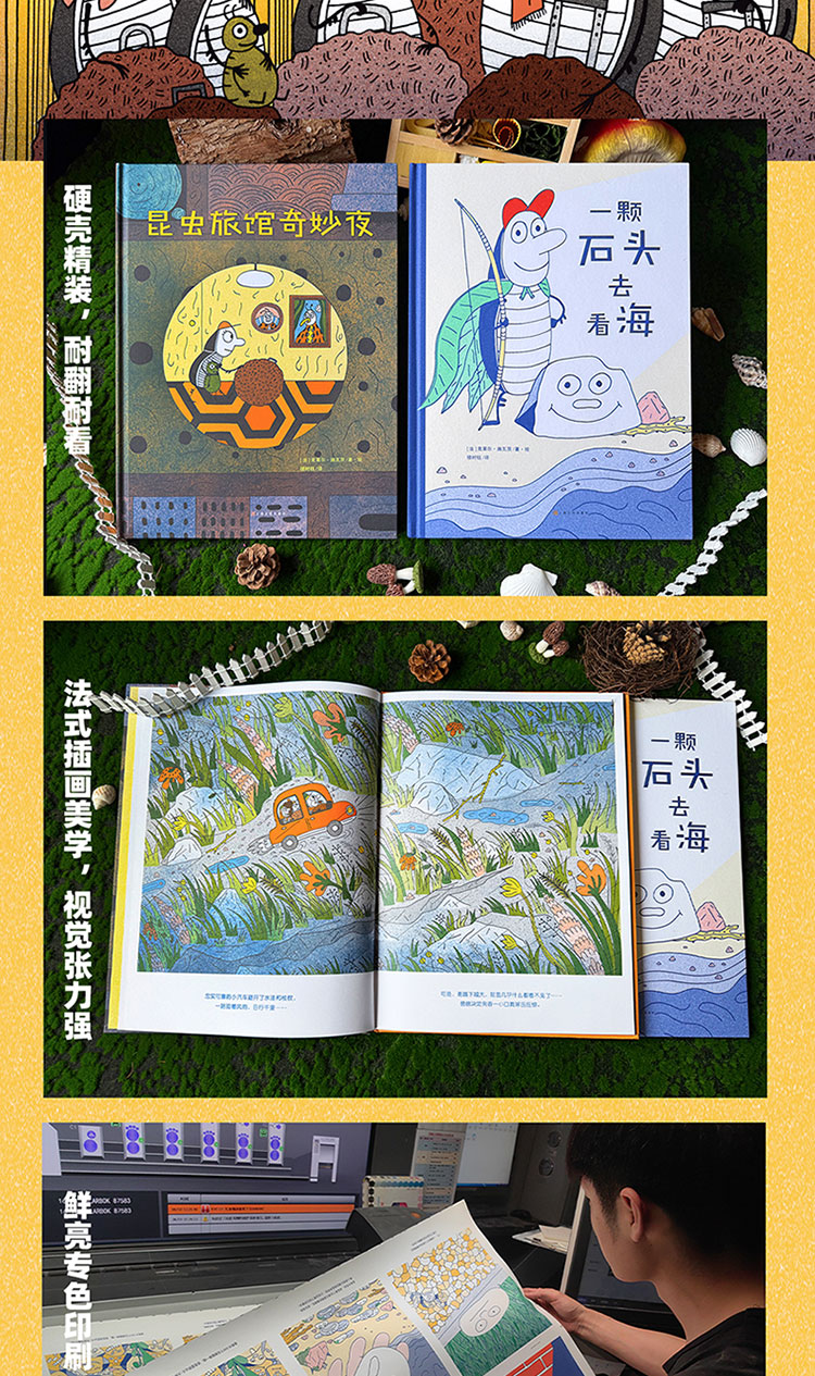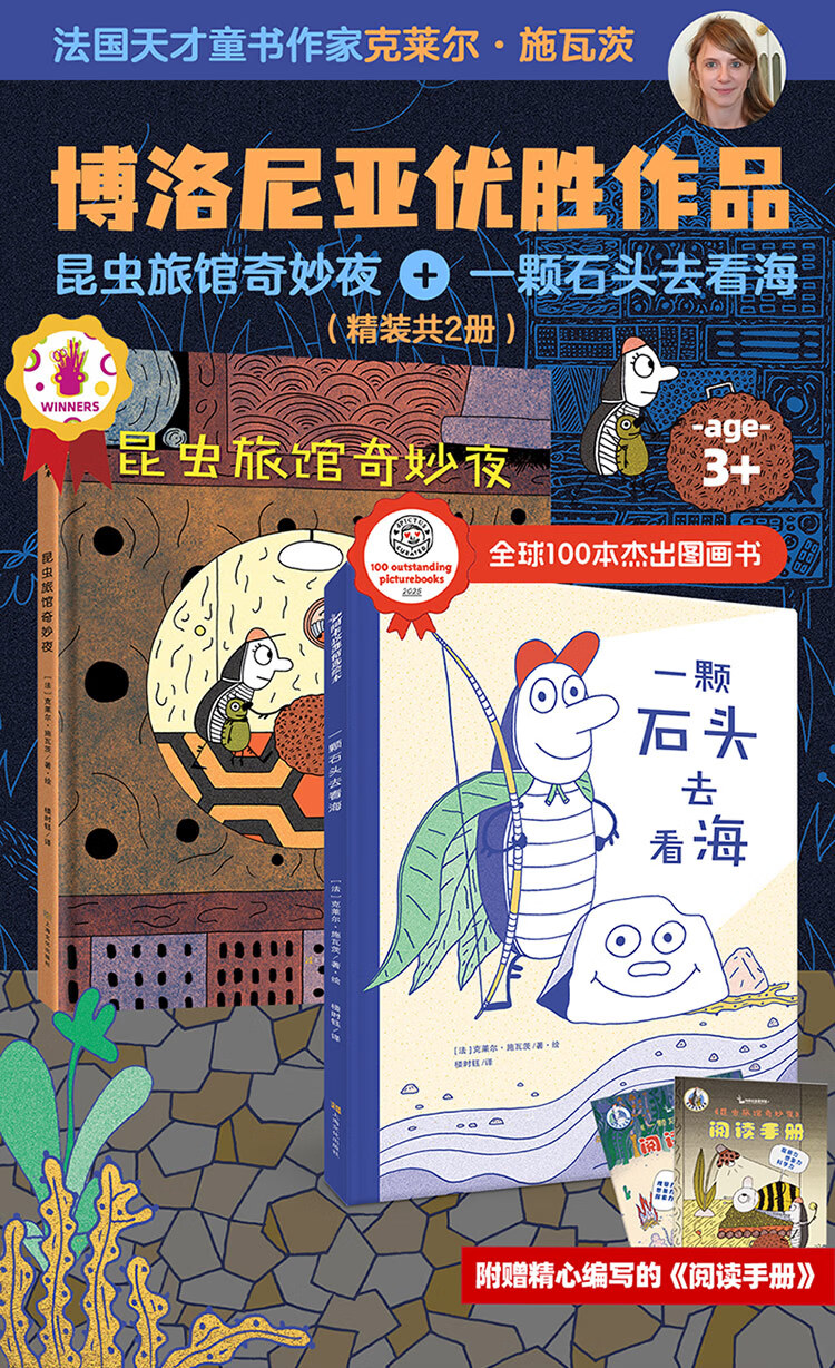 博洛尼亚优胜作品:一颗石头去看海+昆虫旅馆奇妙夜(精装共2册) 儿童绘本精装硬壳屎壳郎的奇妙旅程 一颗石头去看海+昆虫旅馆奇妙夜(共2册)