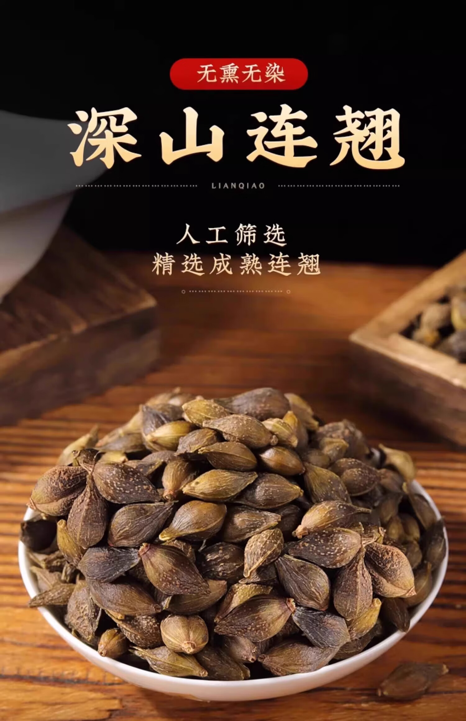 万馥堂连翘正宗中药材去柄贯叶连翘黄翘搭金银花泡茶泡水喝的功效与作用 【精品茶包/代客分装】【14副】连翘金银花