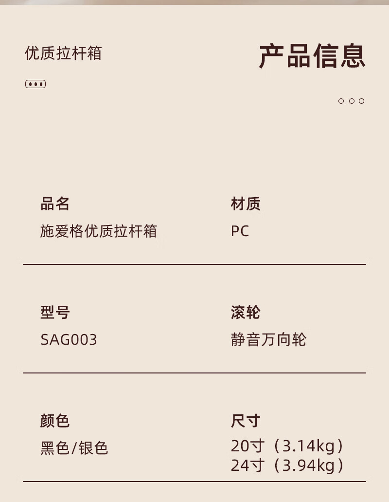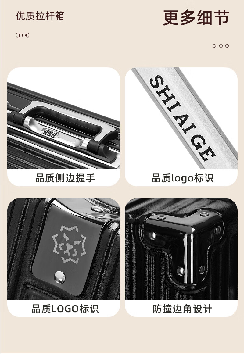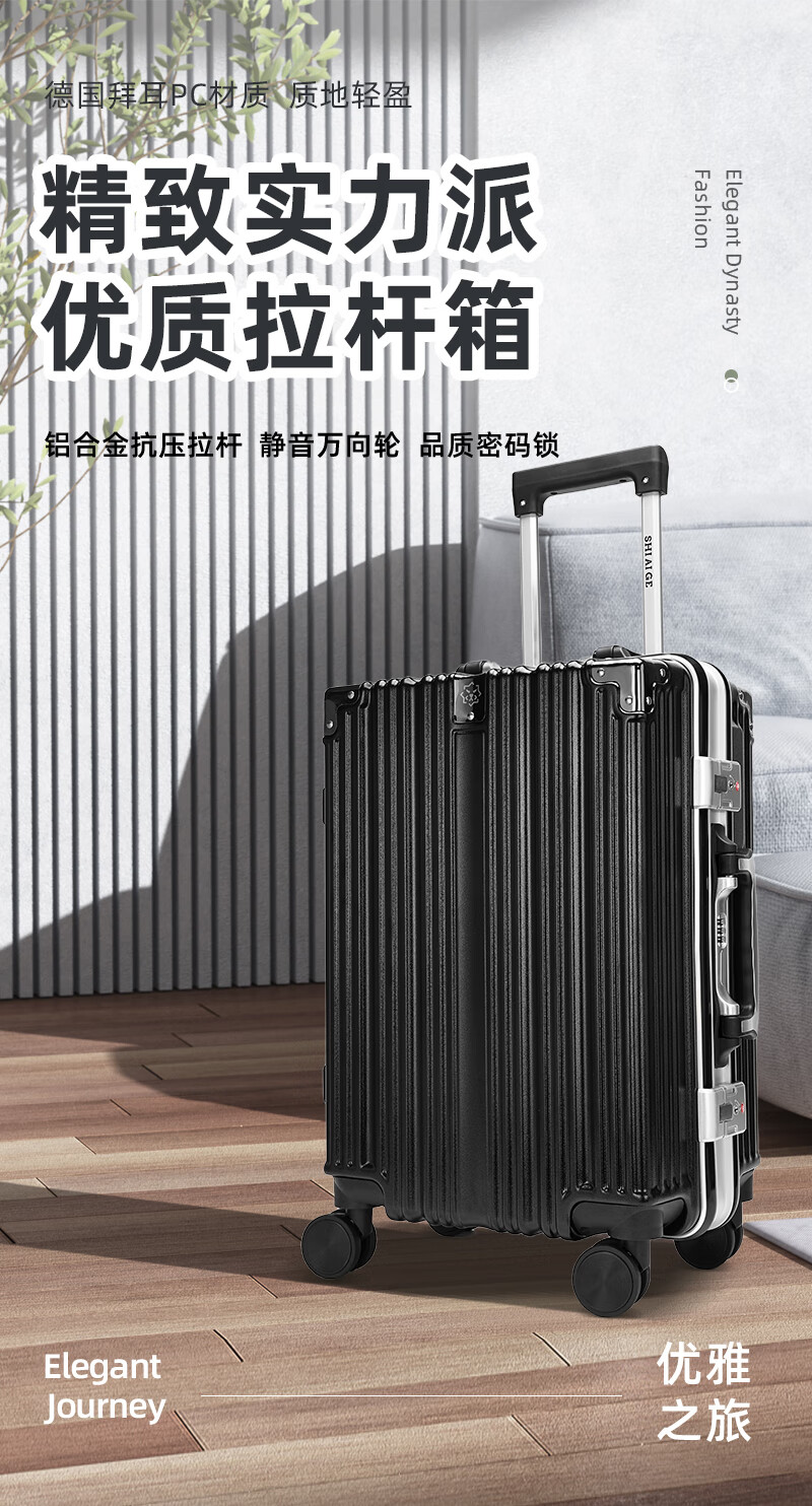 施爱格行李箱20英寸男女拉杆箱登机旅行箱 SAG003行李箱 SAG00201-20 黑色20寸