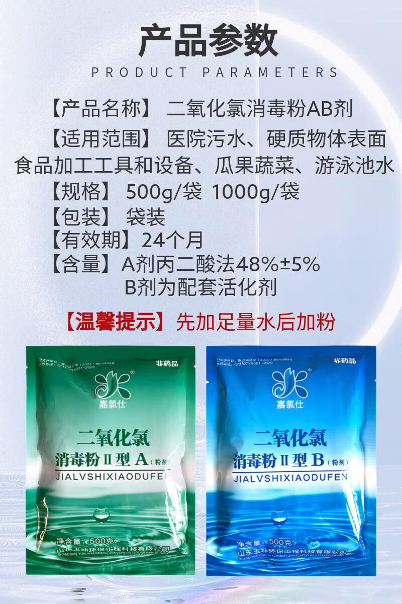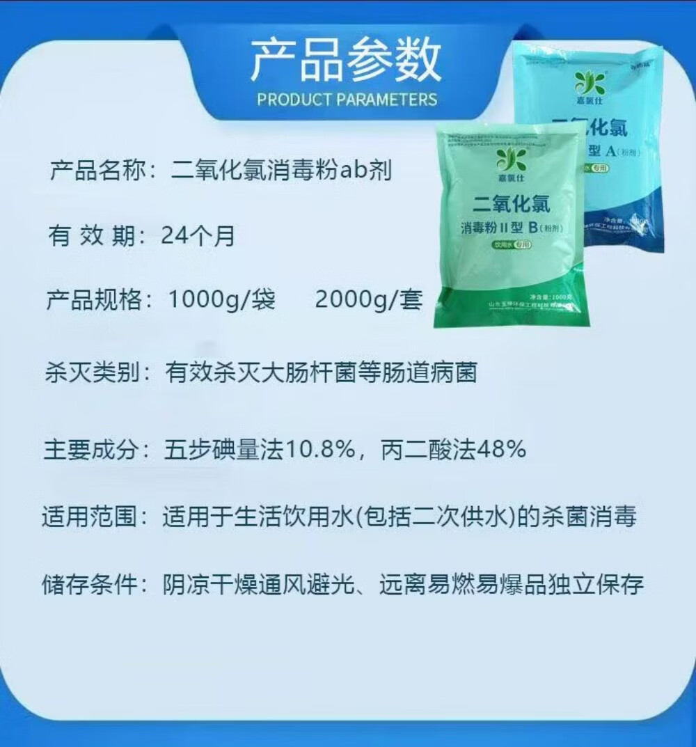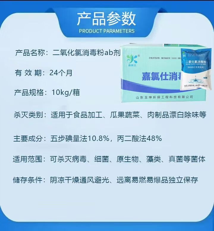 嘉氯仕二氧化氯ab消毒粉食品级肉类漂白消毒剂医院污水农村自来水箱杀菌 饮用水10kg/箱(A+ B)老包装