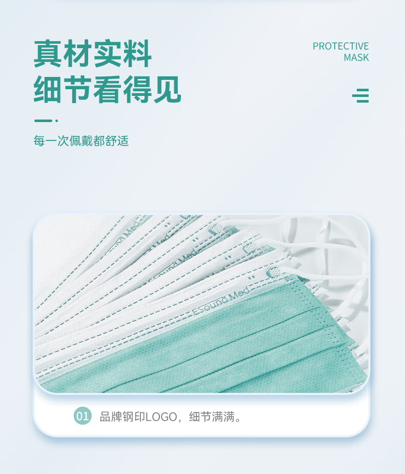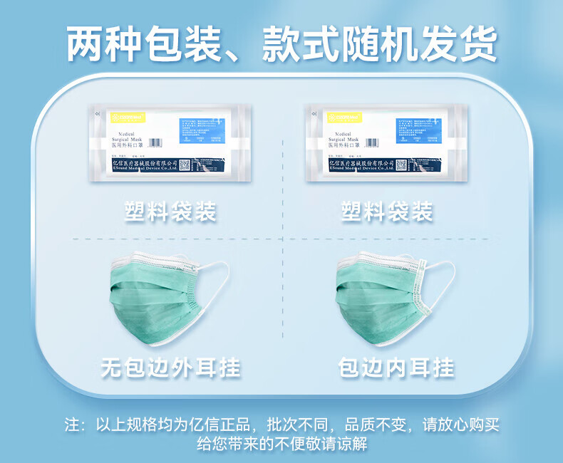 亿信(YIXIN)医用外科一次性医用口罩透气耳挂式成人儿童款可选三层防护灭菌 【绿色】50只医用外科无菌口罩(可供医务人员使用)