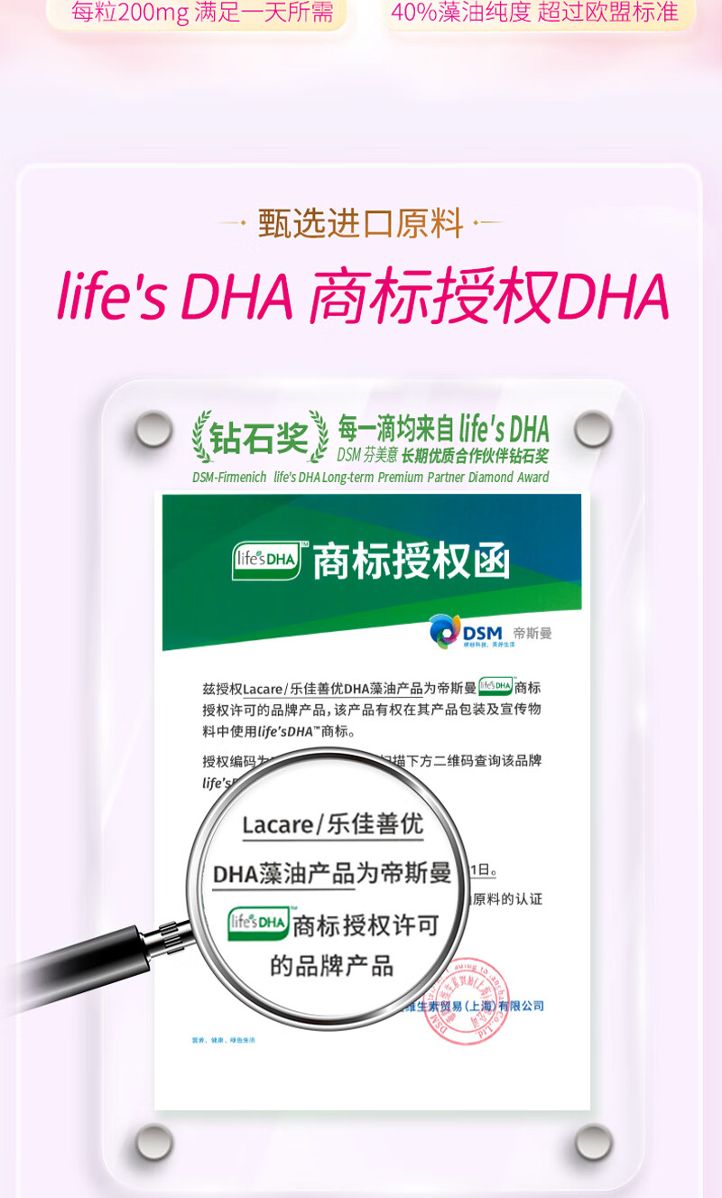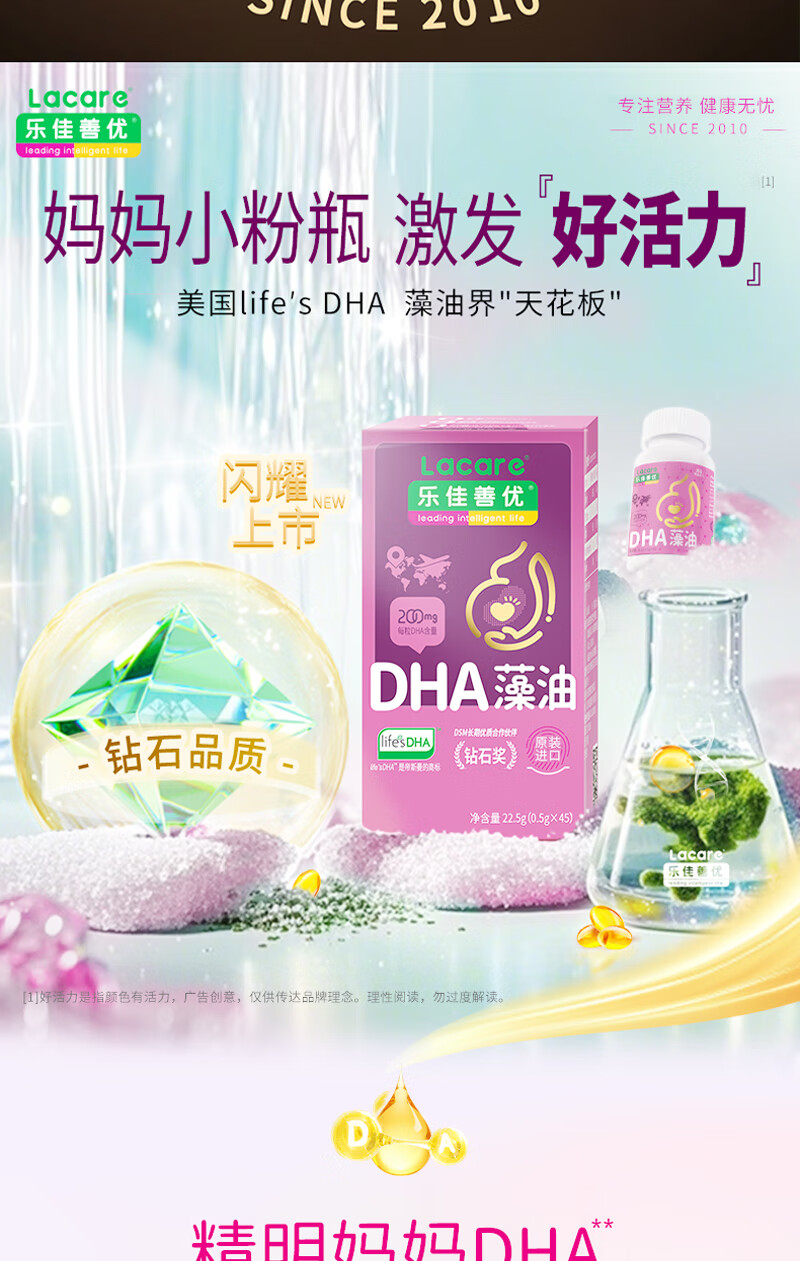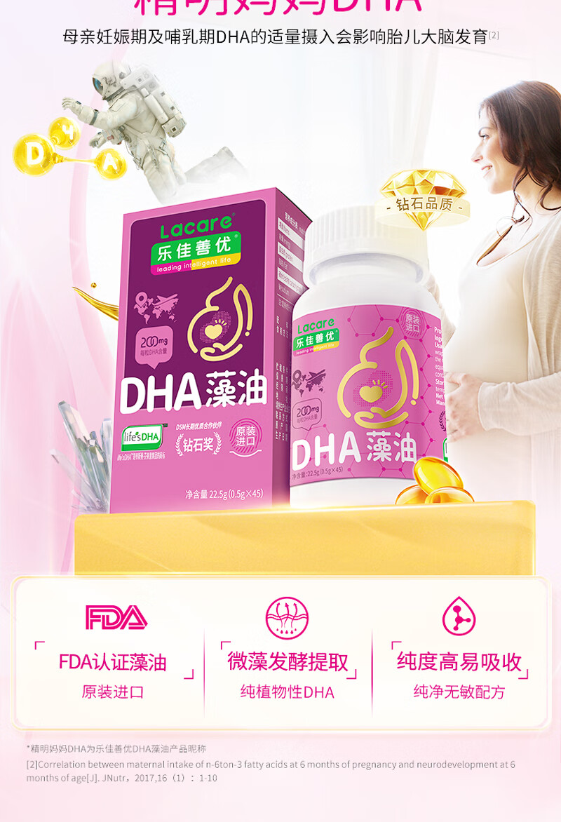 乐佳善优dha孕妇藻油孕期哺乳期dha藻油45粒装帝斯曼life'sDHA 钻石奖 45粒*1盒 【基础装】