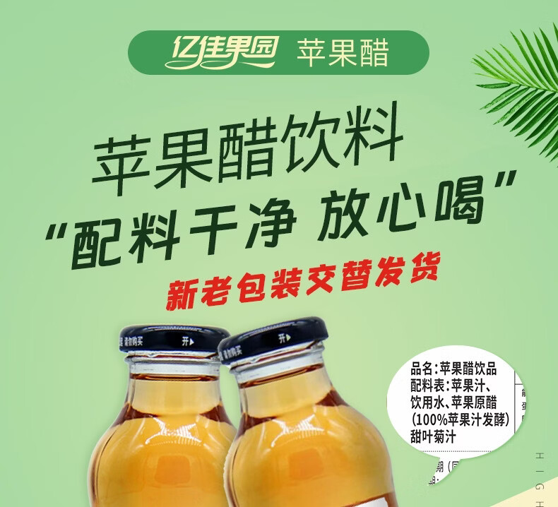 亿佳果园 苹果醋饮料整箱家庭装300mL*12瓶玻璃瓶 酸甜可口