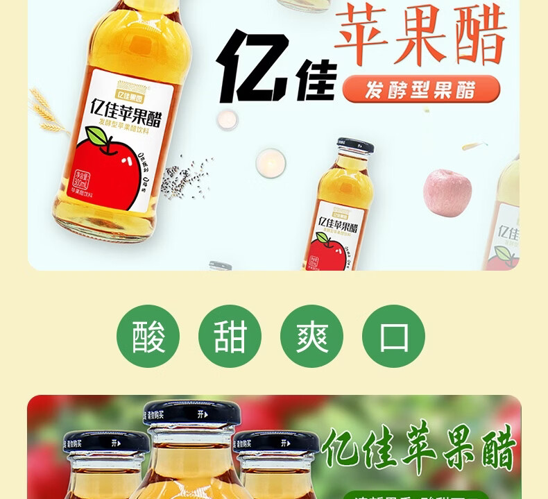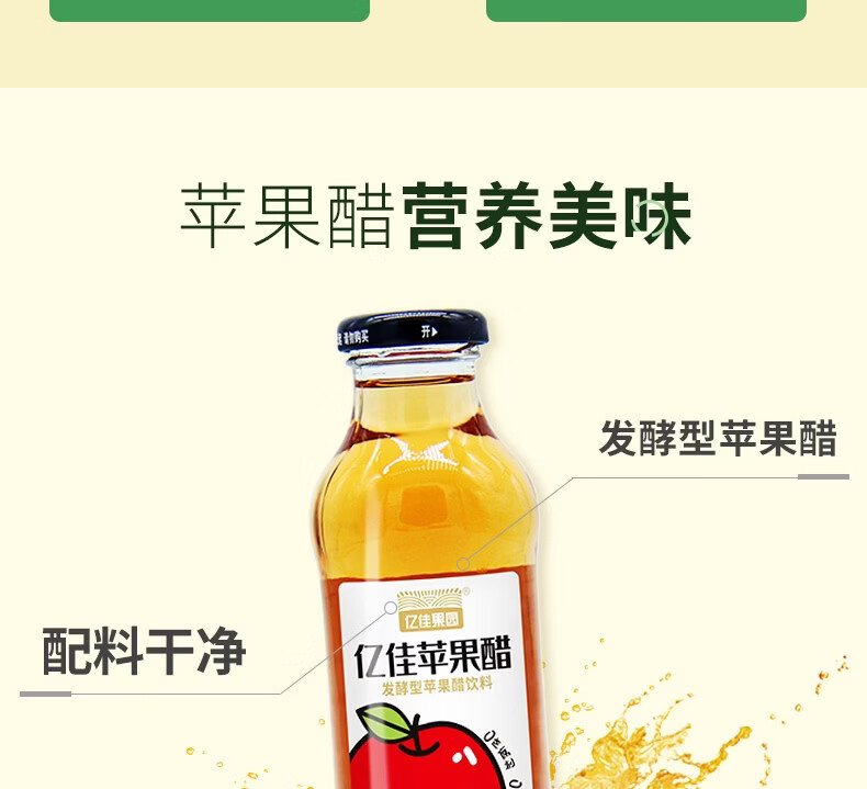 亿佳果园 苹果醋无糖饮料整箱家庭装300ml*12玻璃瓶生物发酵非勾兑