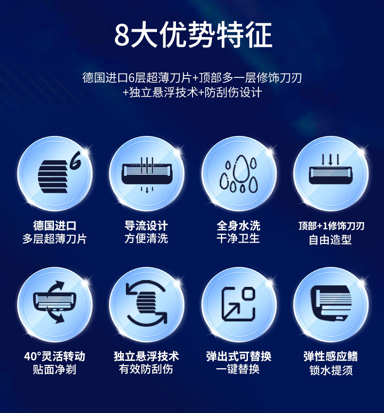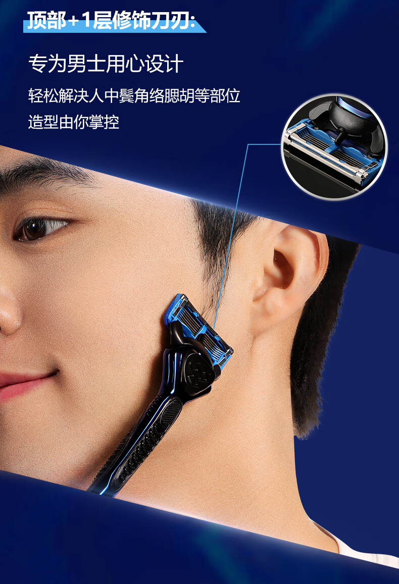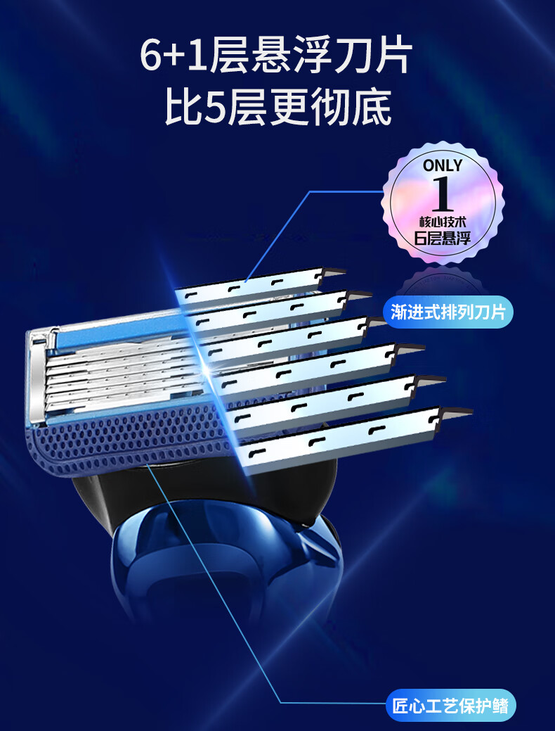 焕醒剃须刀手动进口6层刀片金属刀男士刮胡刀送男友老公礼物礼盒 H600-8(1刀架5刀头1剃须泡1底座)