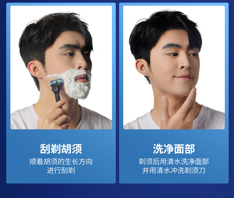 吉耏利新款六层刀片男士剃须刀手动刮胡刀刮脸刀进口不锈钢通用刀片刀架手动剃刀男 1刀柄+16刀头(送收纳盒+剃须膏