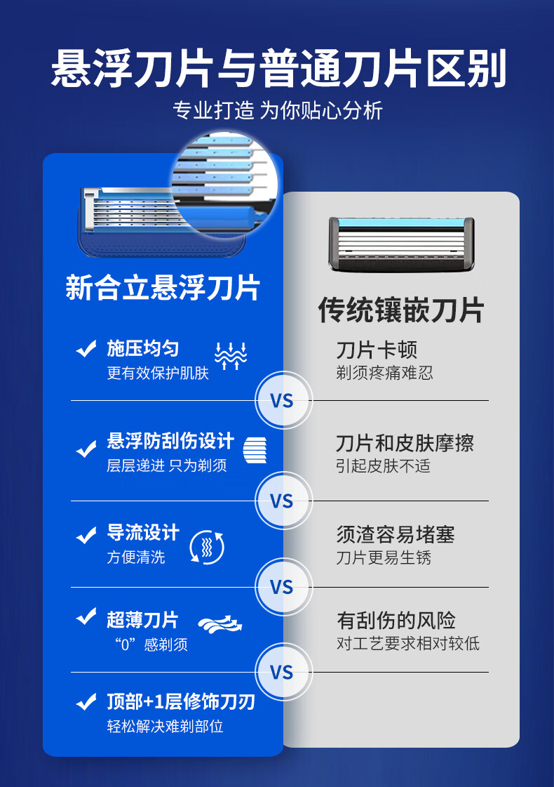 新合立便携剃须刀 6层5层 德国进口刀片 贴面刮胡刀 净剃实用 生日送礼 净感5层 9刀头 彩卡装 防刮伤 新手痘肌 刮胡刀手动