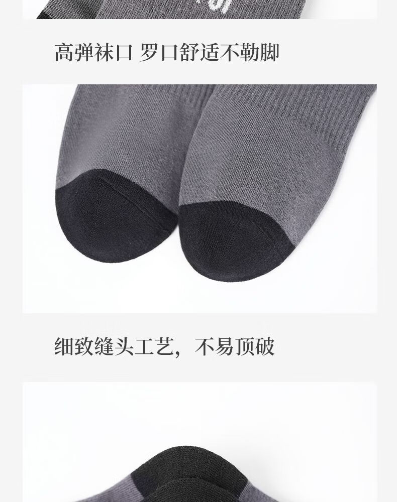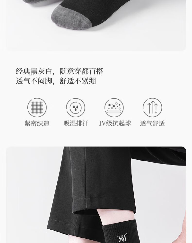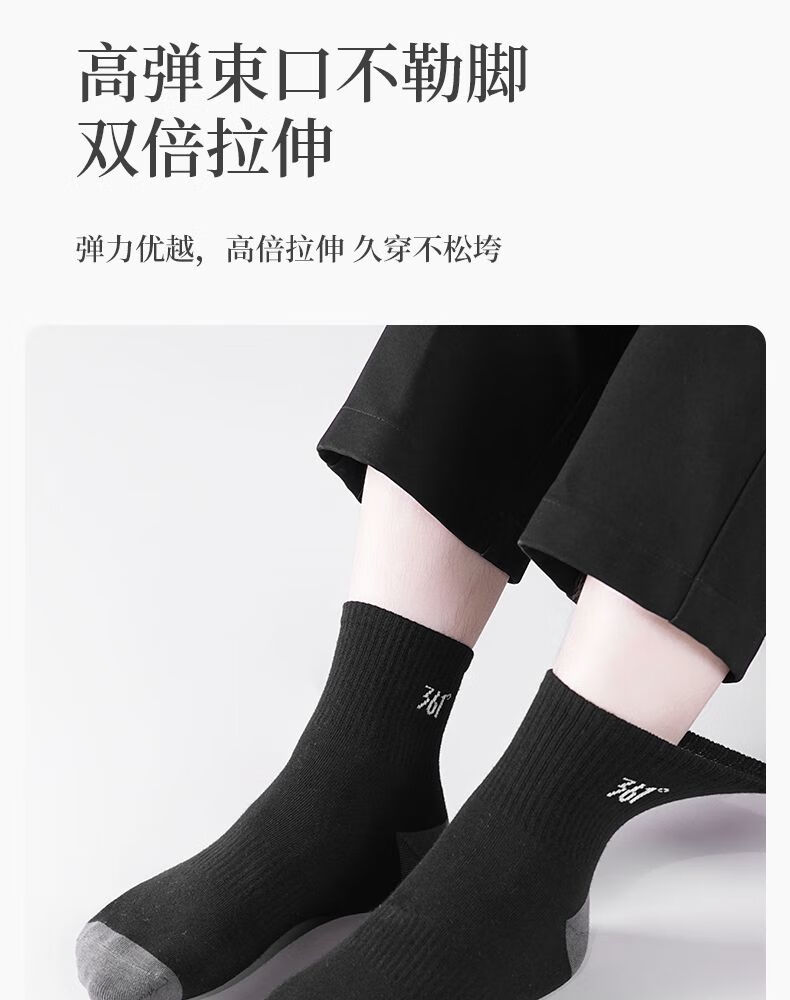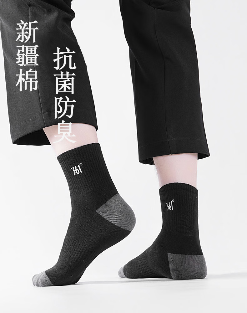 361°男士袜子男棉袜透气吸汗长筒袜抗菌防臭休闲舒适撞色中筒运动袜 混色10双装